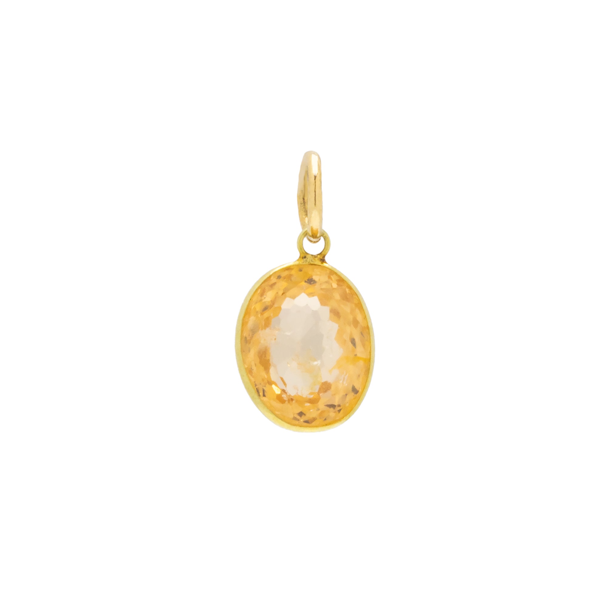 EXCELLENT. This antique 18ct Gold yellow Garnet bezel-set charm is simply divine. The yellow Garnet has been beautifully cut and is free from chips or abrasions. The bezel setting is gorgeous and smooth, and the jump ring allows you to wear this treasure confidently!