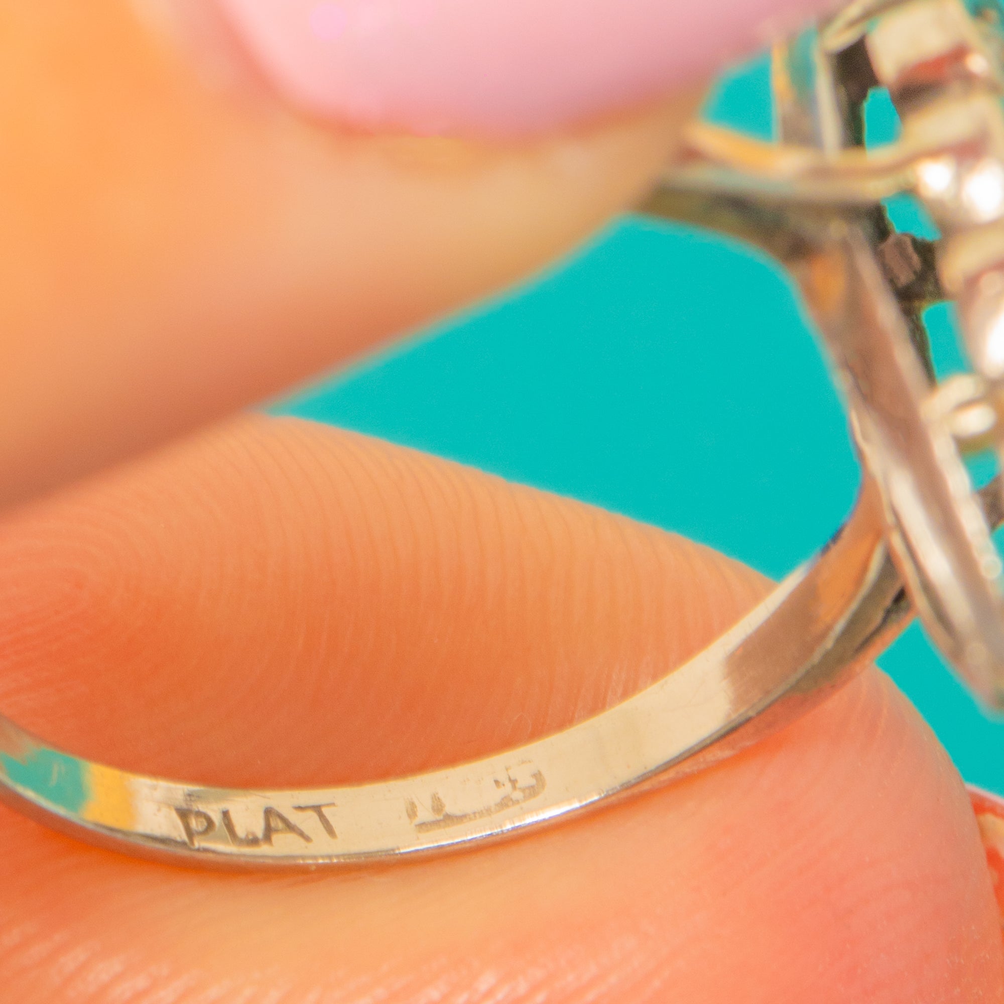 EXCELLENT: Diamonds are bright with minimal wear, with minor facet abrasions visible to some stones. The setting and pierced under-gallery are secure and well preserved, and the shank shows light surface wear consistent with age. No obvious resizing or repairs.