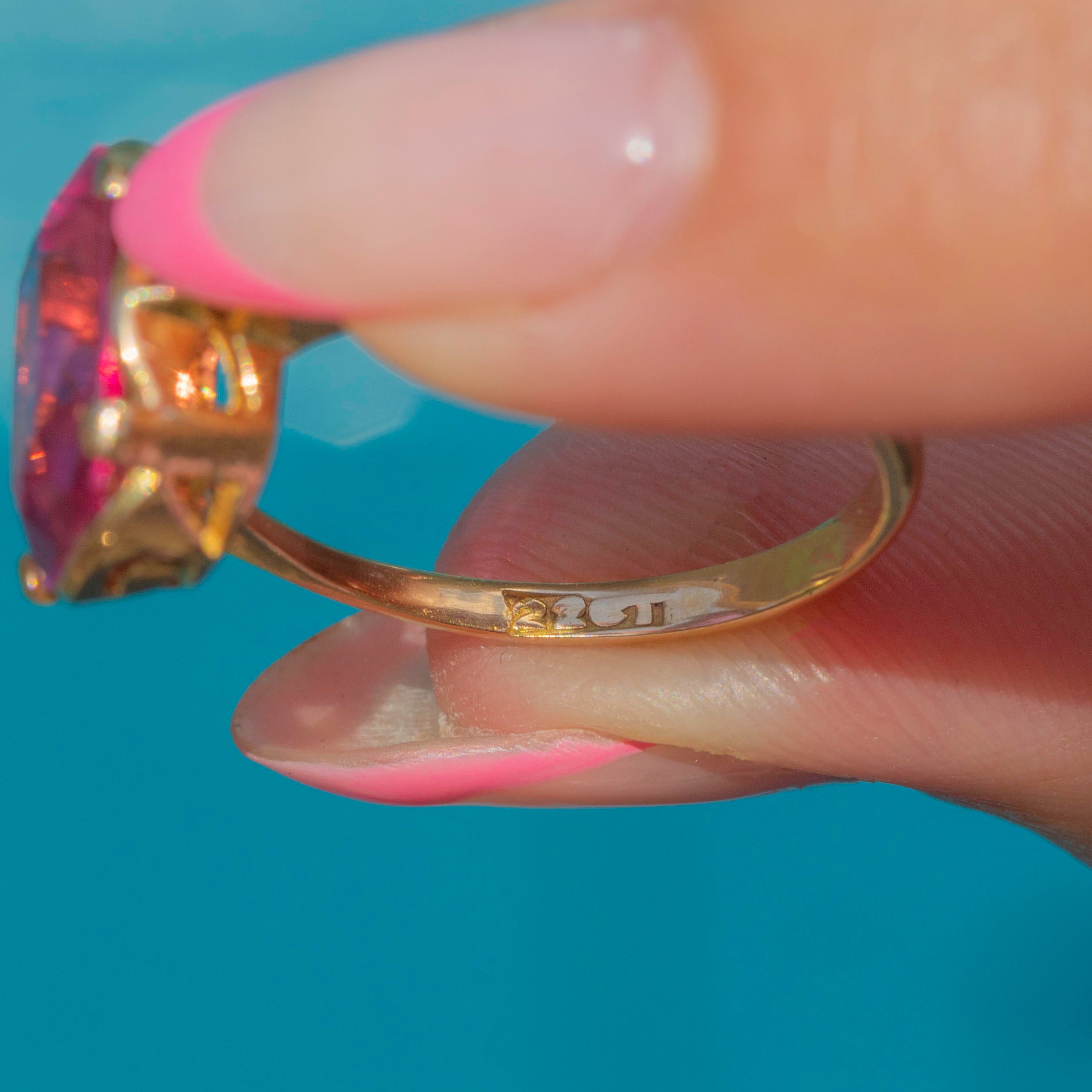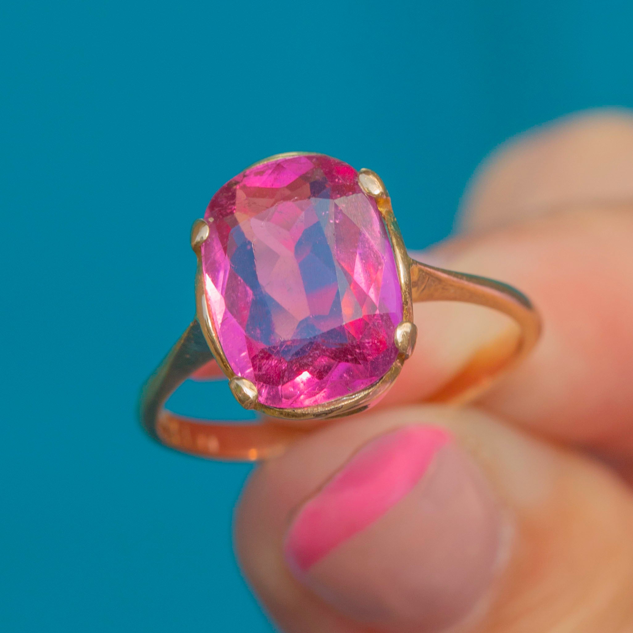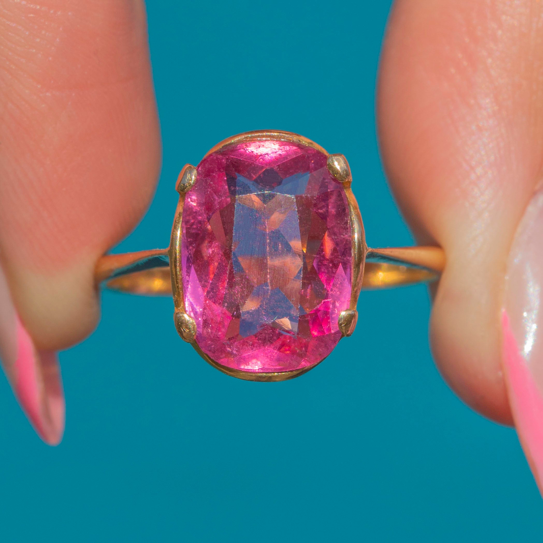 Add a pop of colour to your collection with this vibrant antique 22ct Gold Pink Tourmaline solitaire ring!