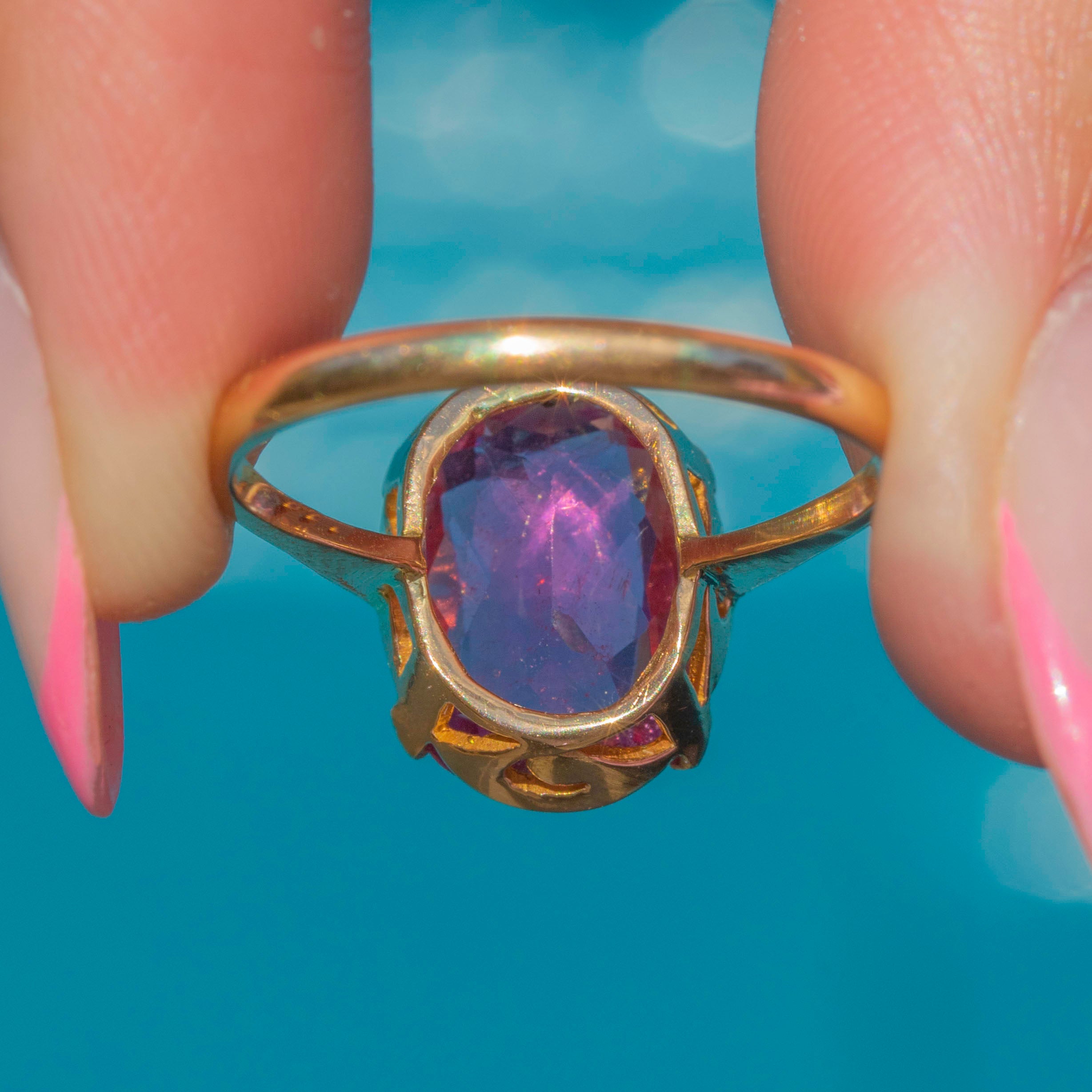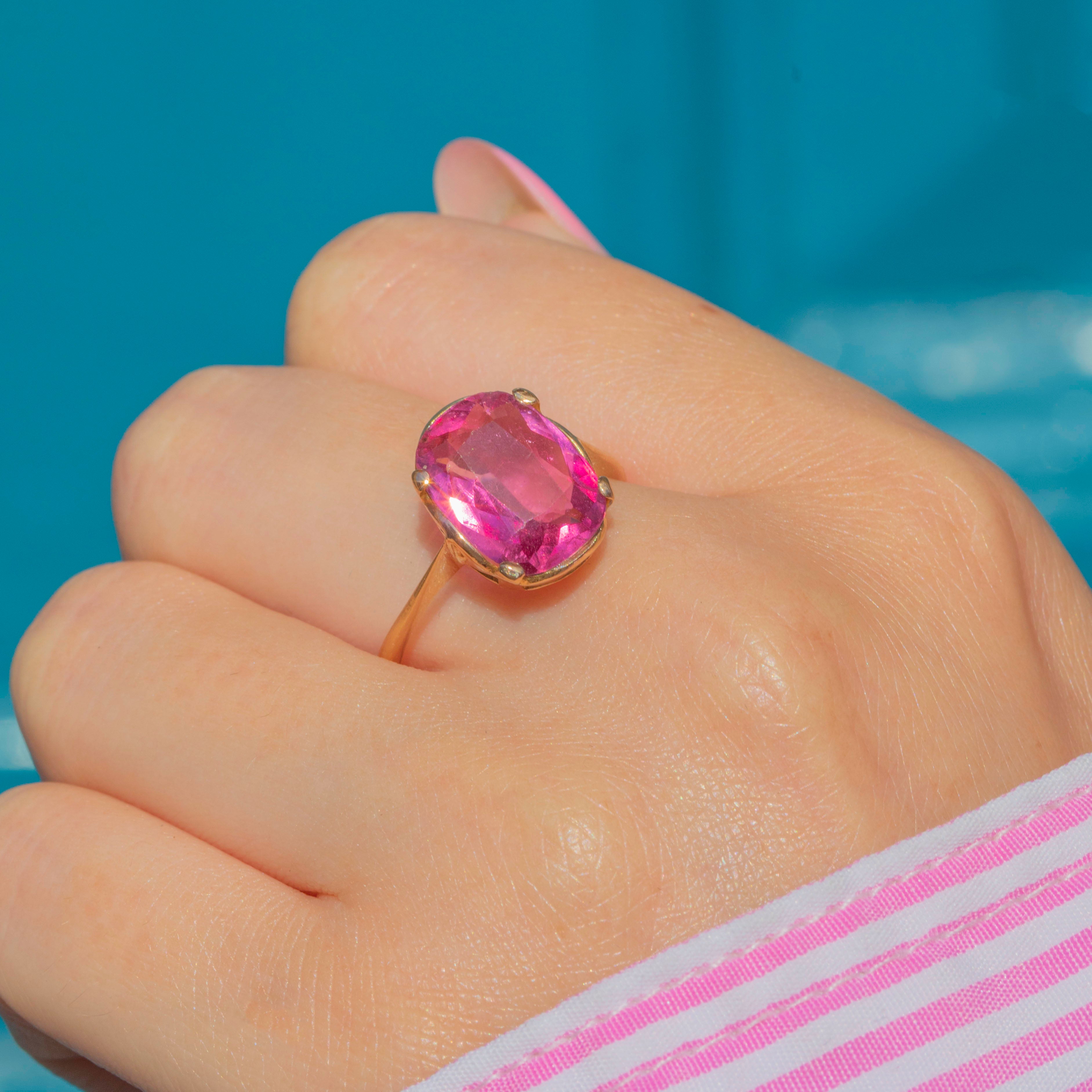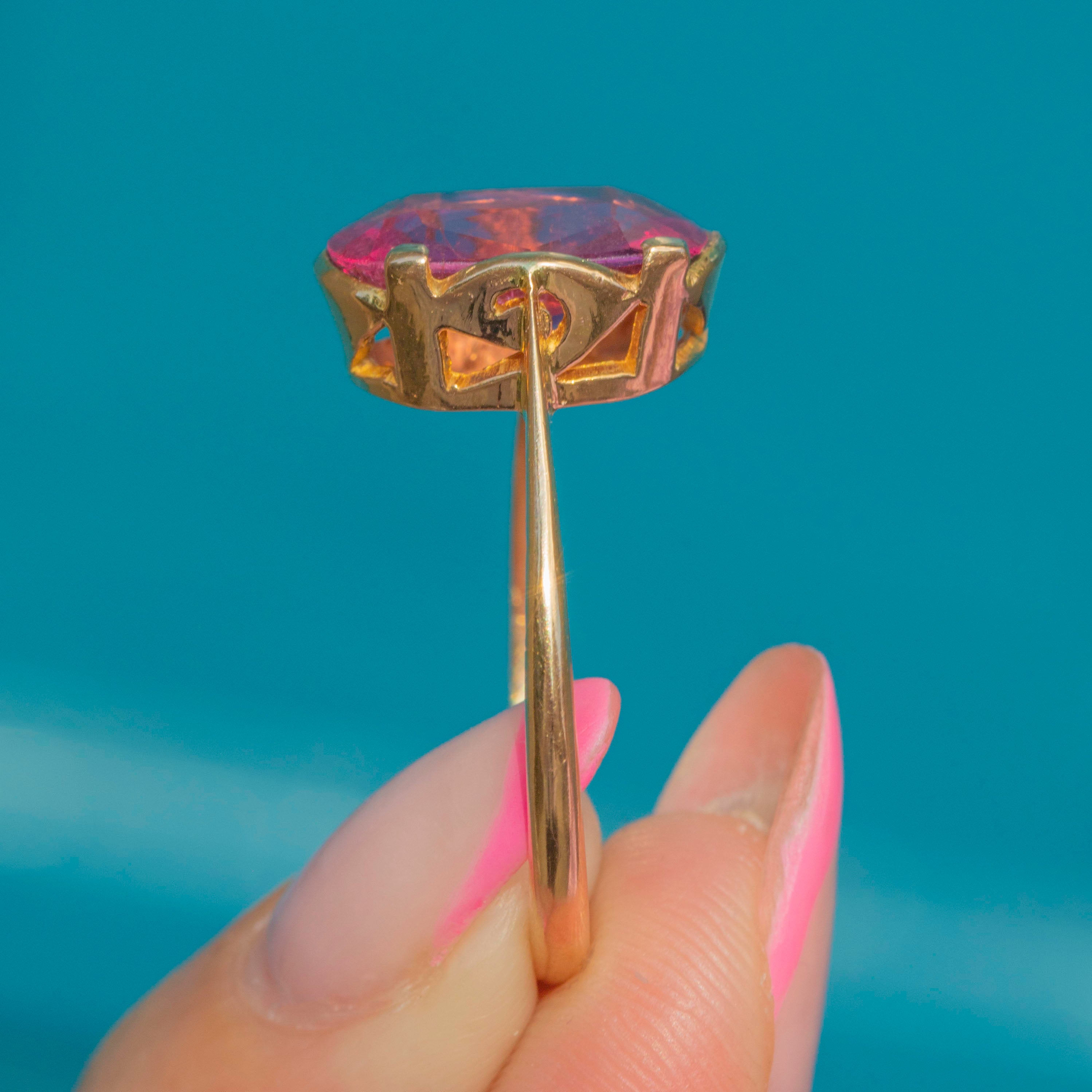 Add a pop of colour to your collection with this vibrant antique 22ct Gold Pink Tourmaline solitaire ring!