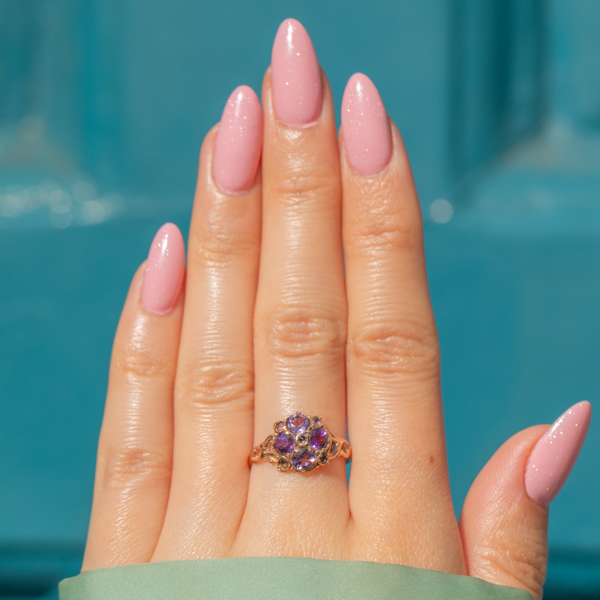 Antique 9ct Gold Amethyst Cluster Ring, 1.00ct
