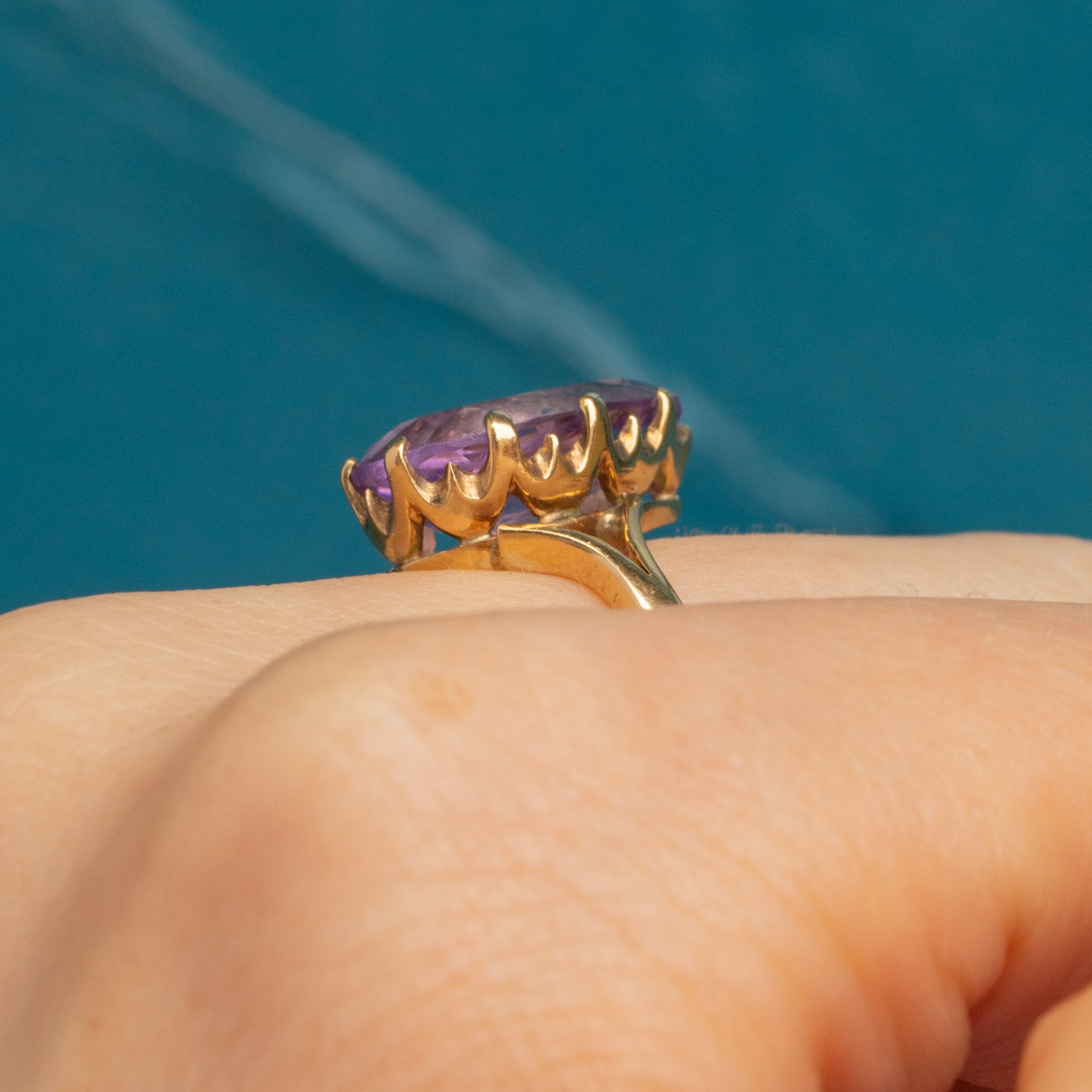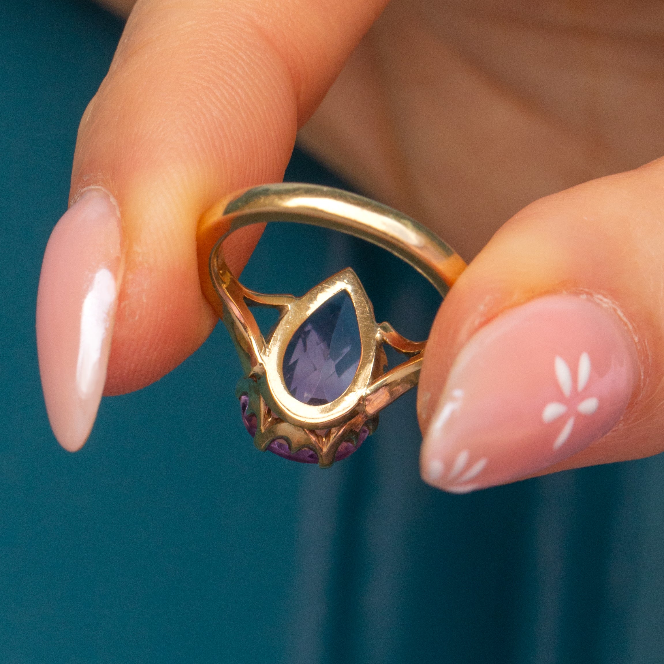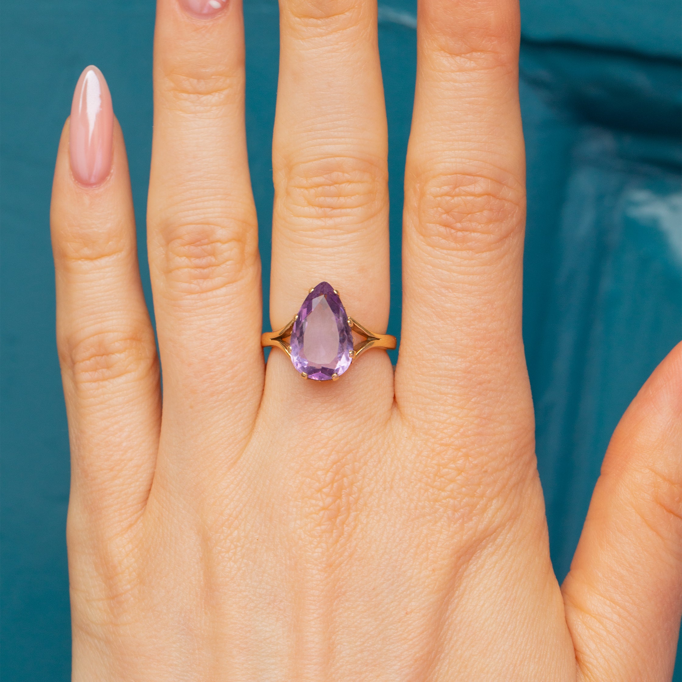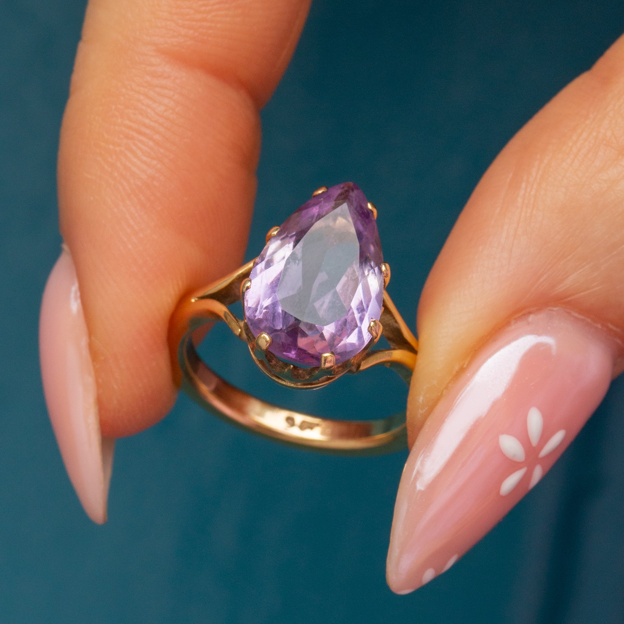 This is a gorgeous 9ct Gold Amethyst pear ring! This beautiful ring homes a perfectly cut Amethyst, rich with a lavender hue that you can almost smell it's so good.