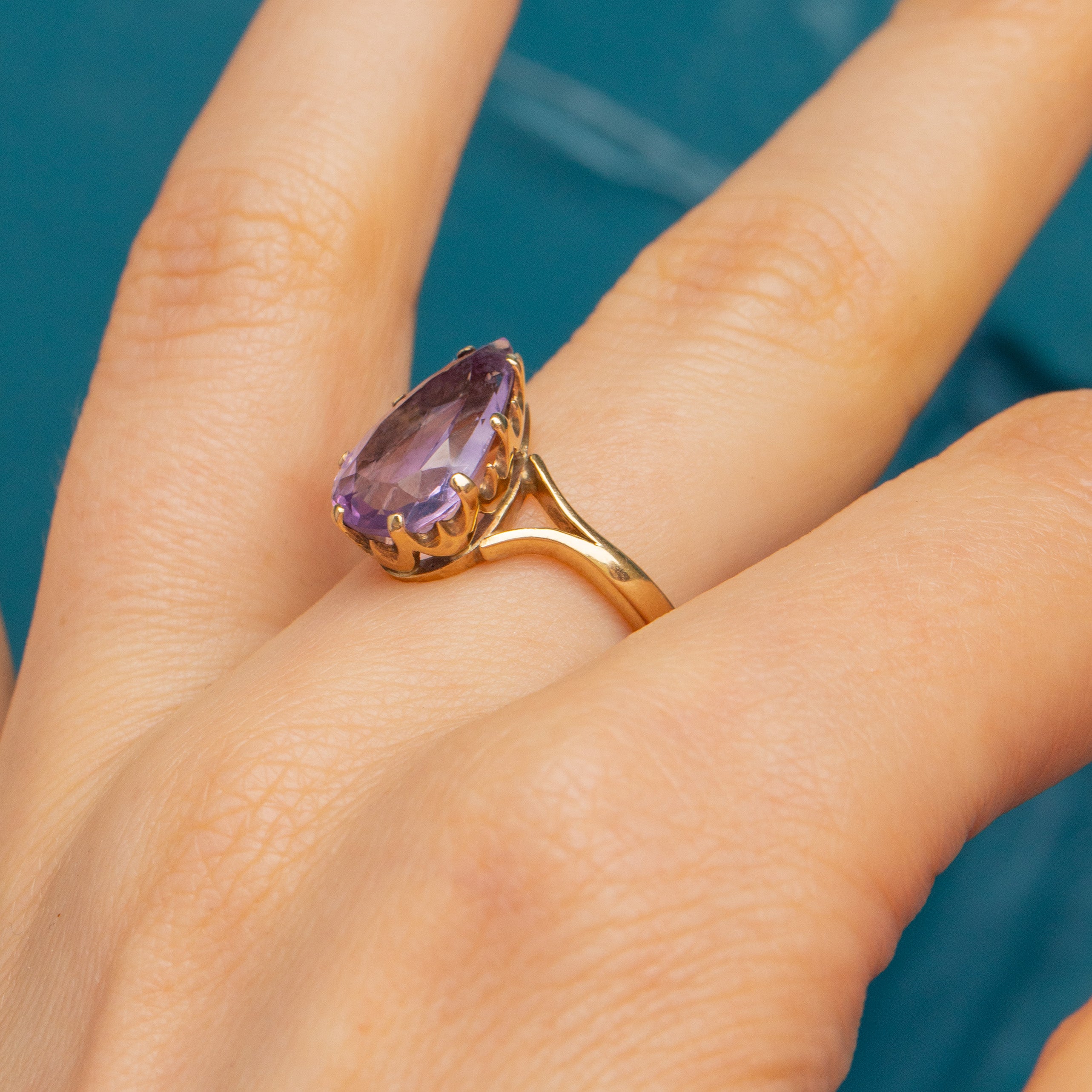 Antique 9ct Gold Amethyst Pear Ring 2.40ct