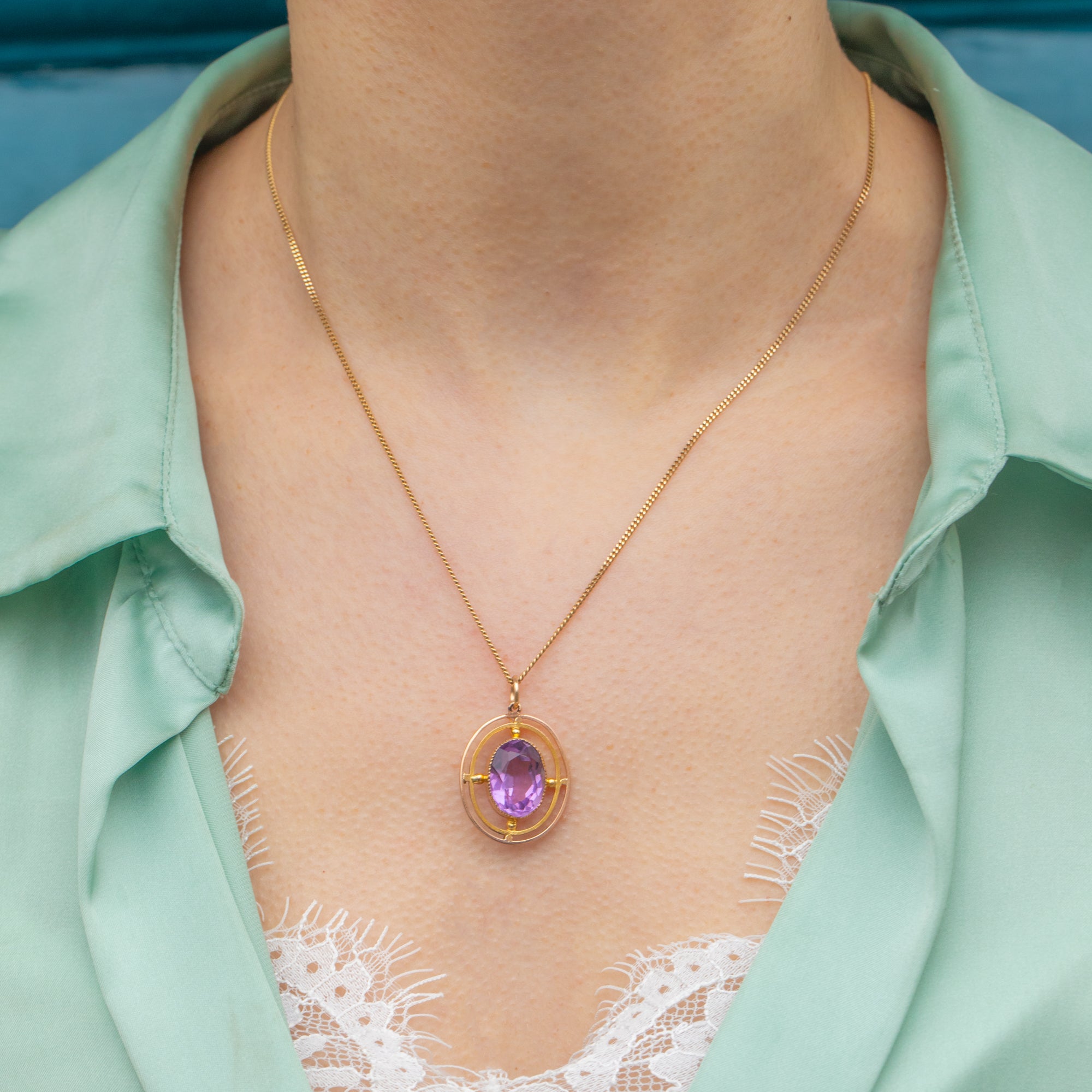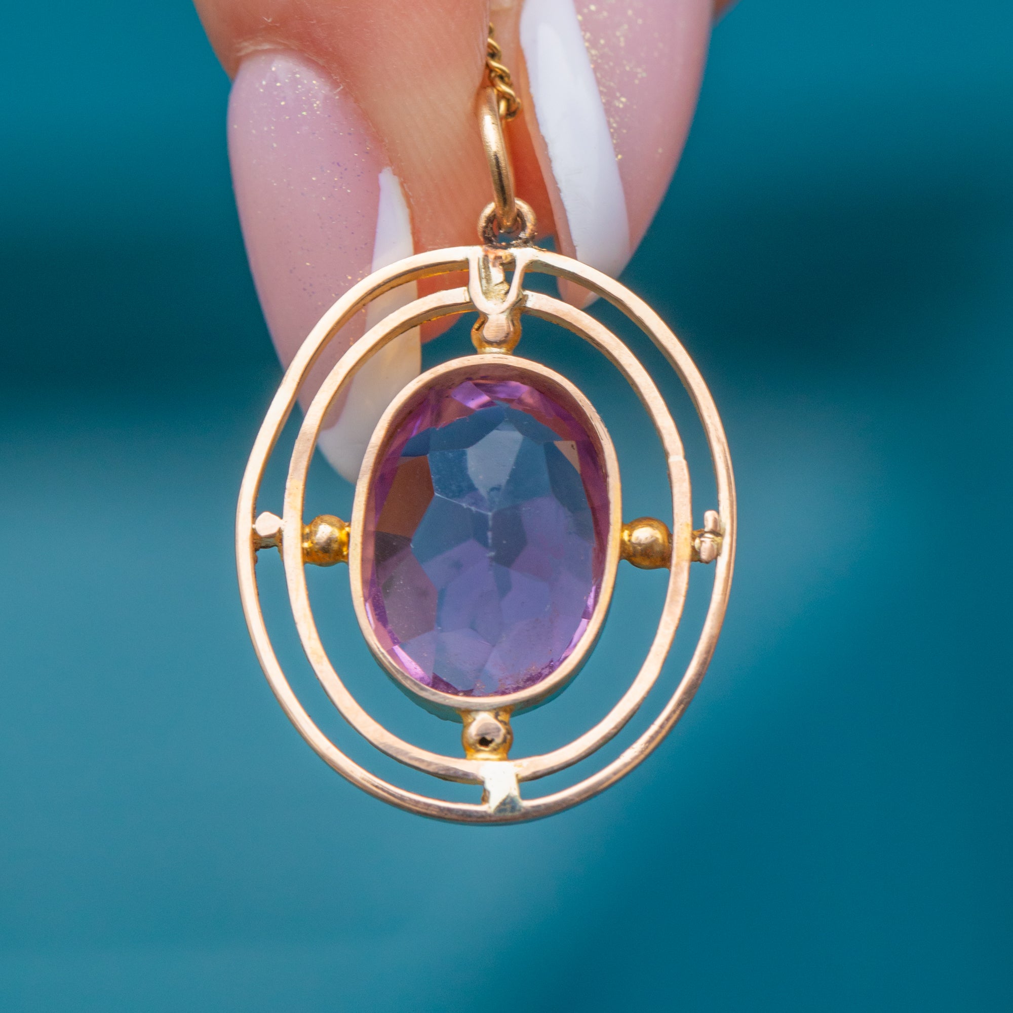Add a pop of colour to your attire with this antique 9ct Gold Amethyst pendant!