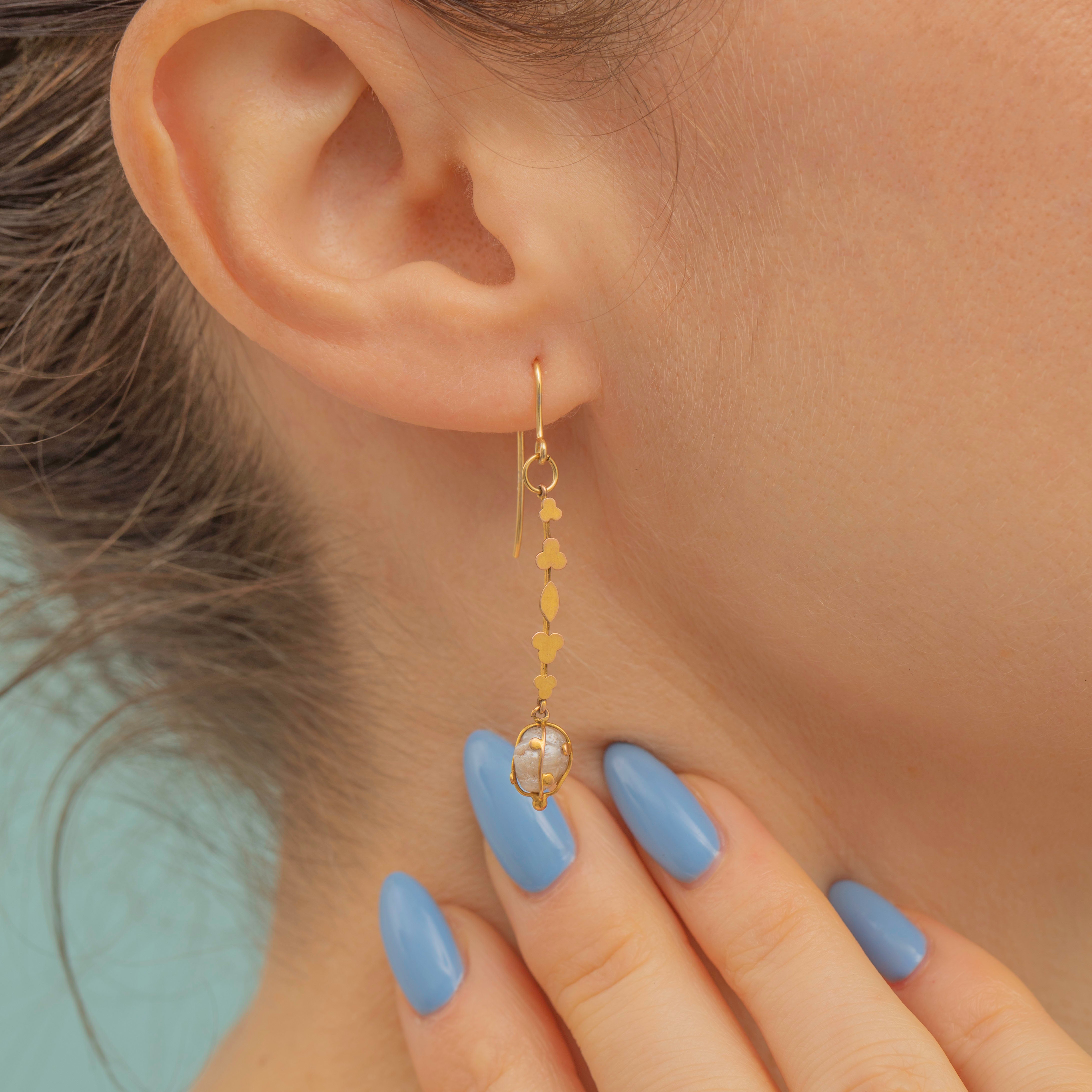 EXCELLENT. With very little to report, these antique 9ct Gold Baroque Pearl drop earrings are in excellent condition. The Baroque Pearls give the most intriguing luminous glow and remain secure in their cage settings. The Gold is brightly saturated and the details have are securely connected, promising many more years of wear and enjoyment!
