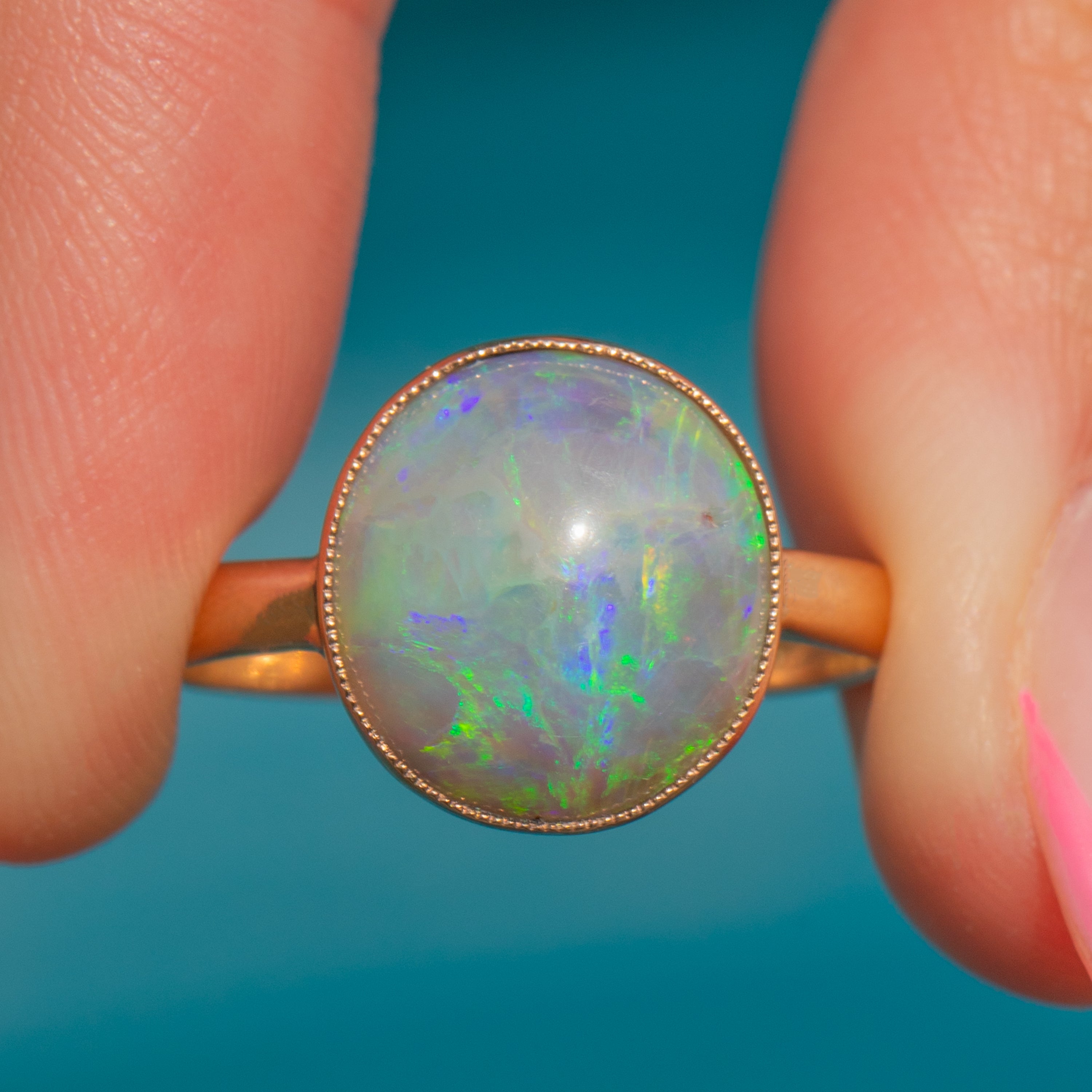 This 3.10ct antique 9ct Gold Black Opal cabochon ring is sure to liven up your ring stack!
