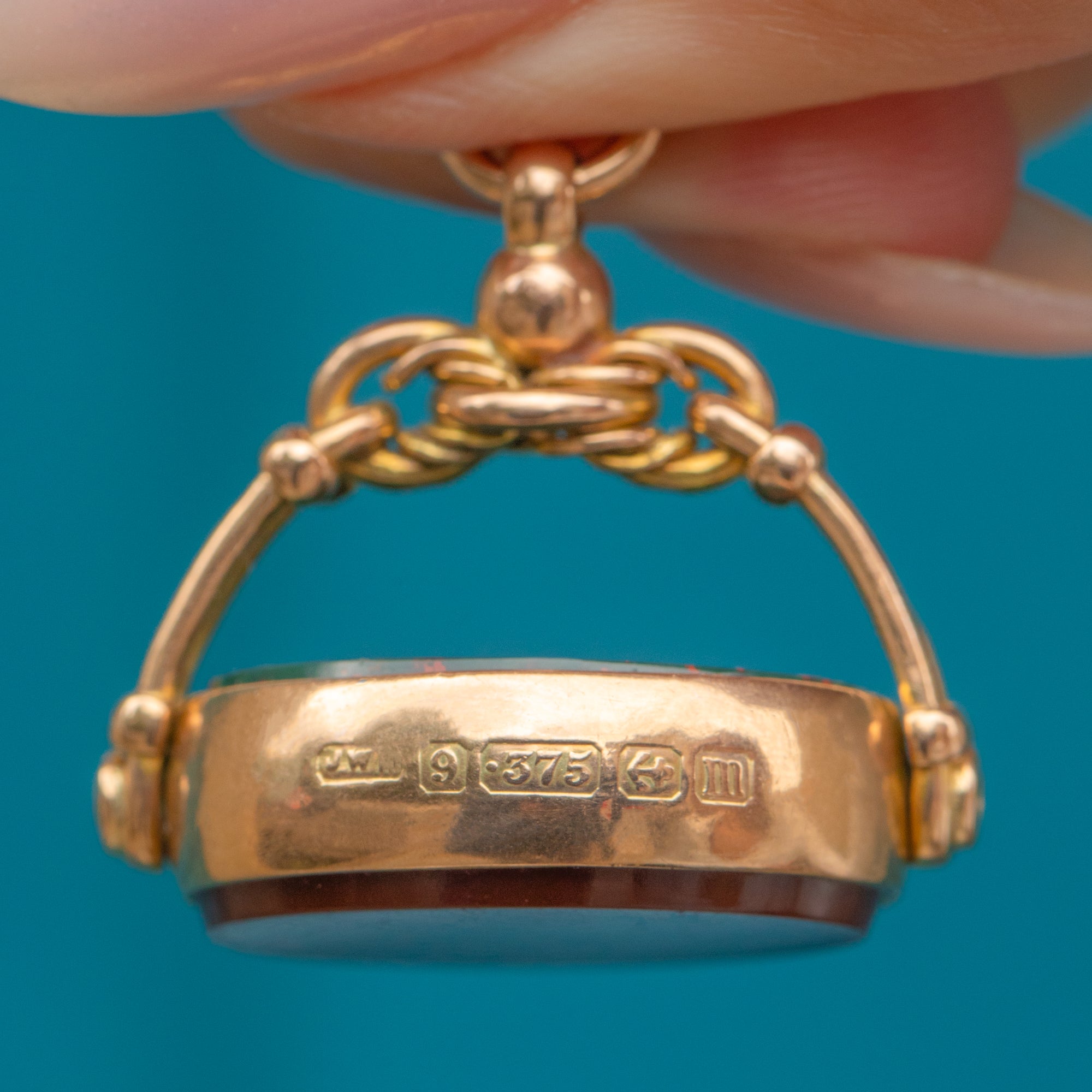 Antique 9ct Gold Bloodstone Carnelian Spinning Fob Pendant