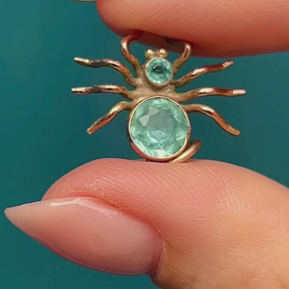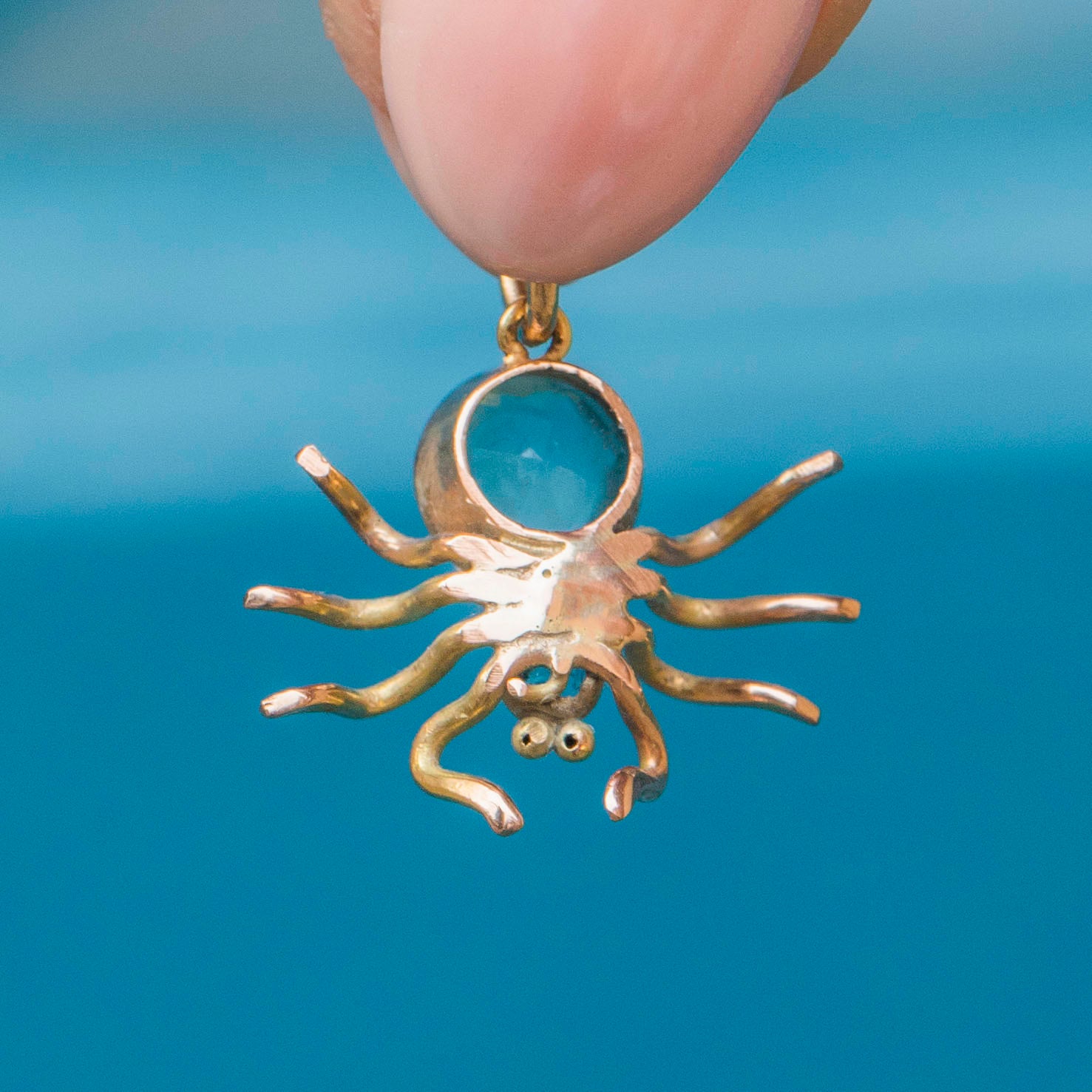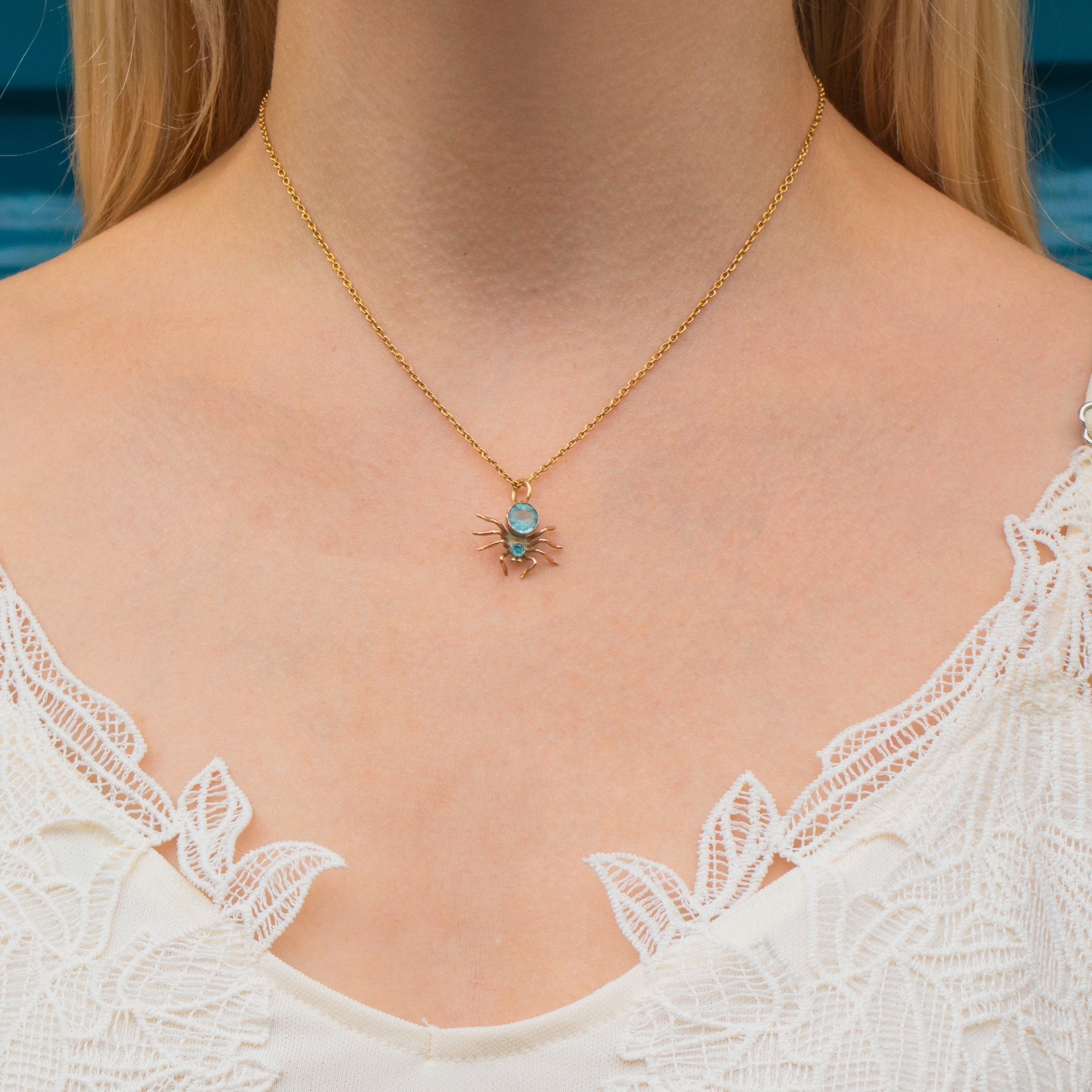There is nothing creepy about this exceptionally beautiful Victorian 9ct Gold blue Paste spider pendant! Possessing a mysterious allure, her Spider is composed of two faceted blue Paste gemstones.