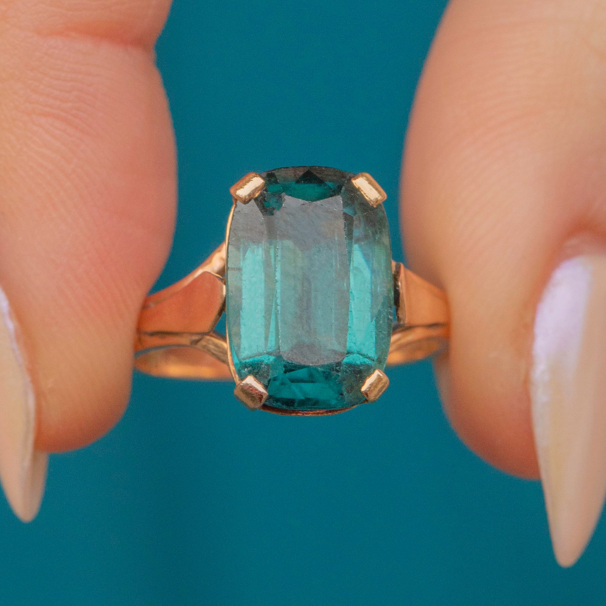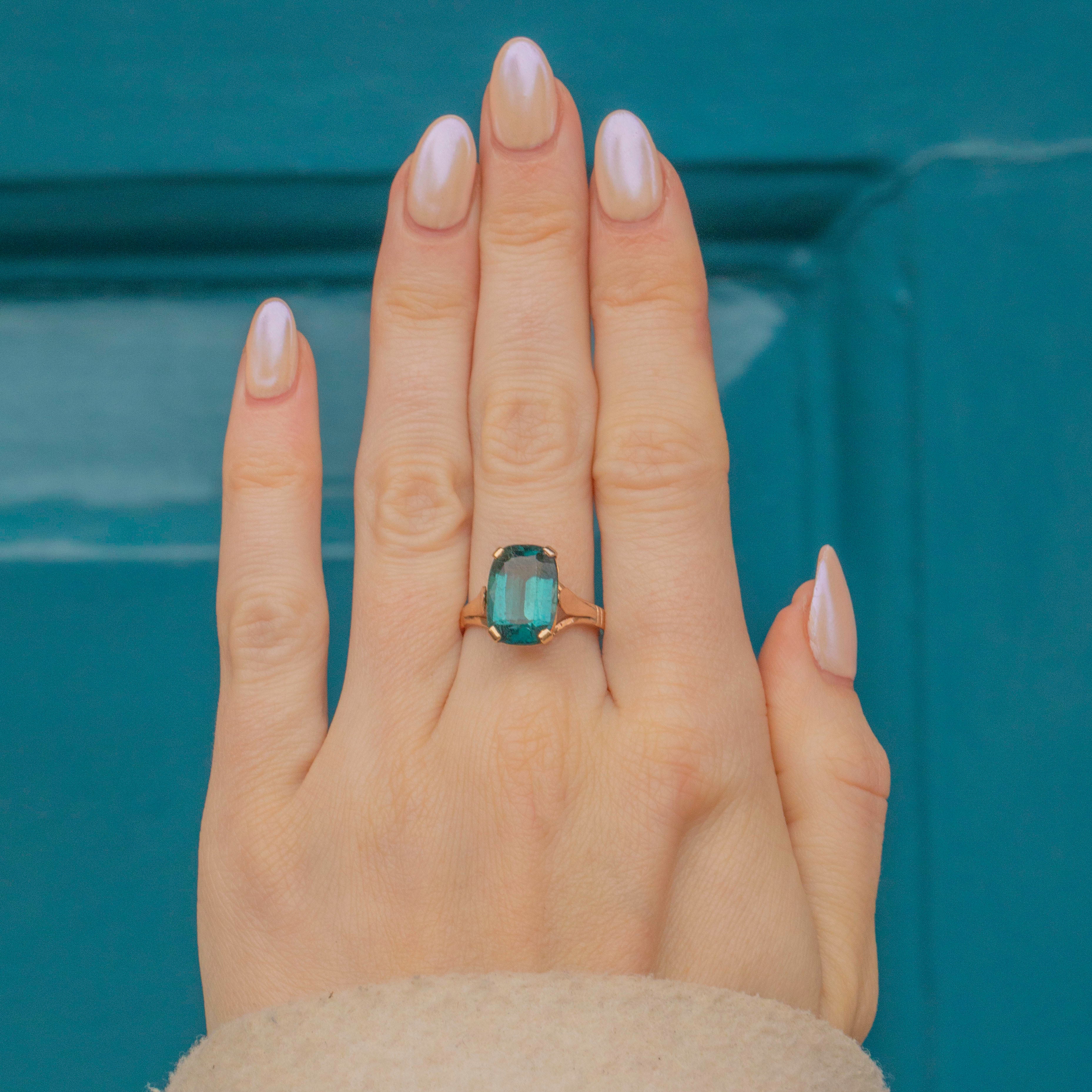 What is not to love about this antique 9ct Gold Blue Tourmaline ring, boasting a beautiful natural teal blue hue that shines day and night!