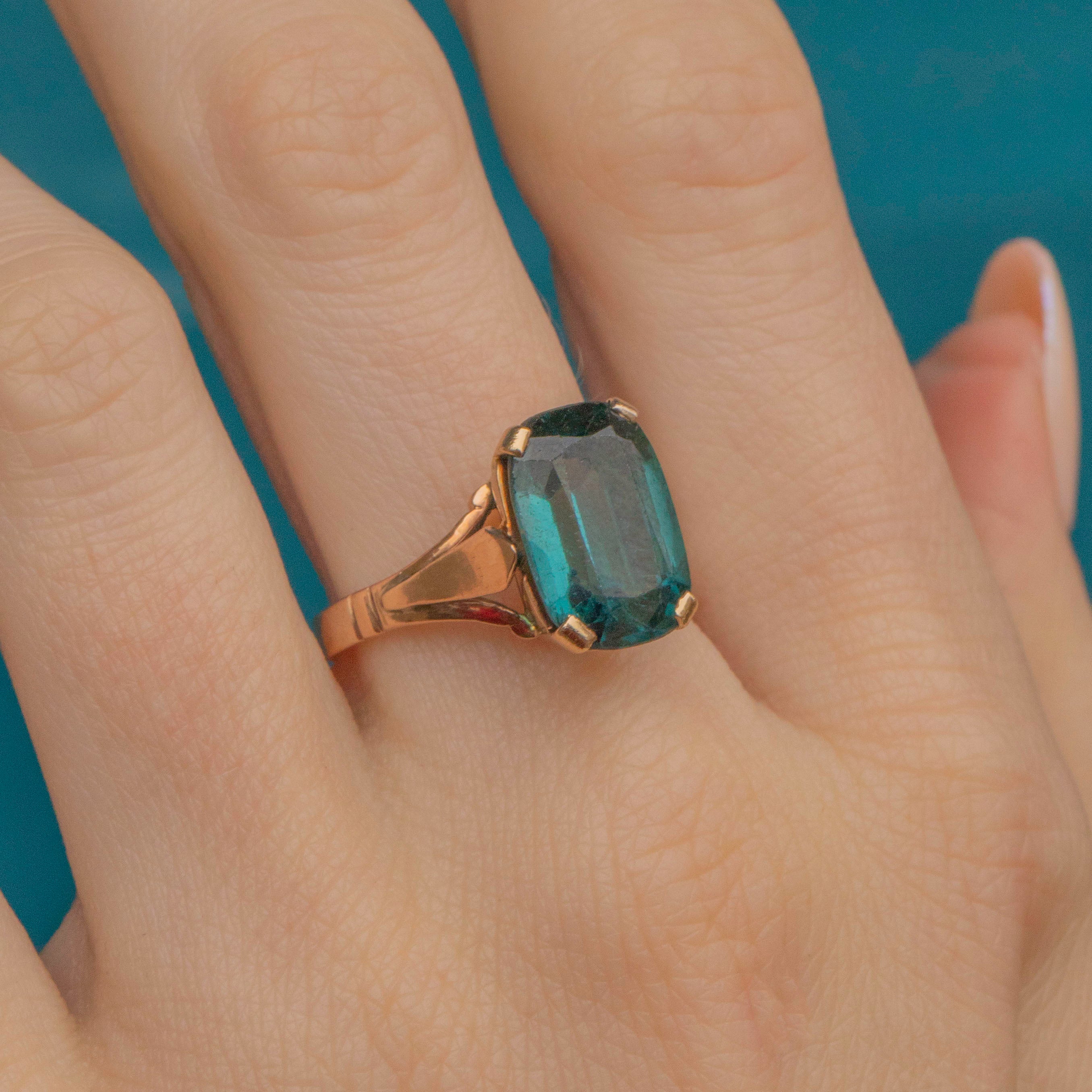Antique 9ct Gold Blue Tourmaline Ring, 3.22ct