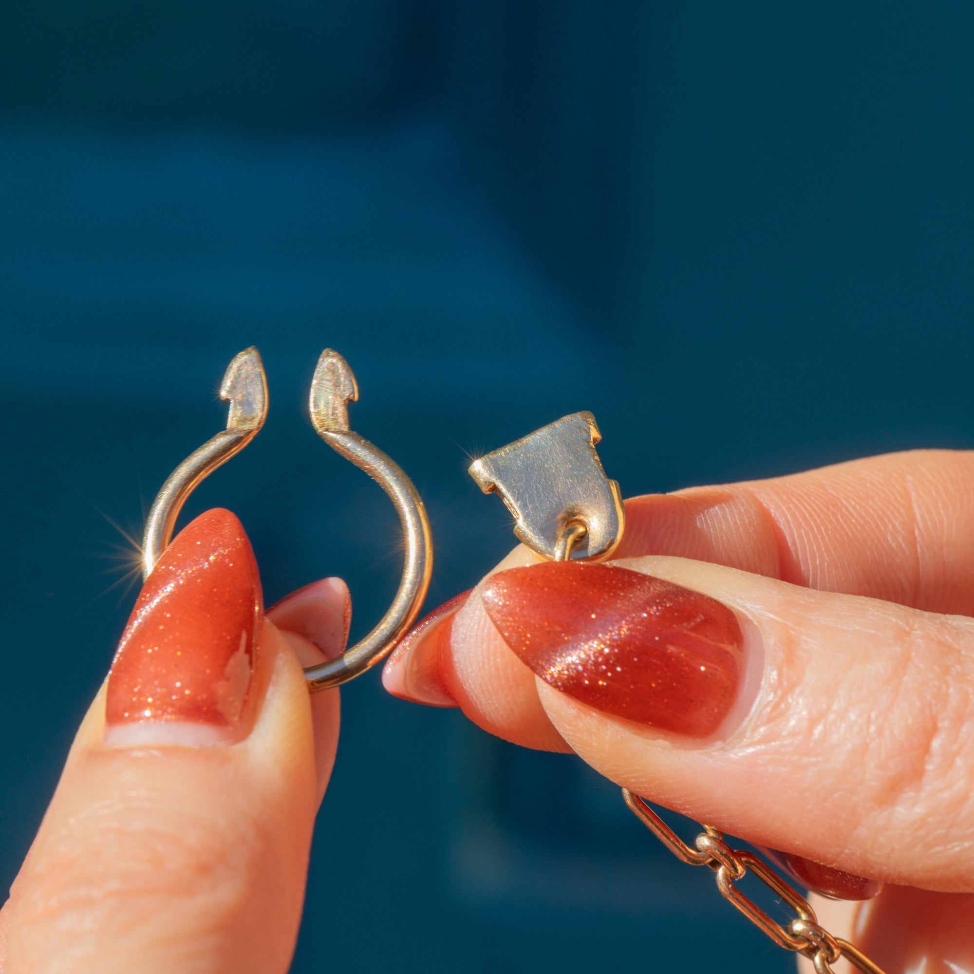 This antique 9ct Gold carabiner charm holder clasp will provide you with endless styling possibilities! Crafted from solid Gold, with a lovely buttery hue, this Victorian charm holder has a large carabiner and a dog-clip, connected by chunky trombone links.