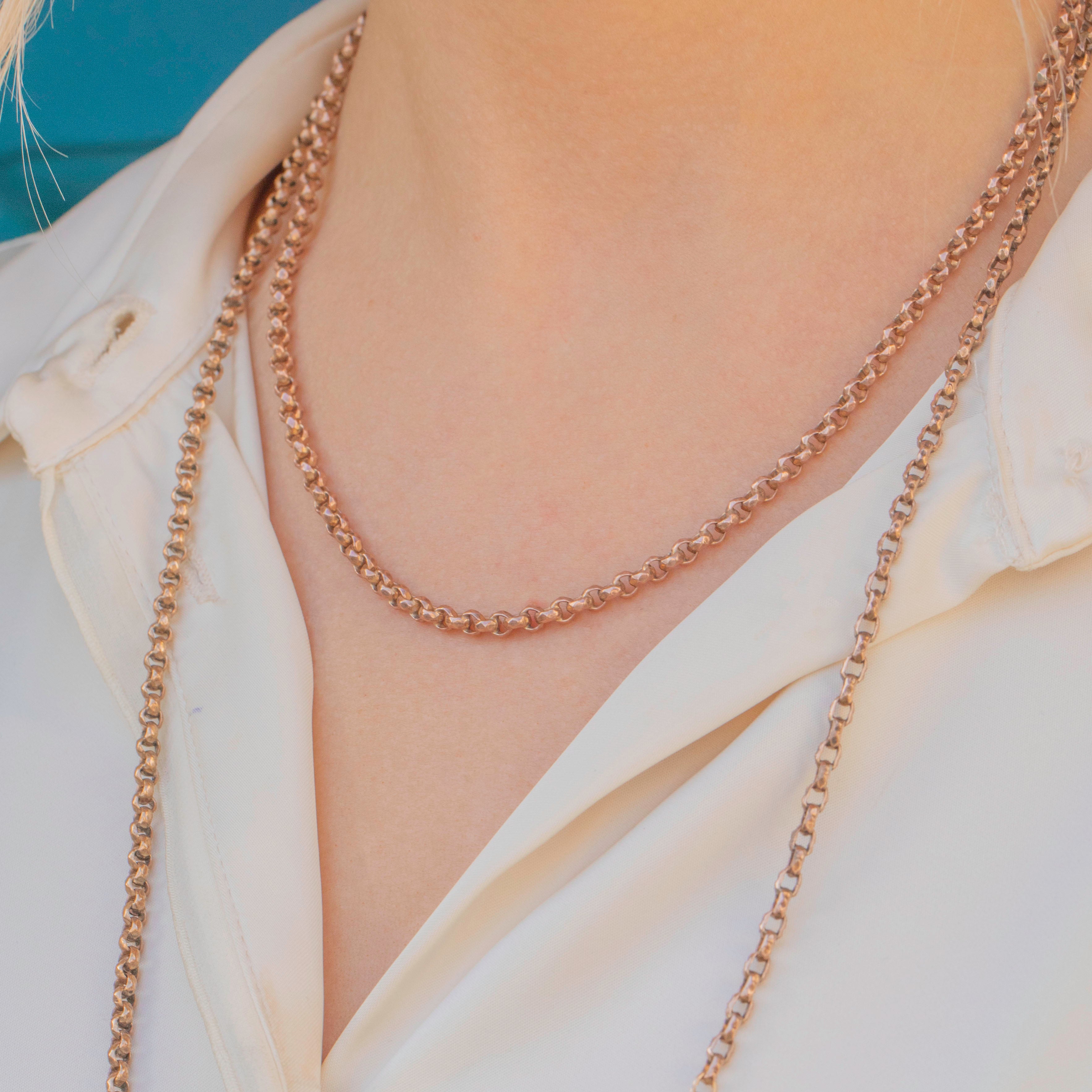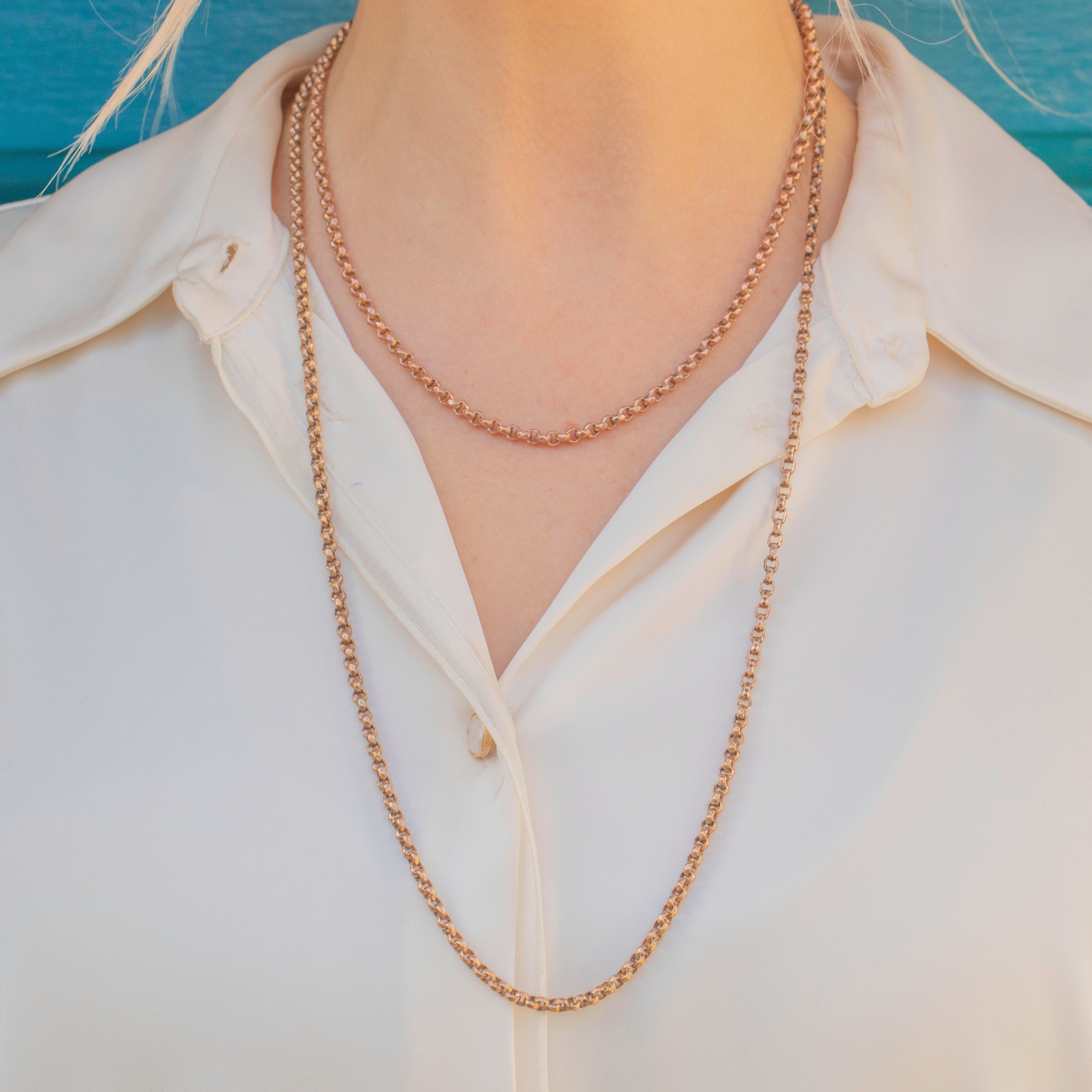 Measuring 44" long, this treasure can be worn at her full length, wrapped around your neck twice for a chic layered look, and even suspended a charm from her dog-clip for a personal touch! With the appearance of solid Gold for a fraction of the price, this Victorian belcher chain will provide your collection with versatility!