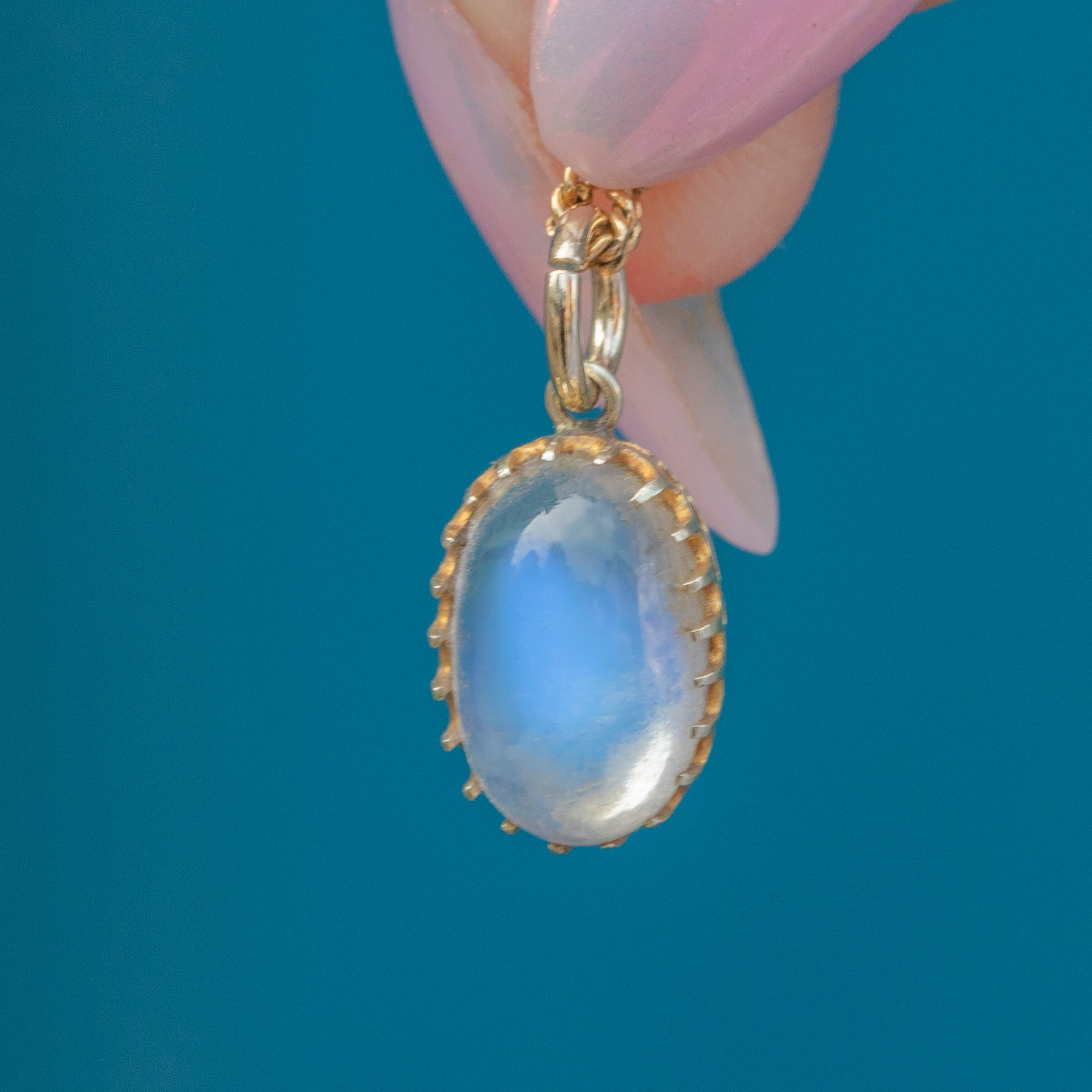 A magical antique 9ct Gold Ceylon Moonstone cabochon charm that radiantly catches the light!