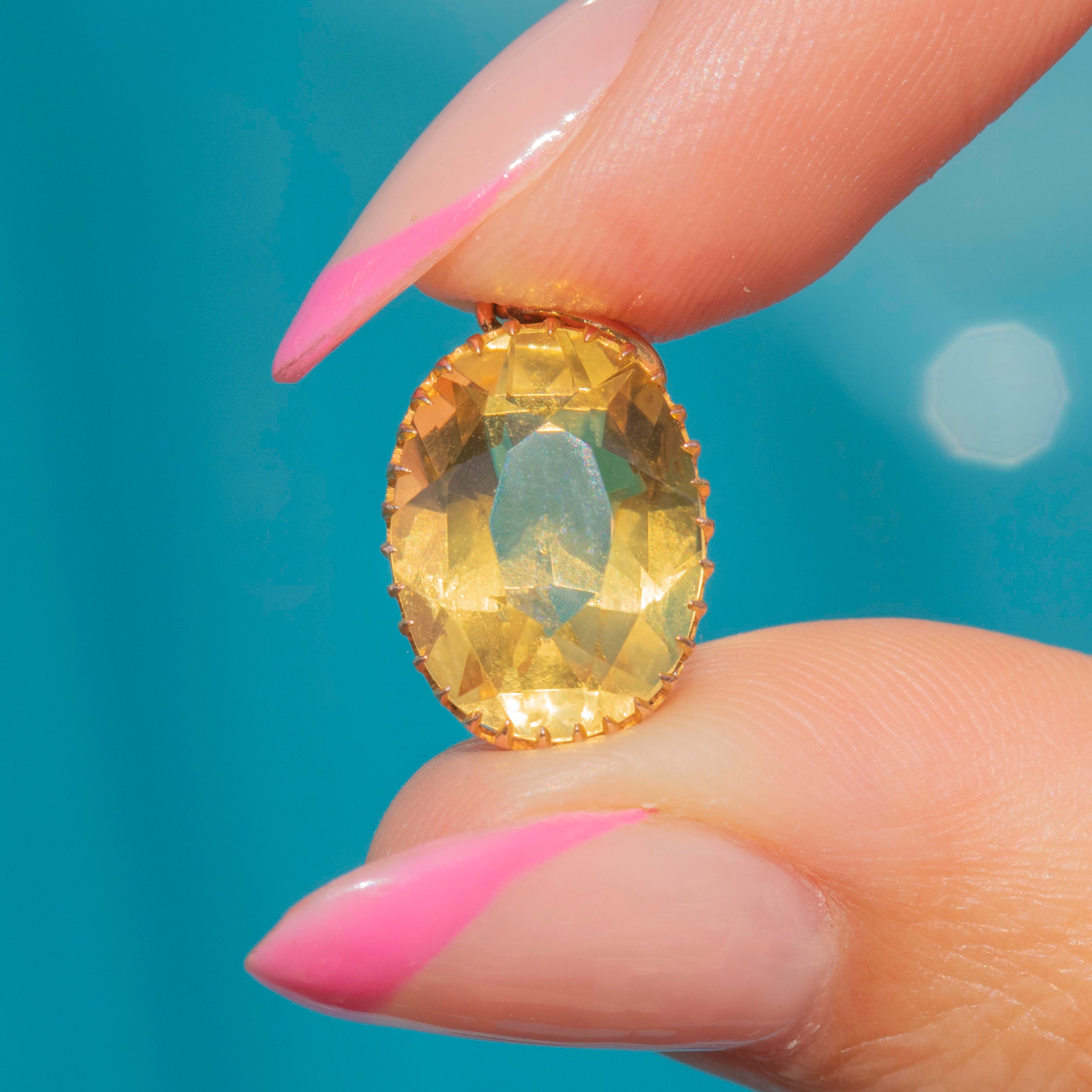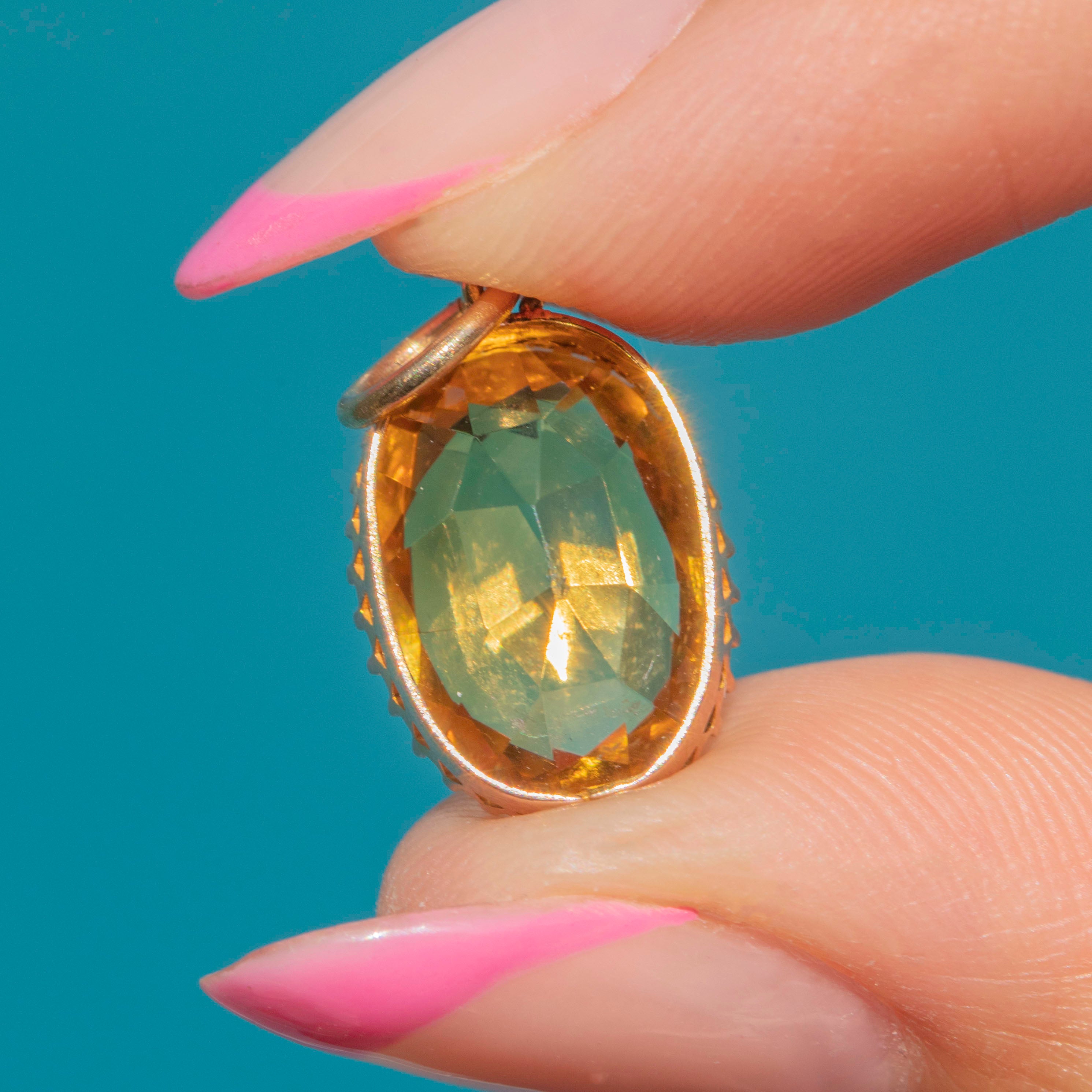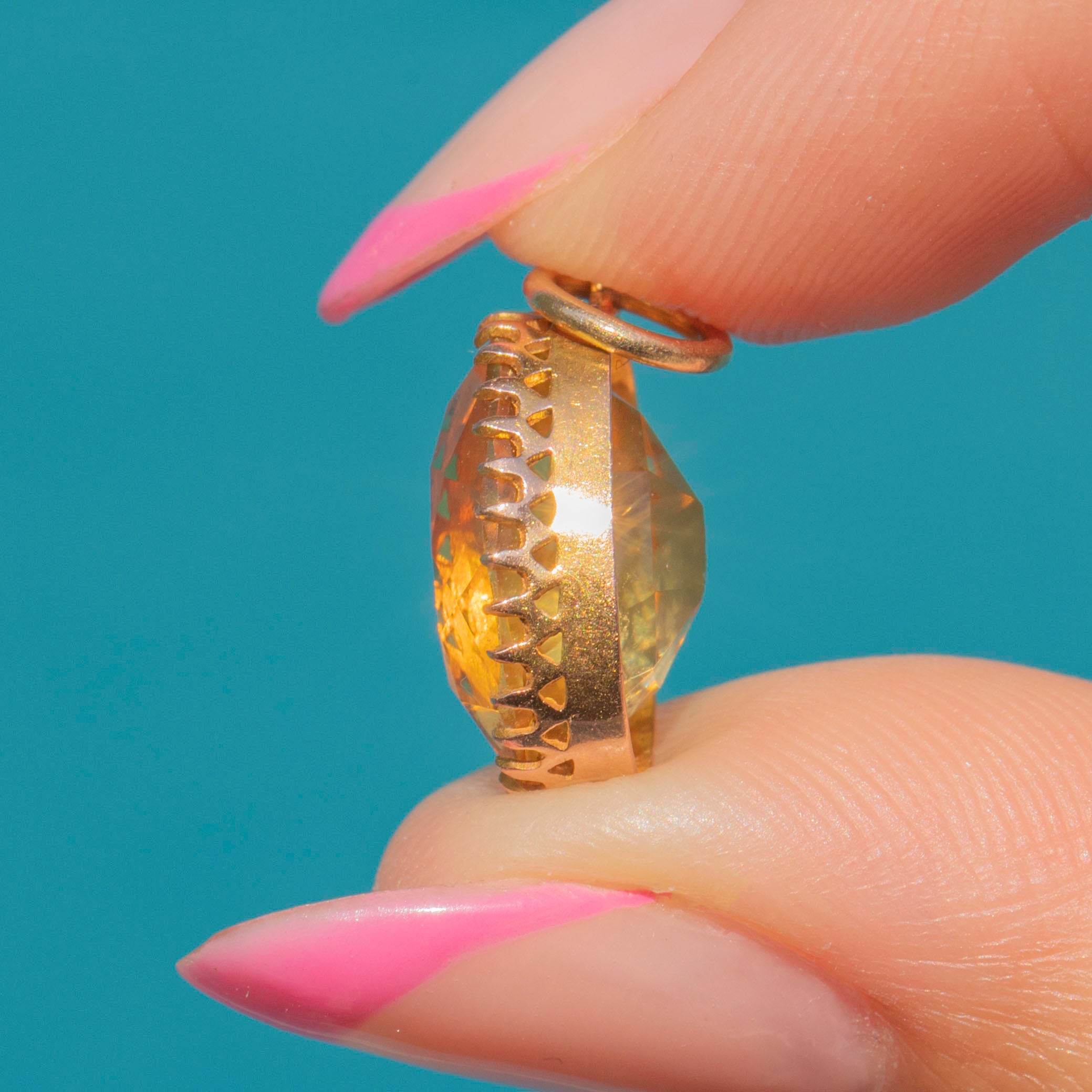 This antique 9ct Gold Citrine charm is a joyful little treasure! Sure to warm up the darkest of days, the wonderful 4.30ct Citrine shimmers with bright lemony hues as its crisp cut facets dance in the light.