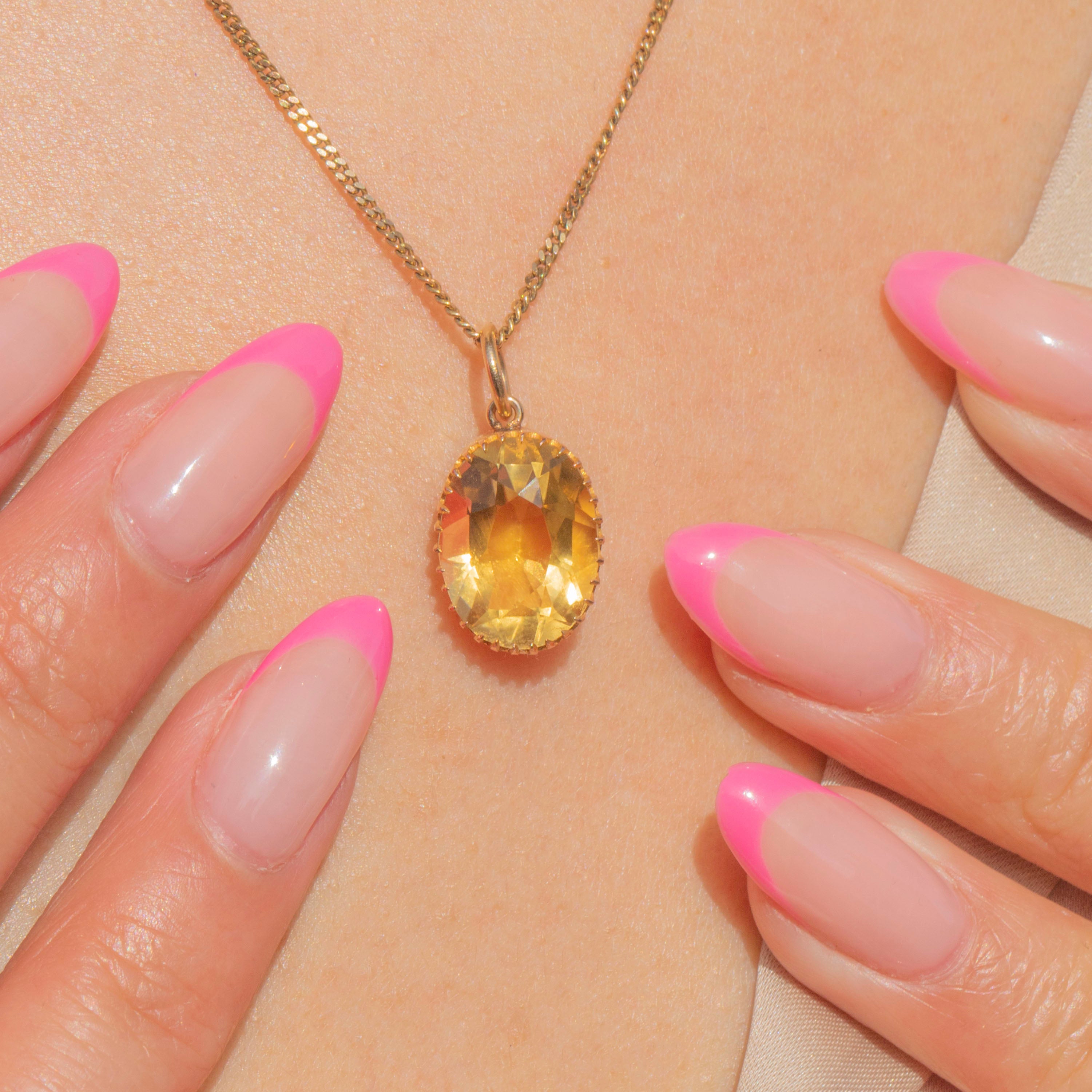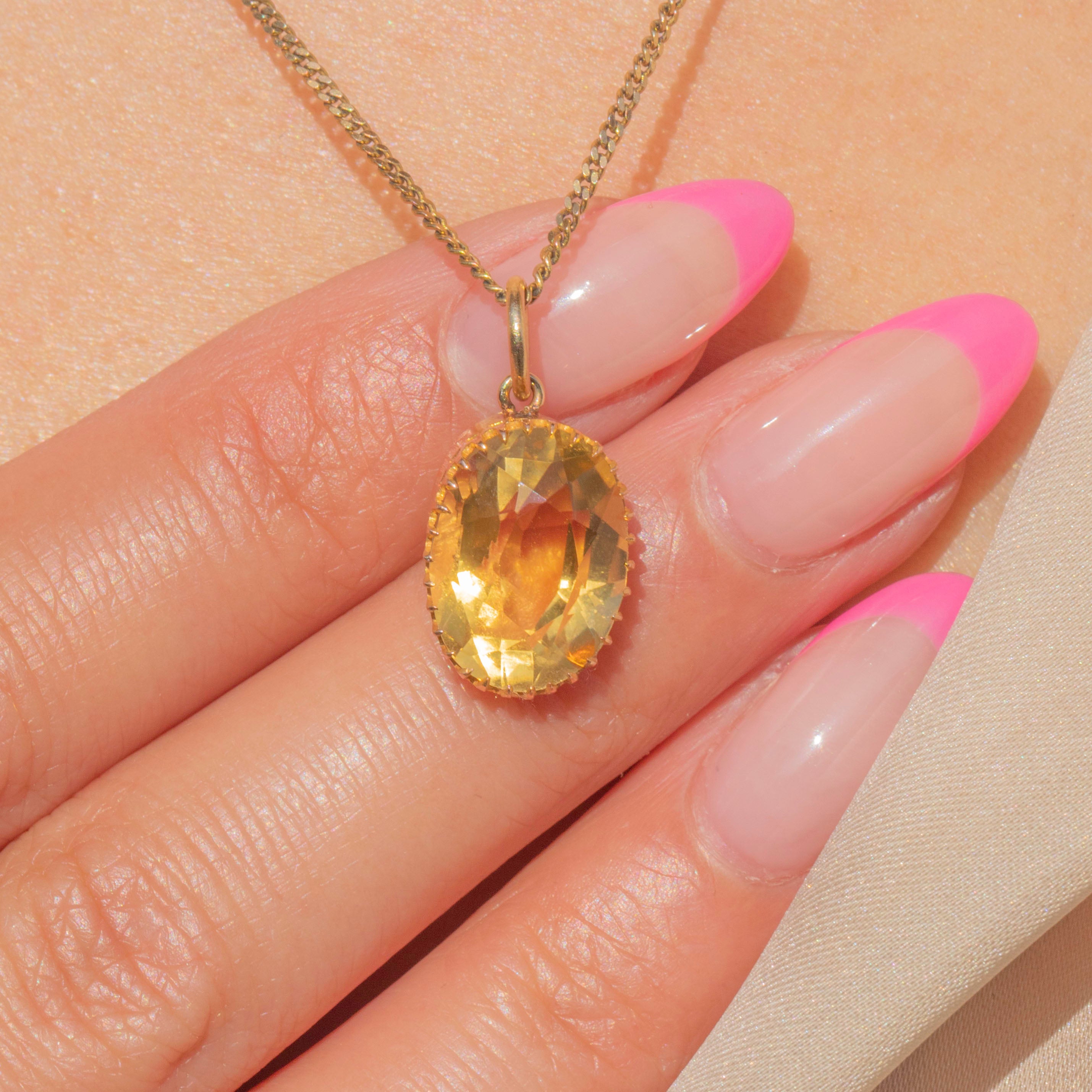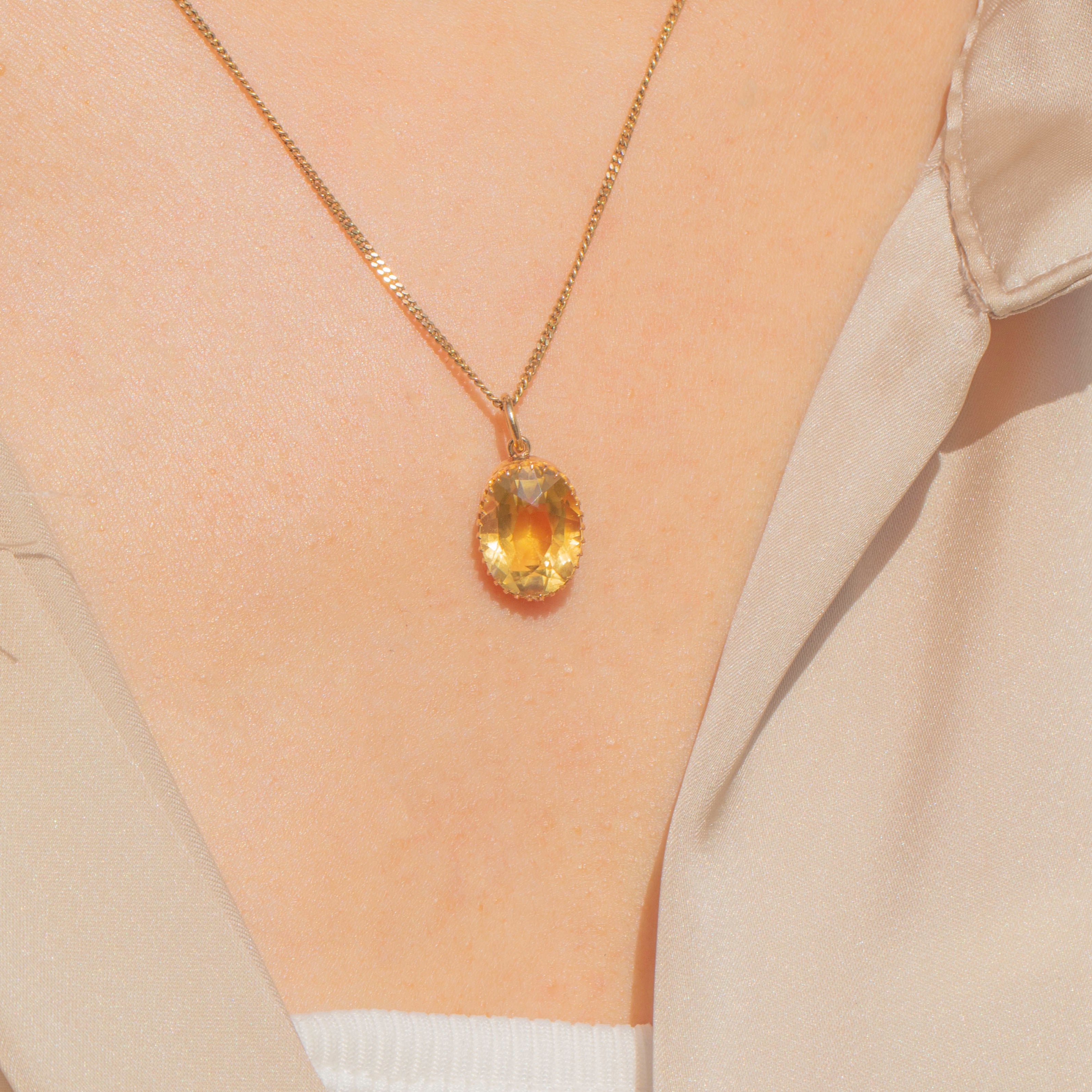Hugging her show-stopping Citrine are claw settings, crafted from 9ct Gold, offering a buttery tone that marries perfectly with the Citrine's heartwarming hues. This Victorian Citrine pendant is just bursting with character, she is too good to resist!