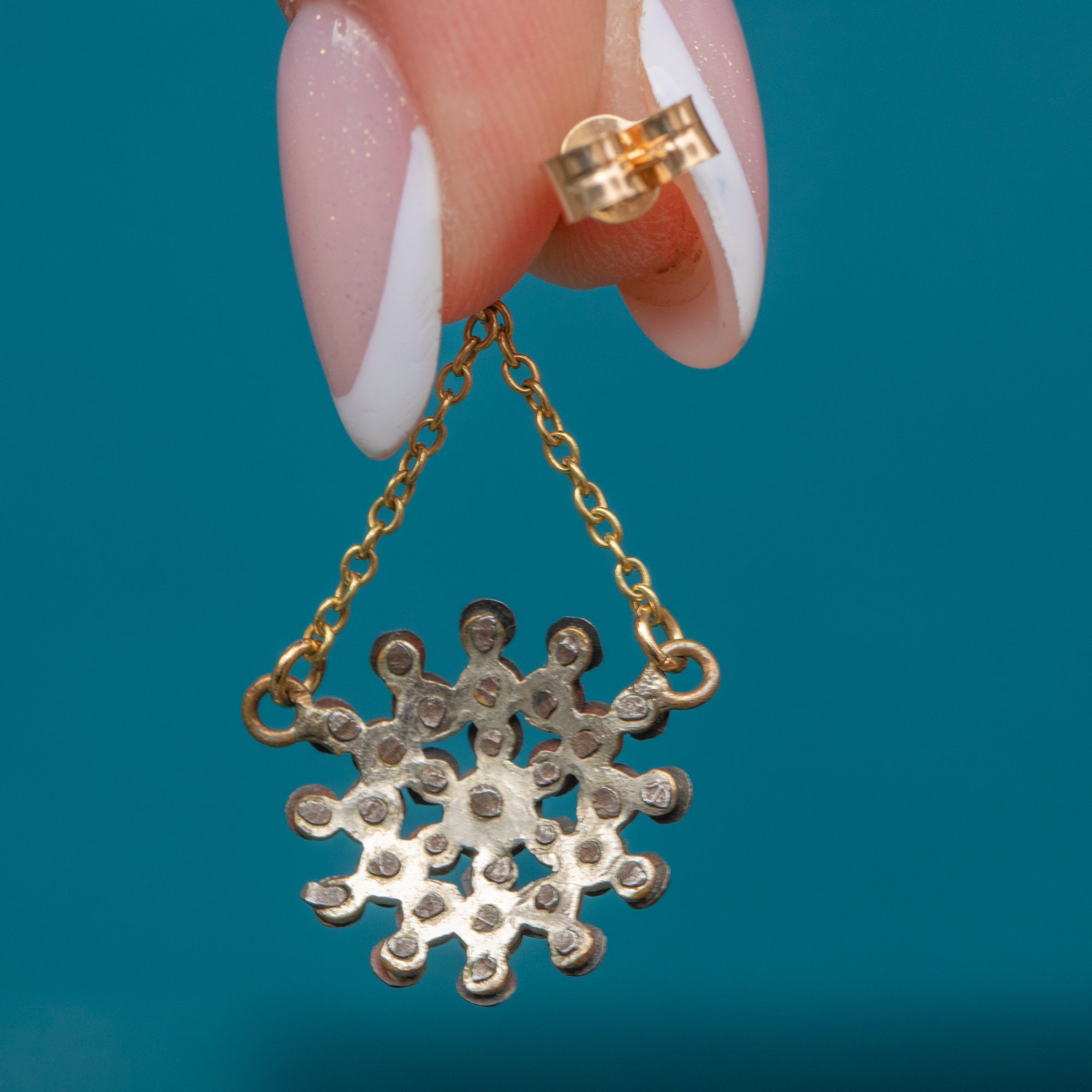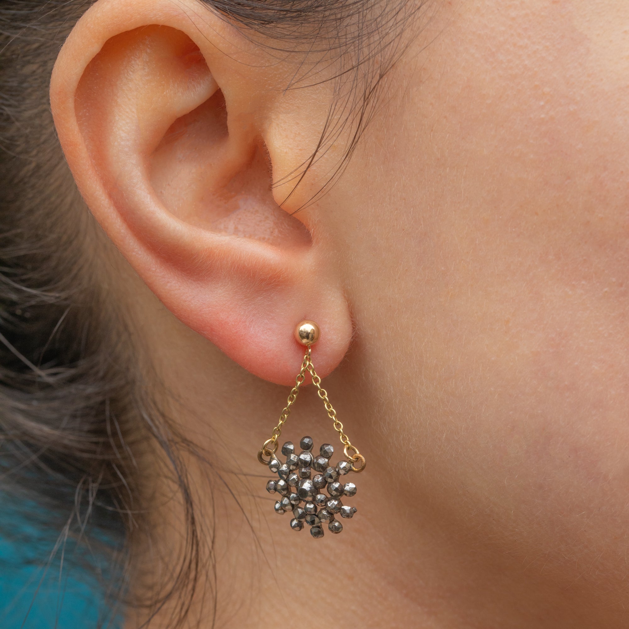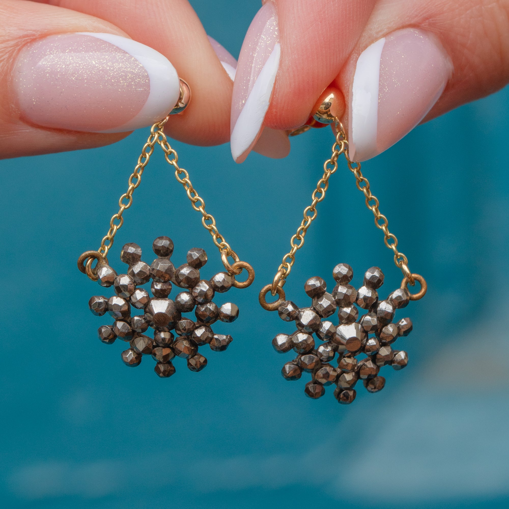 EXCELLENT: These antique 9ct Gold Cut Steel star earrings are in excellent condition. Each Cut Steel bead is present and has been beautifully preserved, with crisp facets that glint in the light. The later added chains and posts are in perfect condition allowing you to wear these standout celestial earrings with the utmost confidence!