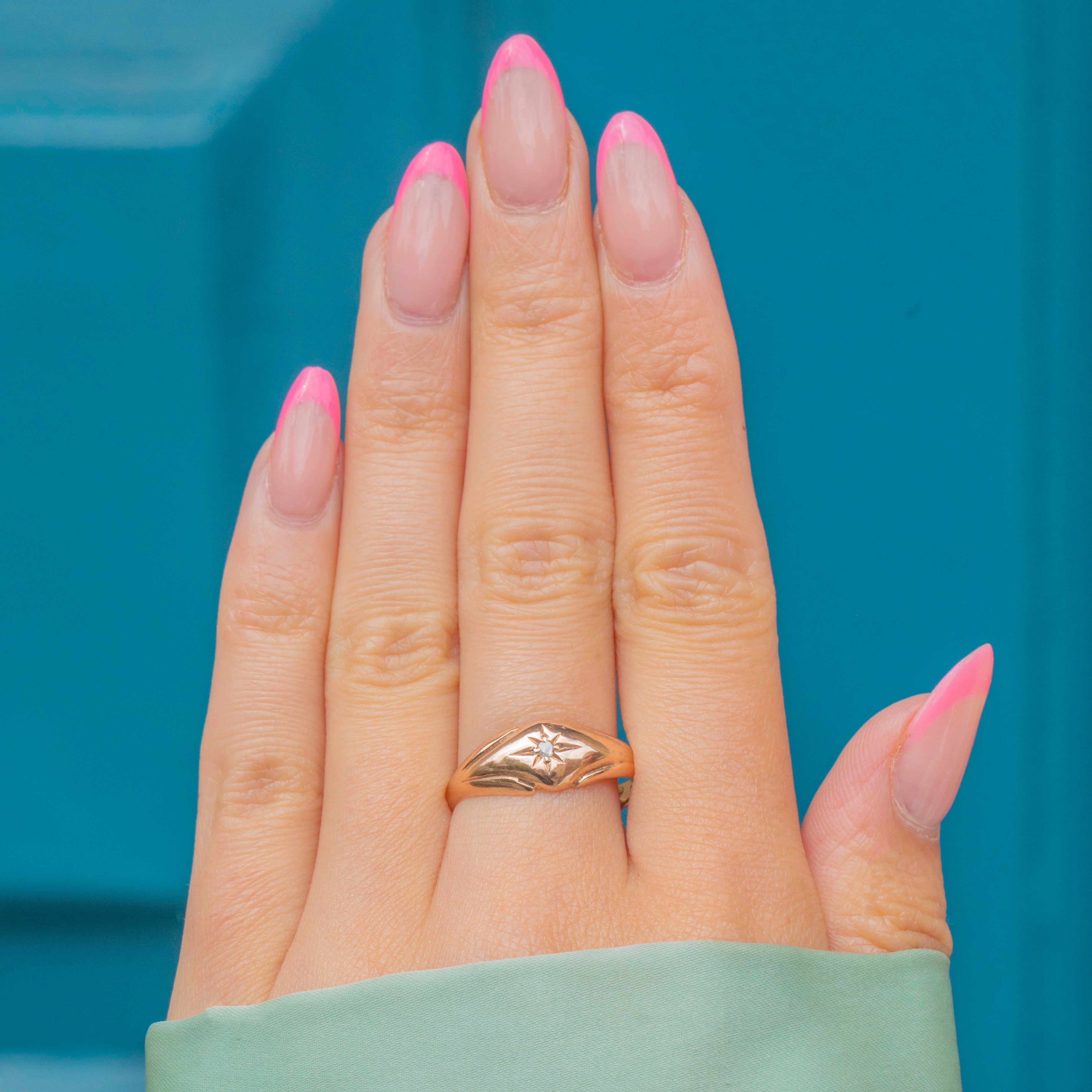Dated to 1913, this 9ct Gold Diamond star set gypsy ring radiates antique allure!