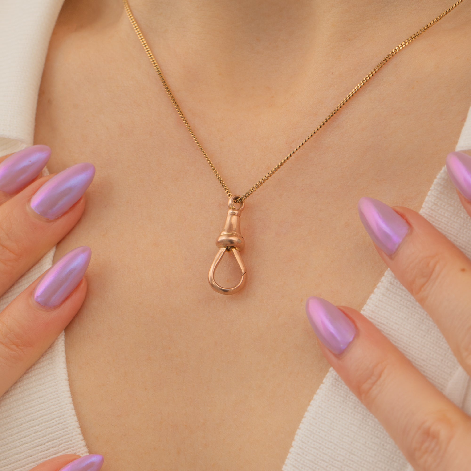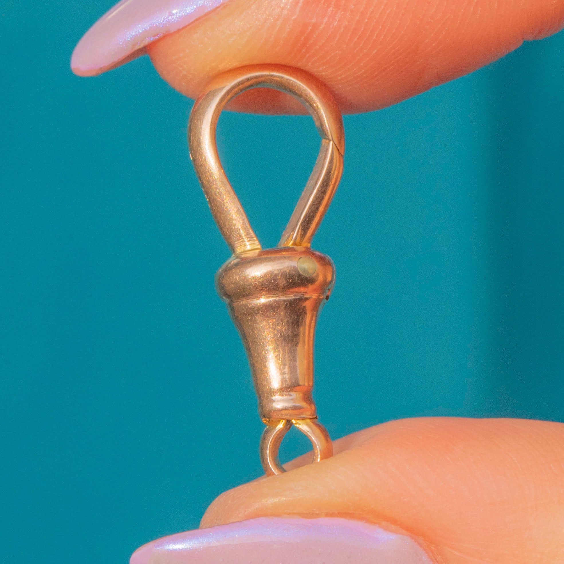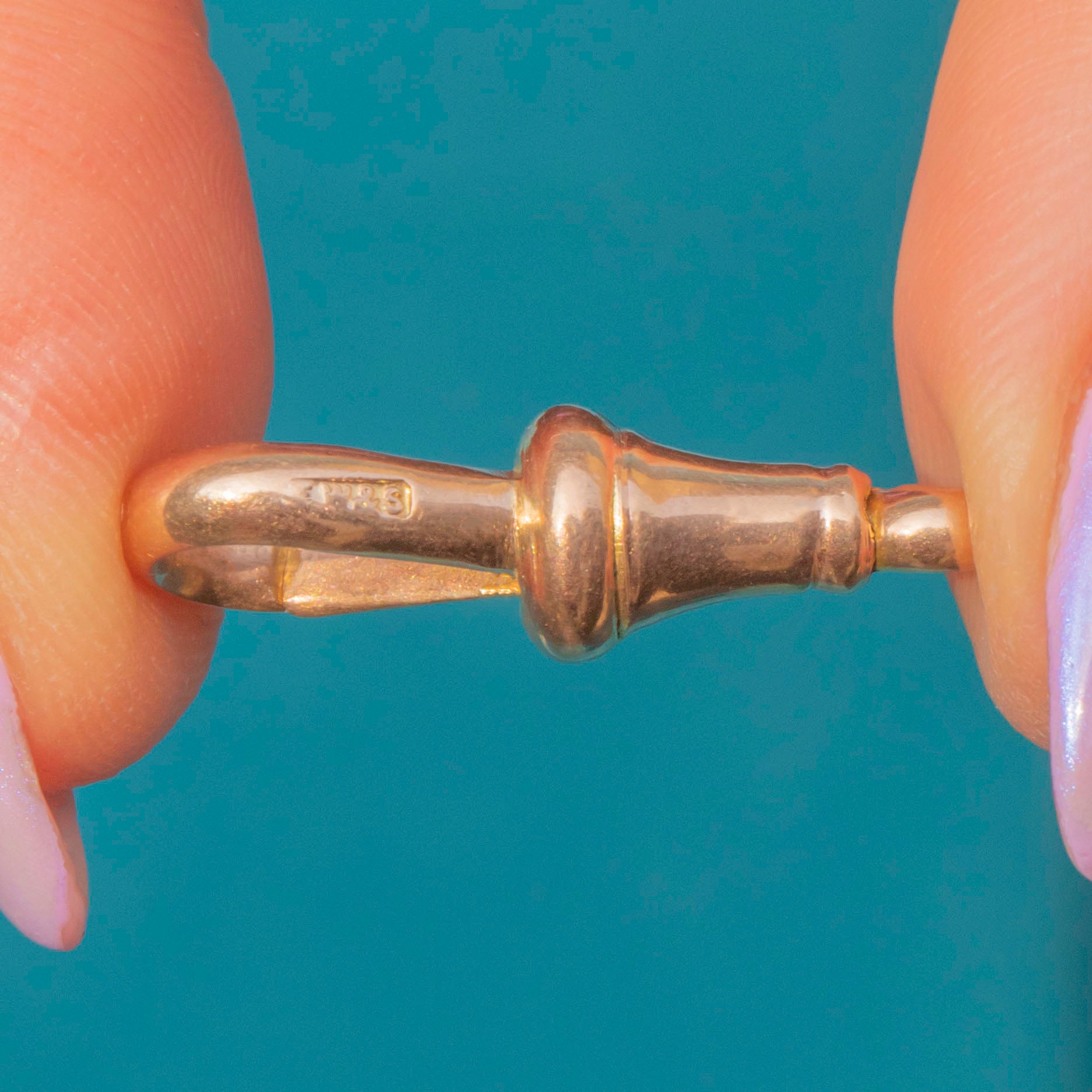 EXCELLENT. This antique 9ct Gold dog-clip is in excellent condition! The Gold boasts a radiant and stunning rosy hue, and the clasp is sturdy and durable, ensuring many more years of enjoyment.