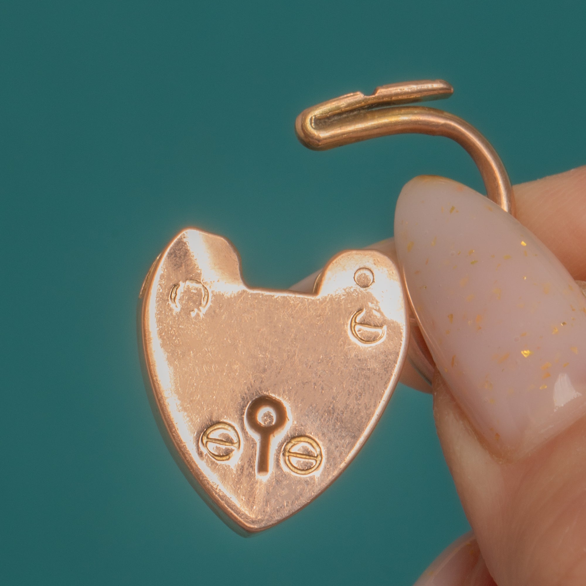 VERY GOOD-EXCELLENT: The Gold shows a bright, even polish with light surface scuffs and a few minor dings commensurate with age. Links are well aligned, with the heart padlock and safety chain intact and no visible repairs; stamps are present but softened. Overall, this bracelet has been well cared for and presents beautifully.