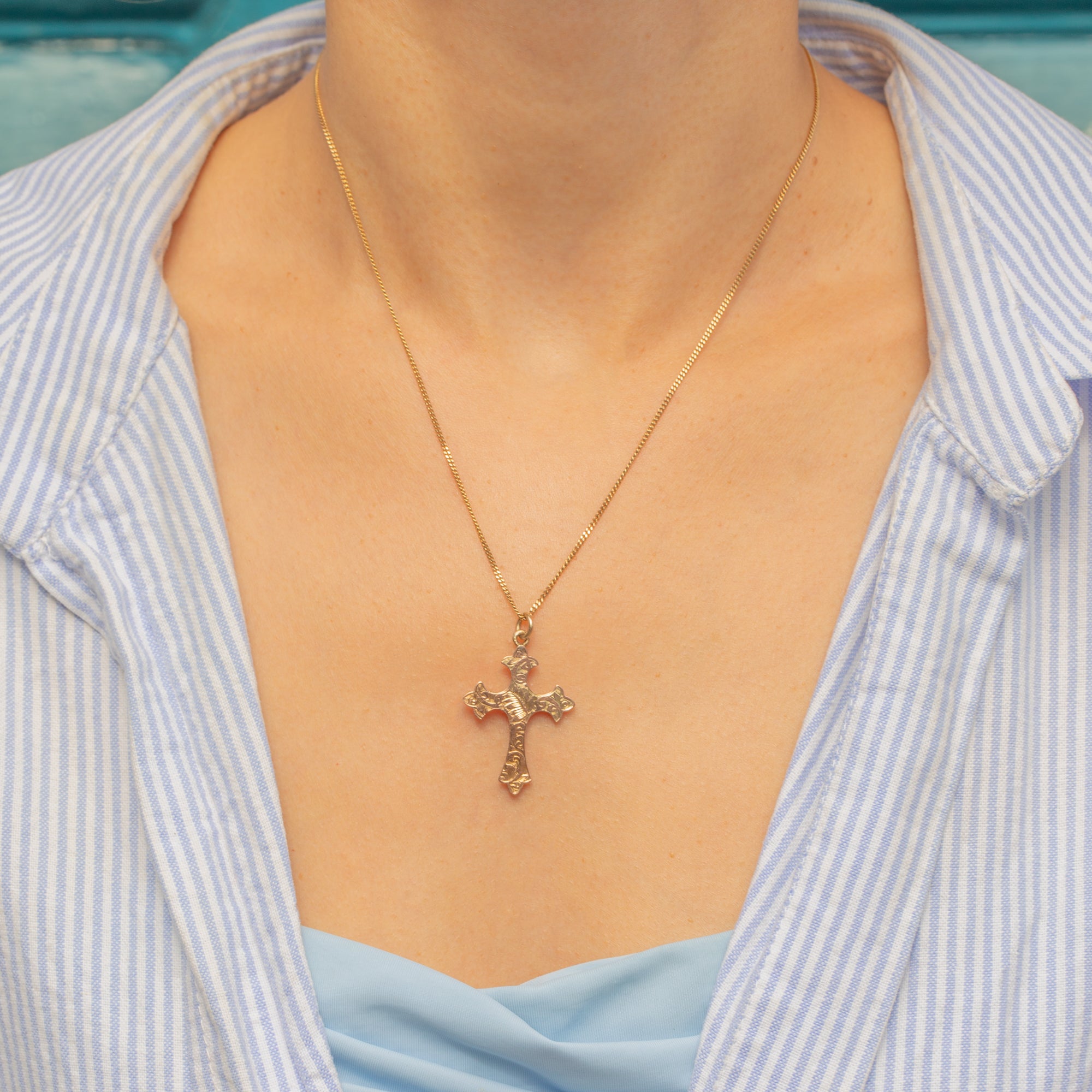 This solid Gold cross pendant is steeped in symbolism, and can be treasured around your neck suspended from a fine Gold chain.