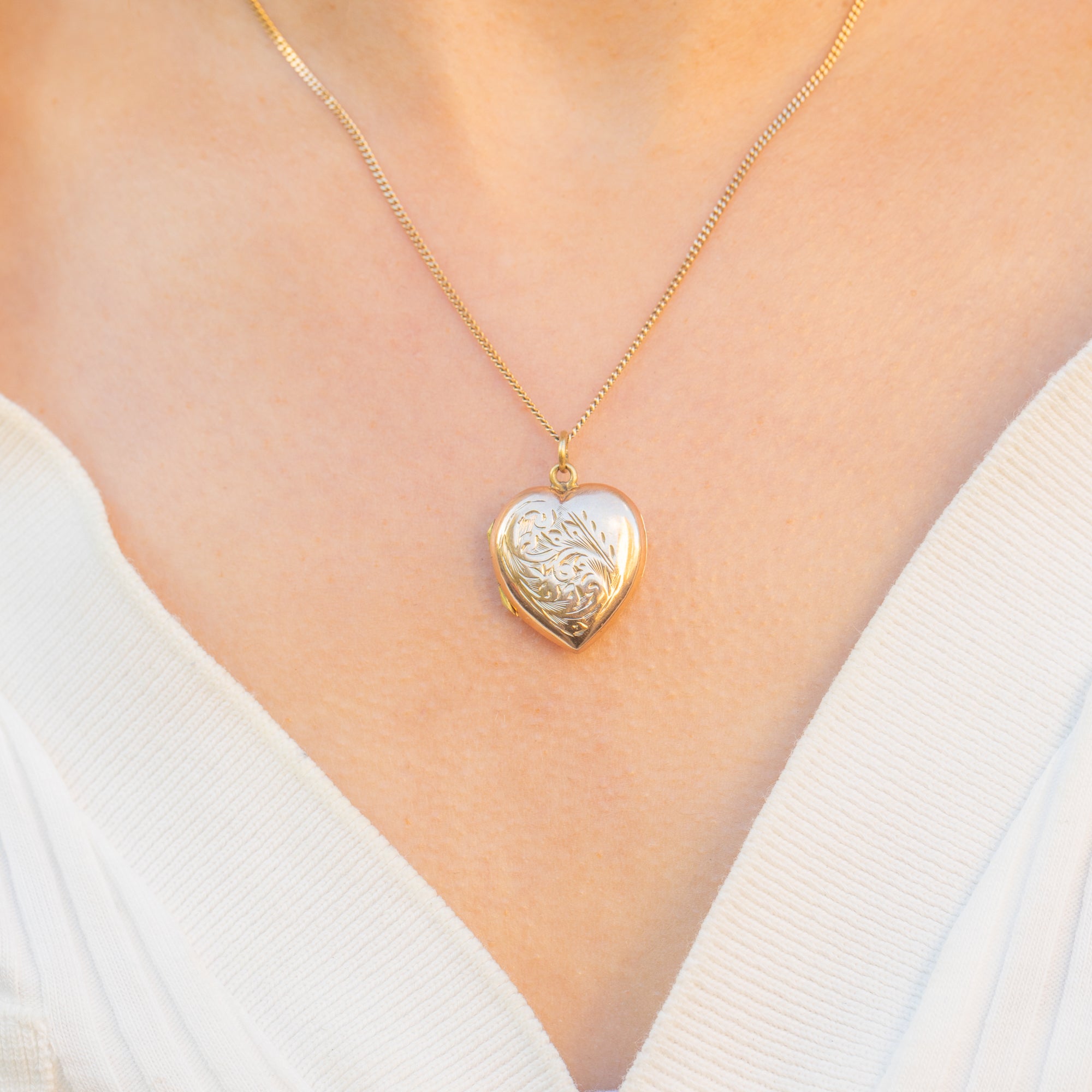 This charming Edwardian heart locket is crafted in 9ct Gold with elegant hand-engraved detailing to both sides. Made “back and front” in solid 9ct Gold with a reinforced metal core for strength and durability, it captures the sentimental beauty of early 20th-century design.
