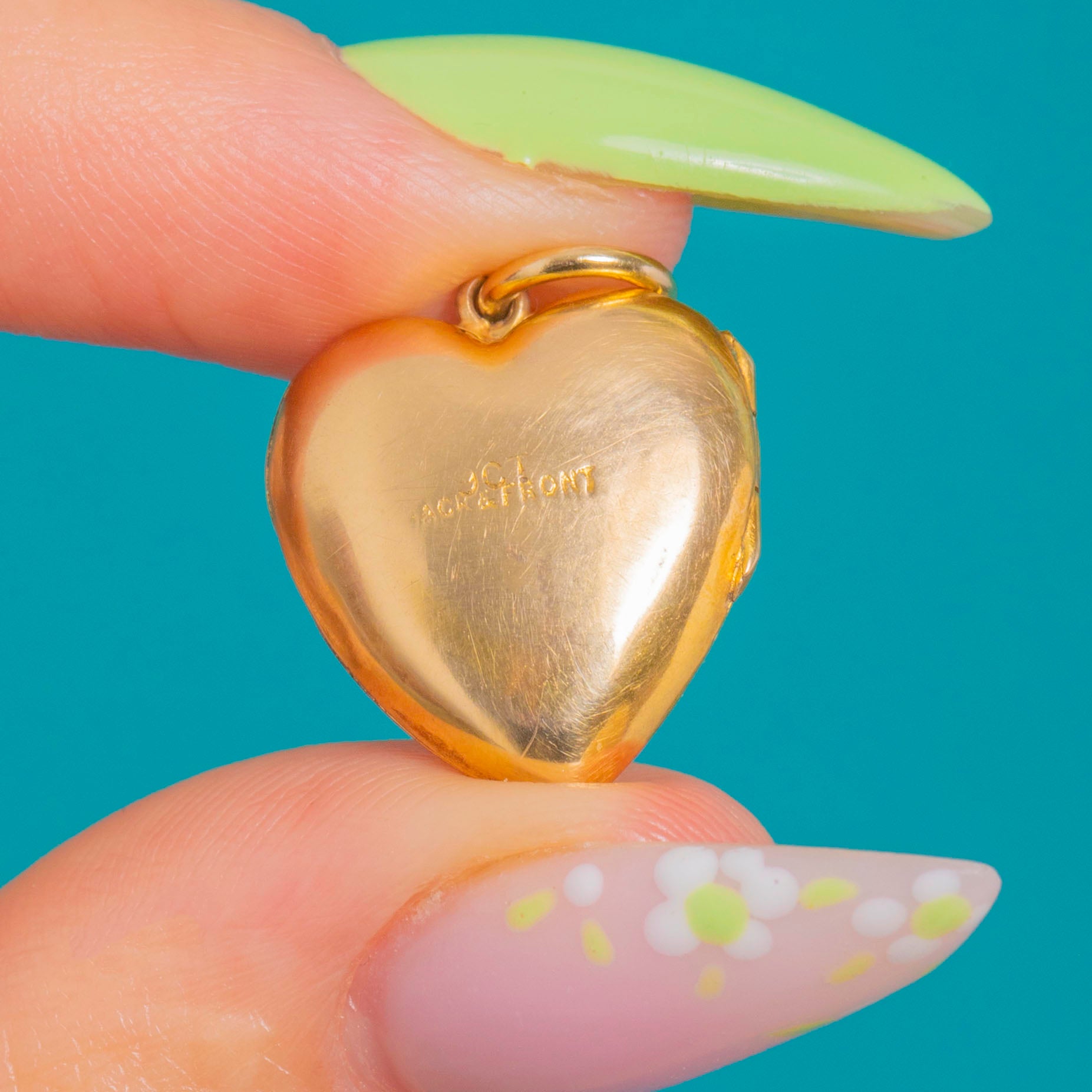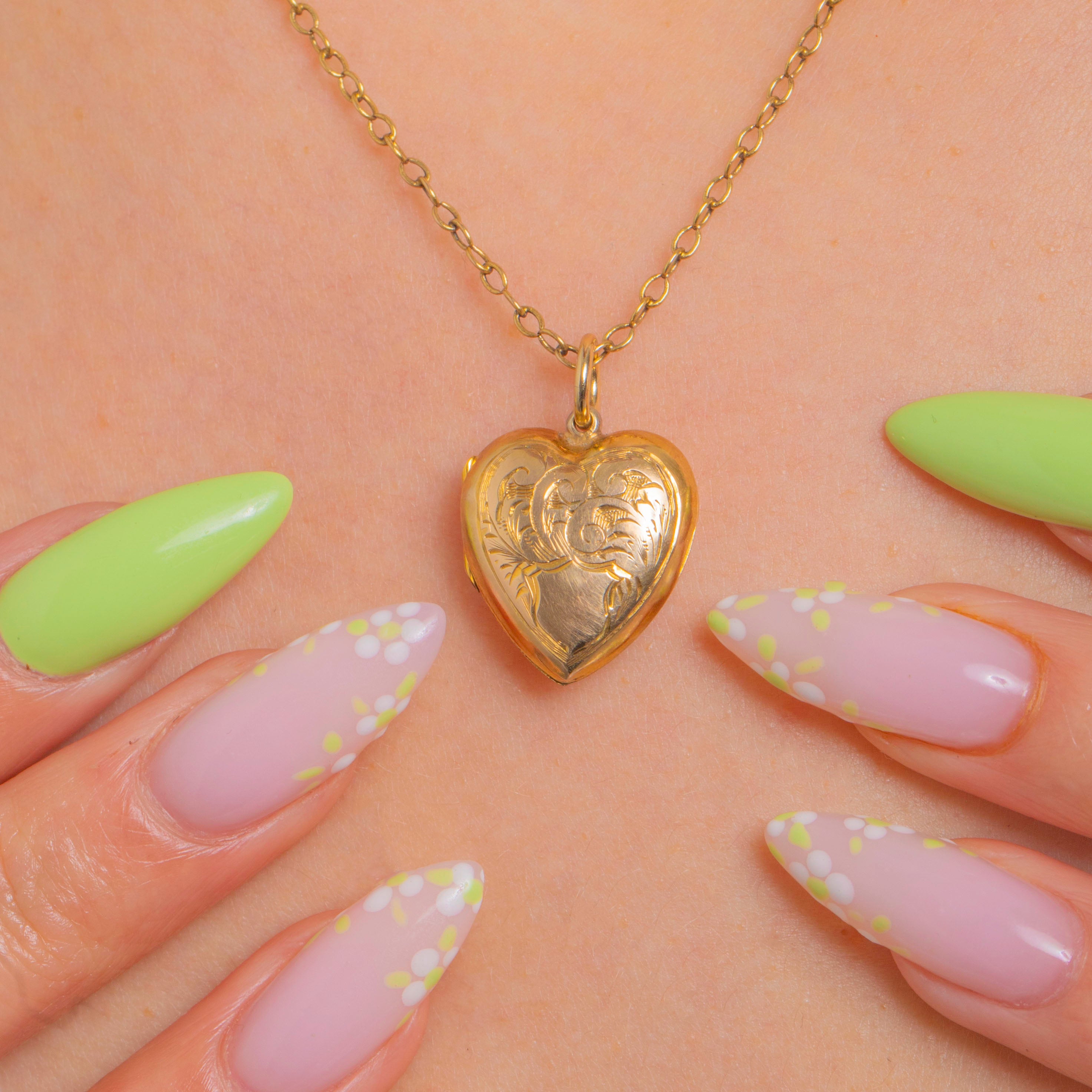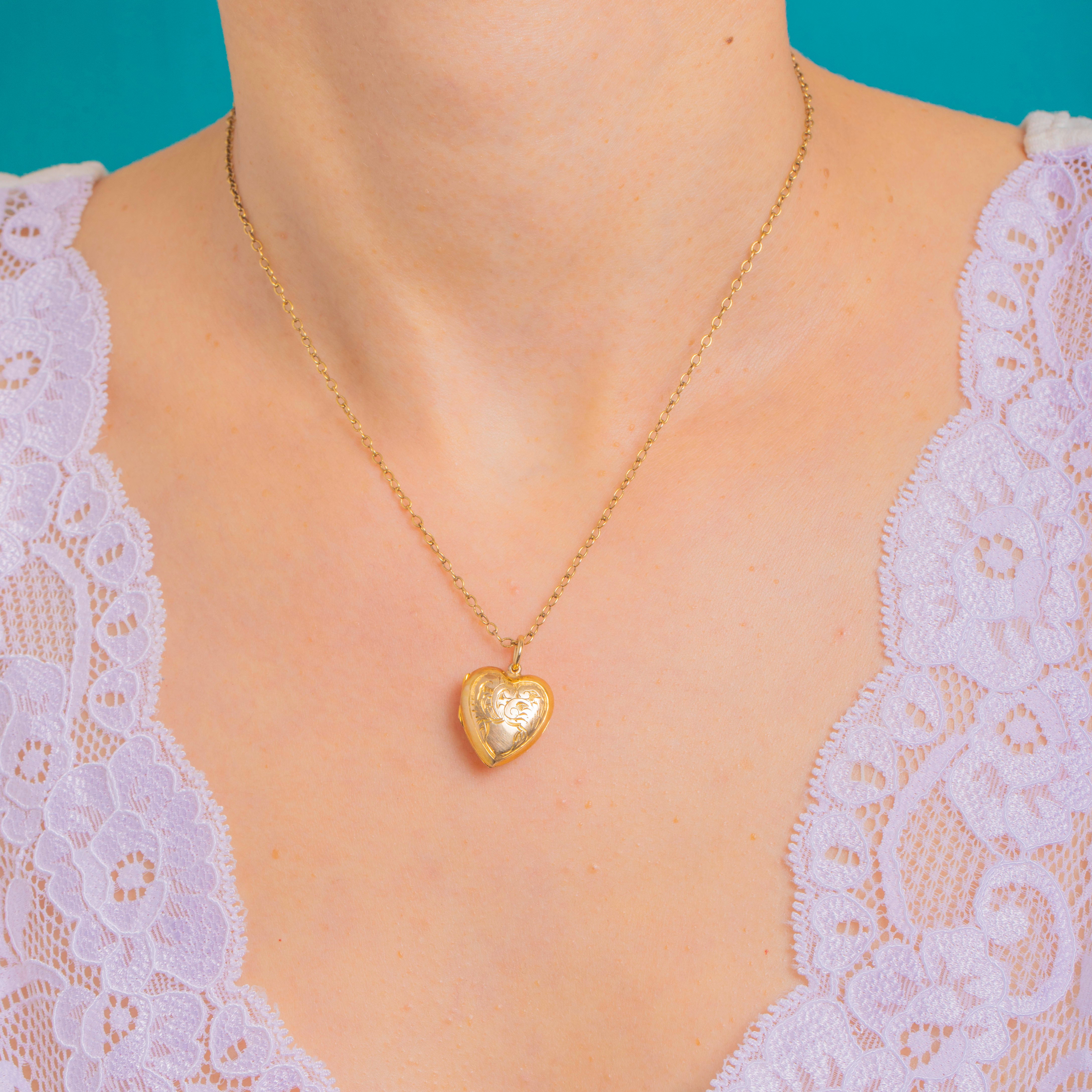 Sweet and sentimental, this petite Victorian heart locket is crafted in 9ct Gold back and front and adorned with graceful foliate scroll engraving within a delicate raised border. Its warm golden glow and charming proportions make it an easy, everyday treasure with a romantic twist.