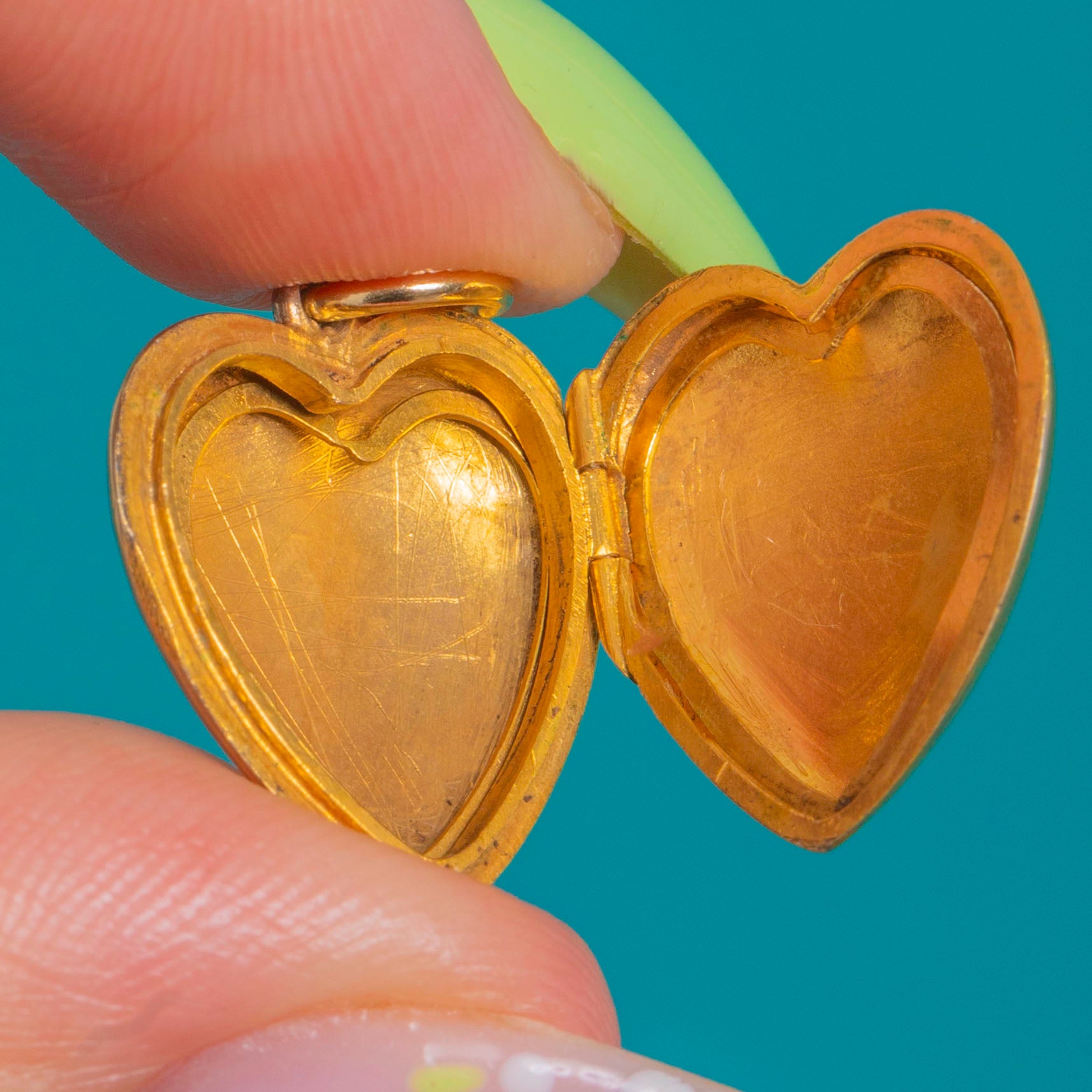 EXCELLENT: Light surface wear and fine scratches commensurate with age, with crisp engraving and a bright finish. The hinge is secure and the locket closes with a satisfying click. Interior photo wells show minor surface marks from gentle past use, with no structural issues.