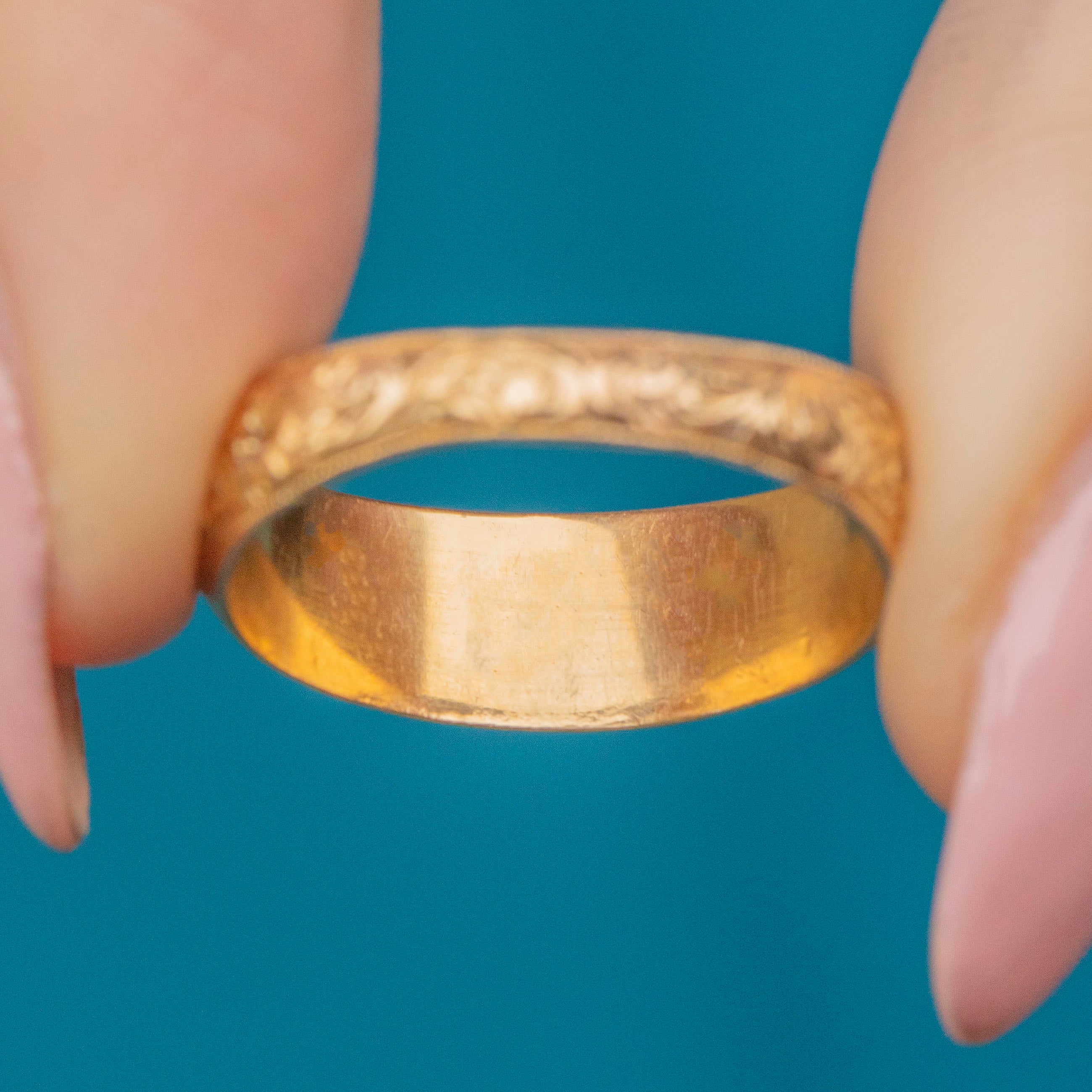 EXCELLENT. This antique 9ct Gold Mizpah ring is in excellent condition. The Gold is bright and the lettering is bold with no dings or scuffs. There is some very minor wear on the back of the band, commensurate with age. All in all, a wonderful piece of sentimental jewellery ready to be gifted or worn straight away!