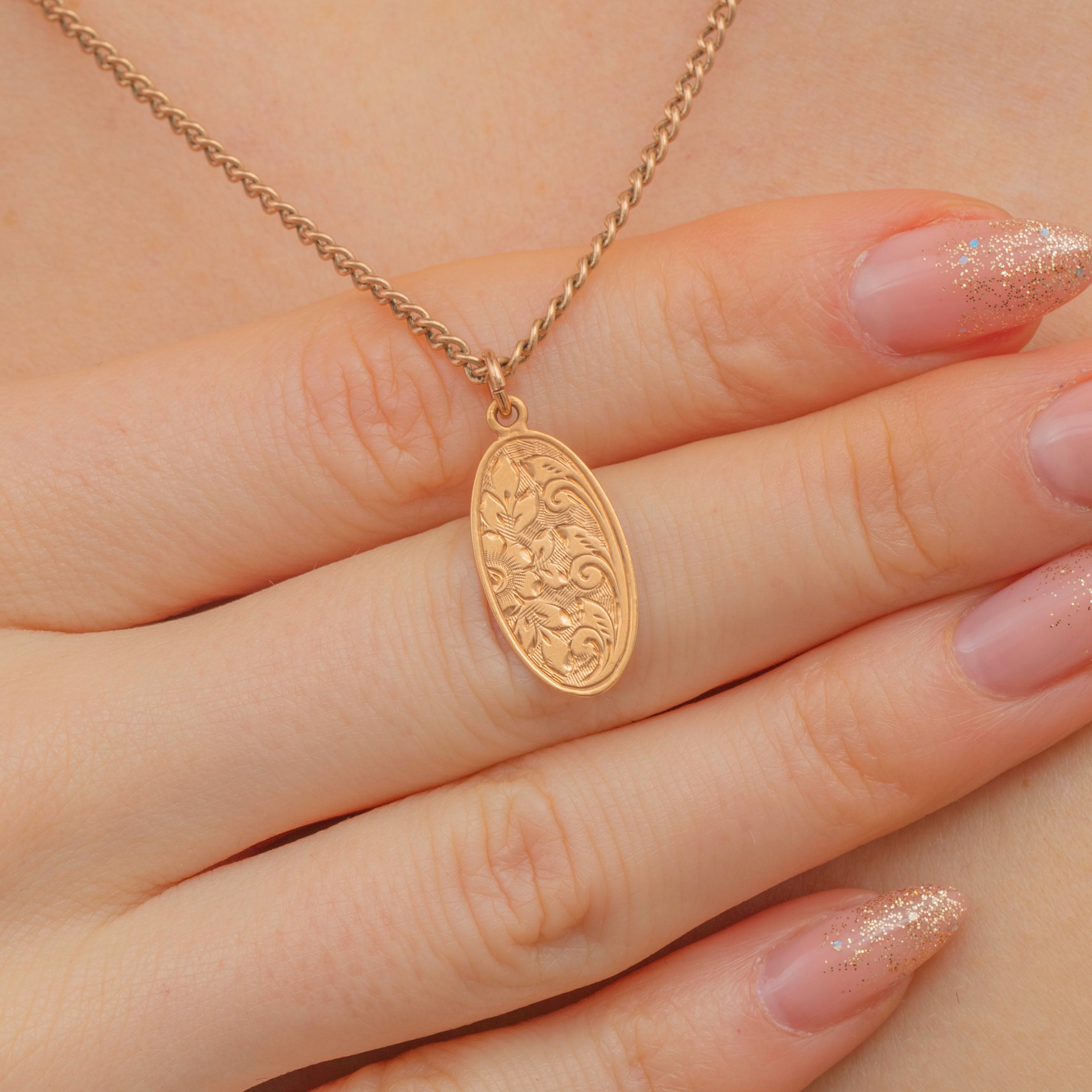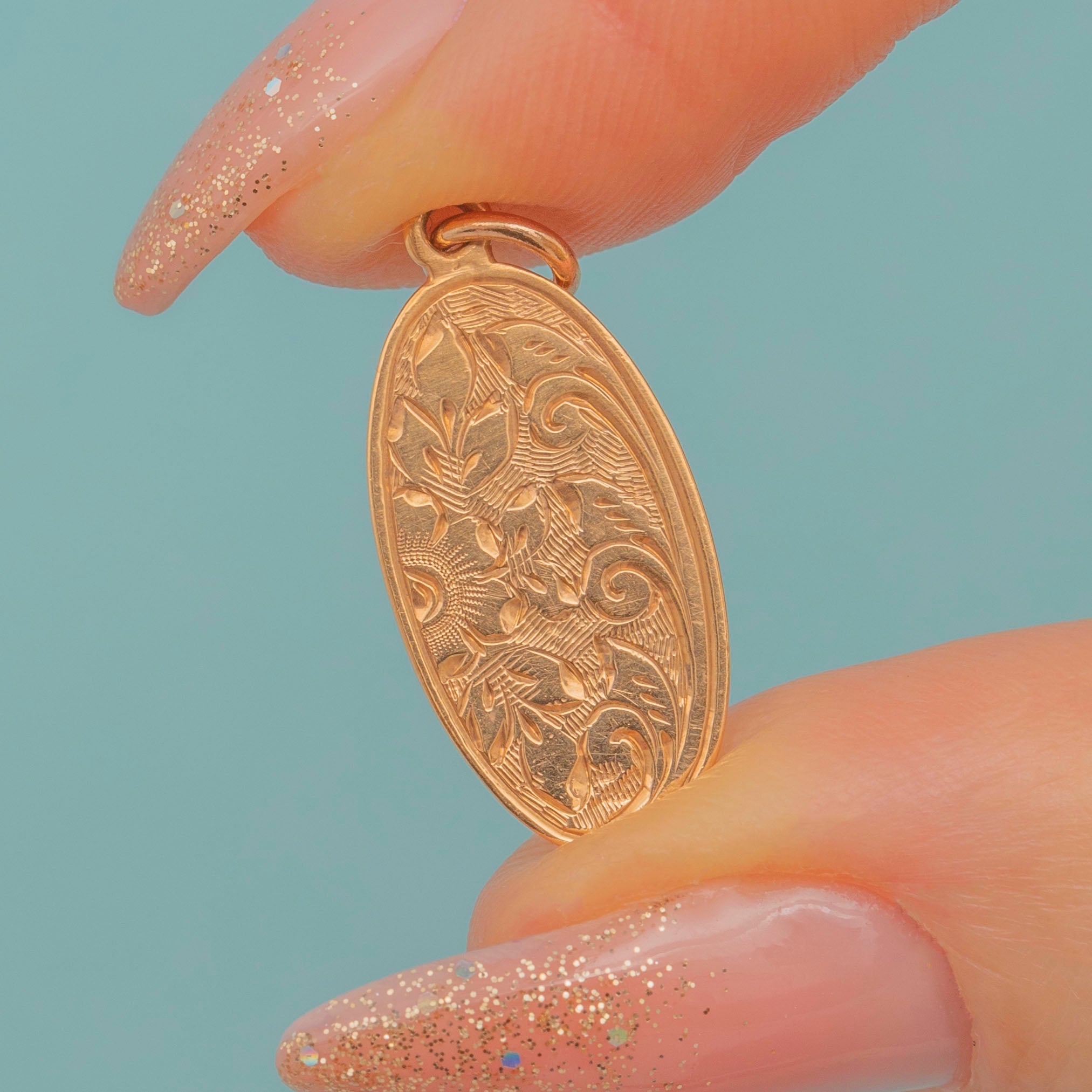 This antique 9ct Gold engraved pendant is the perfect versatile piece to add to your collection.
