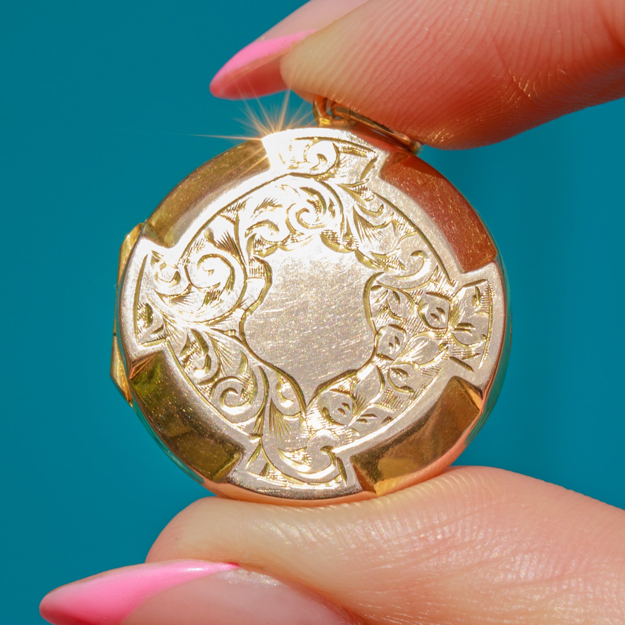 Antique 9ct Gold Engraved Round Locket, c.1900 Item added