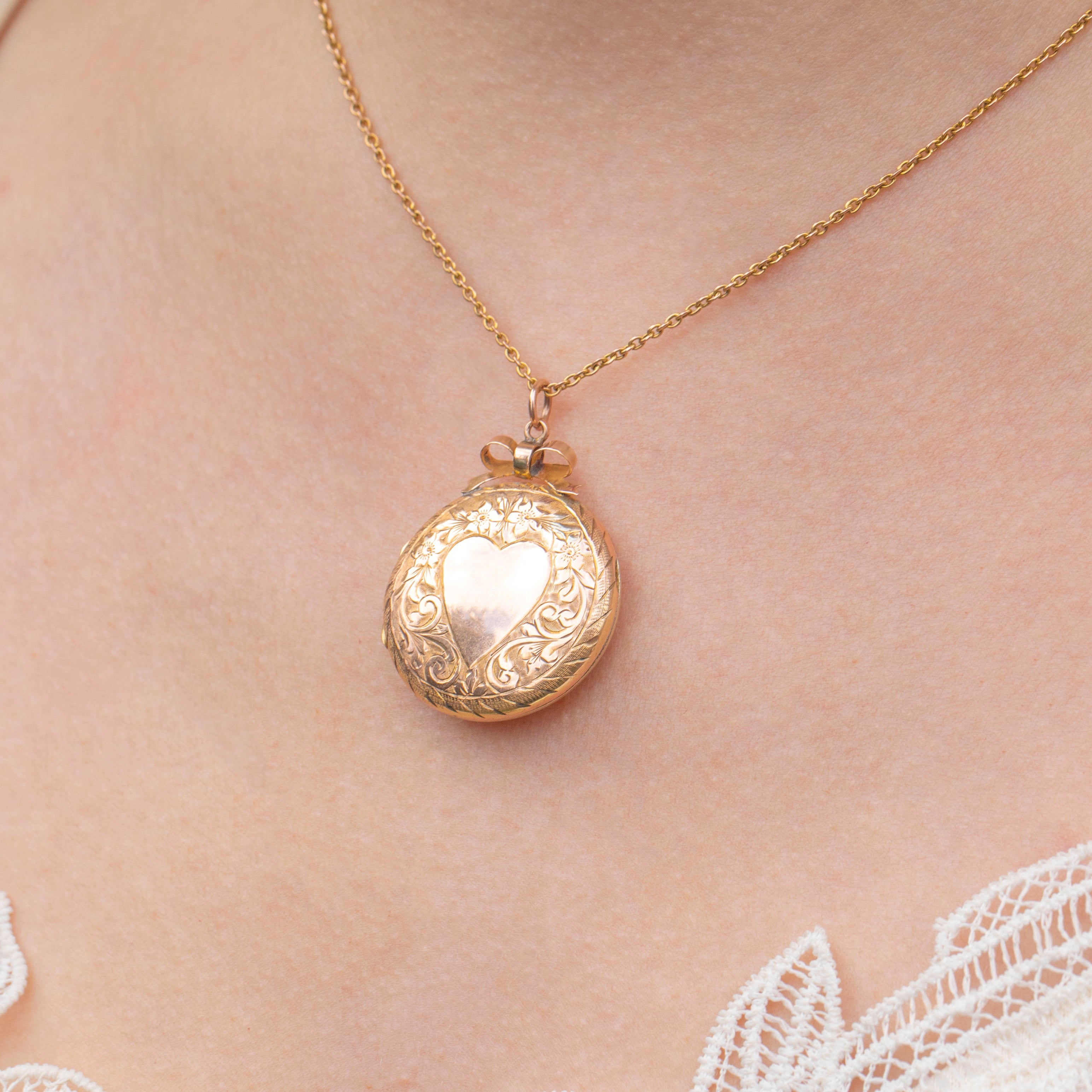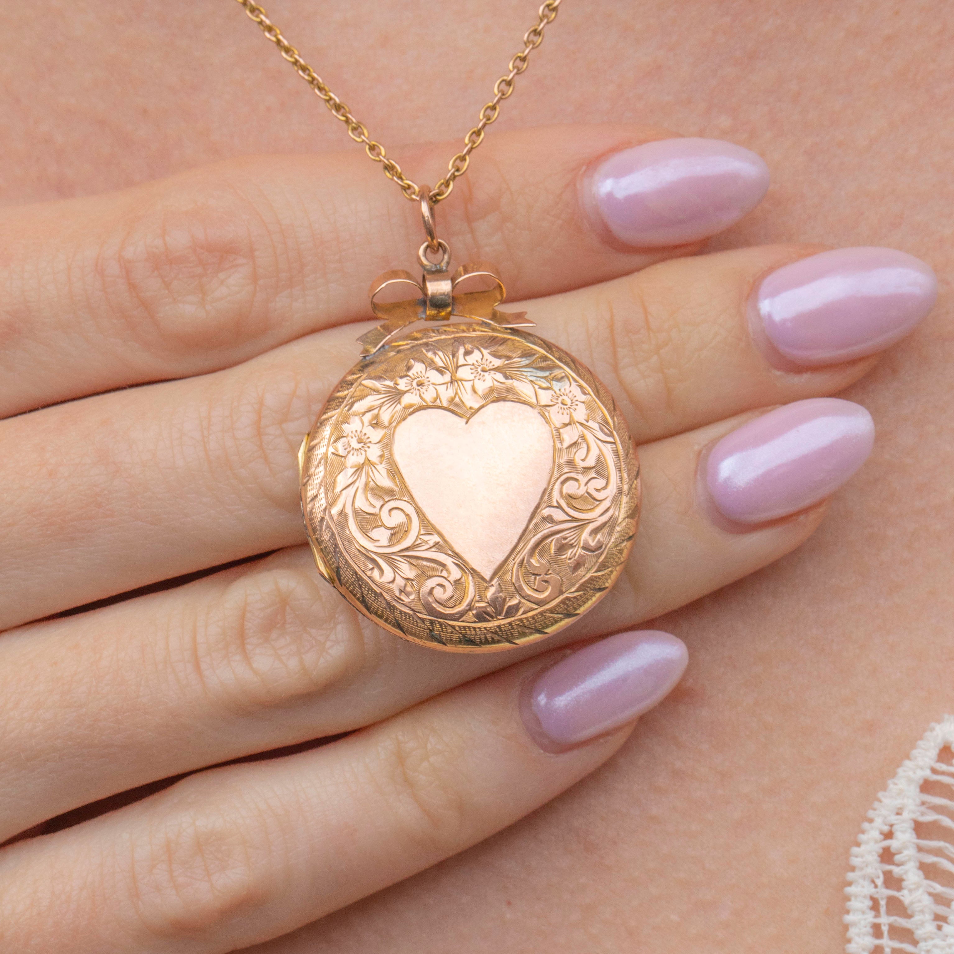 This striking antique 9ct Gold engraved round locket will make the most wonderful addition to your jewellery collection!
