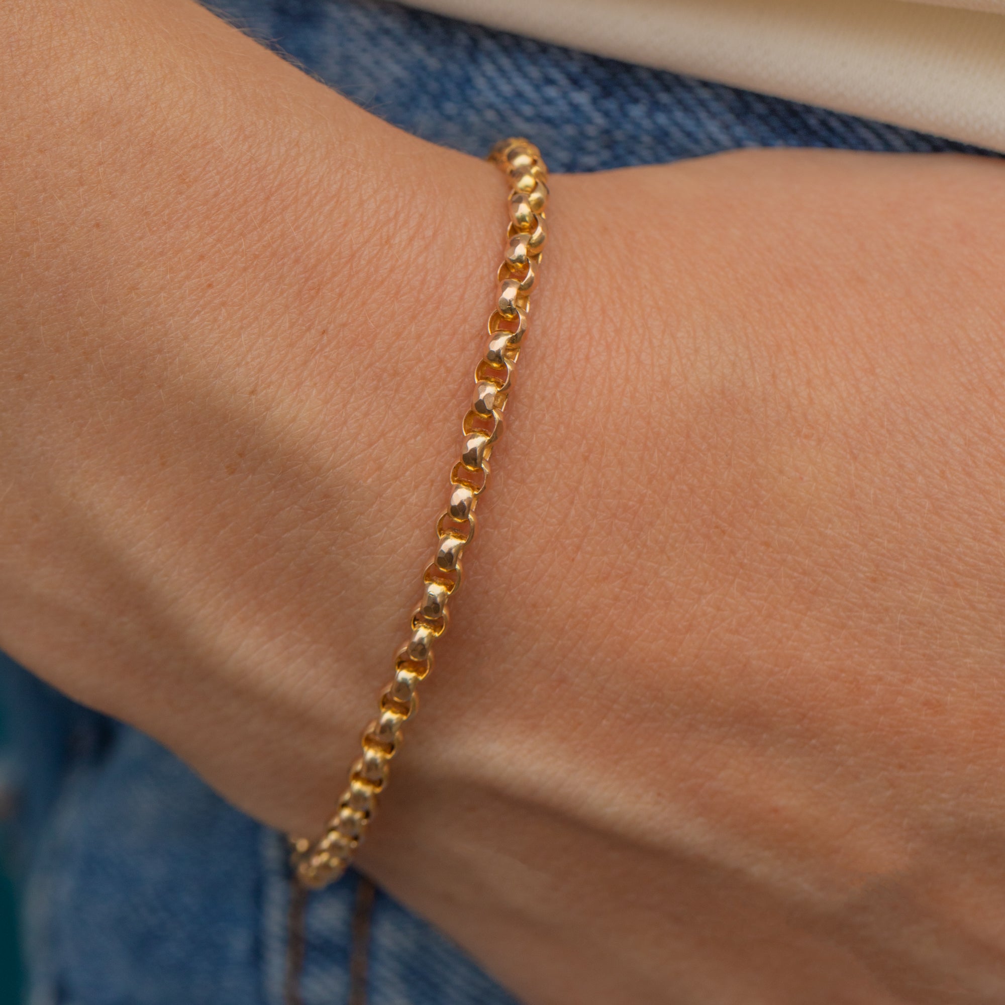 An easy-to-wear and versatile stacking piece, this antique 9ct Gold faceted belcher bracelet is perfect for everyday wear. Crafted from buttery plump links and secured by a bolt ring, this Victorian bracelet will instantly be your grab-and-go piece in the morning.