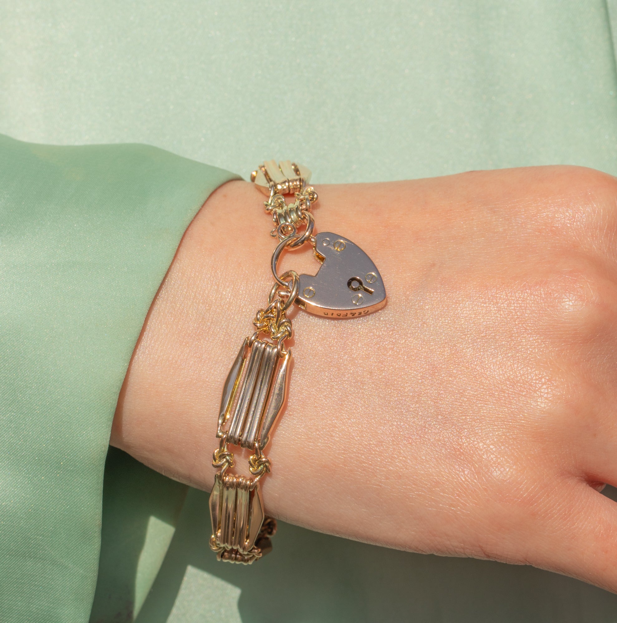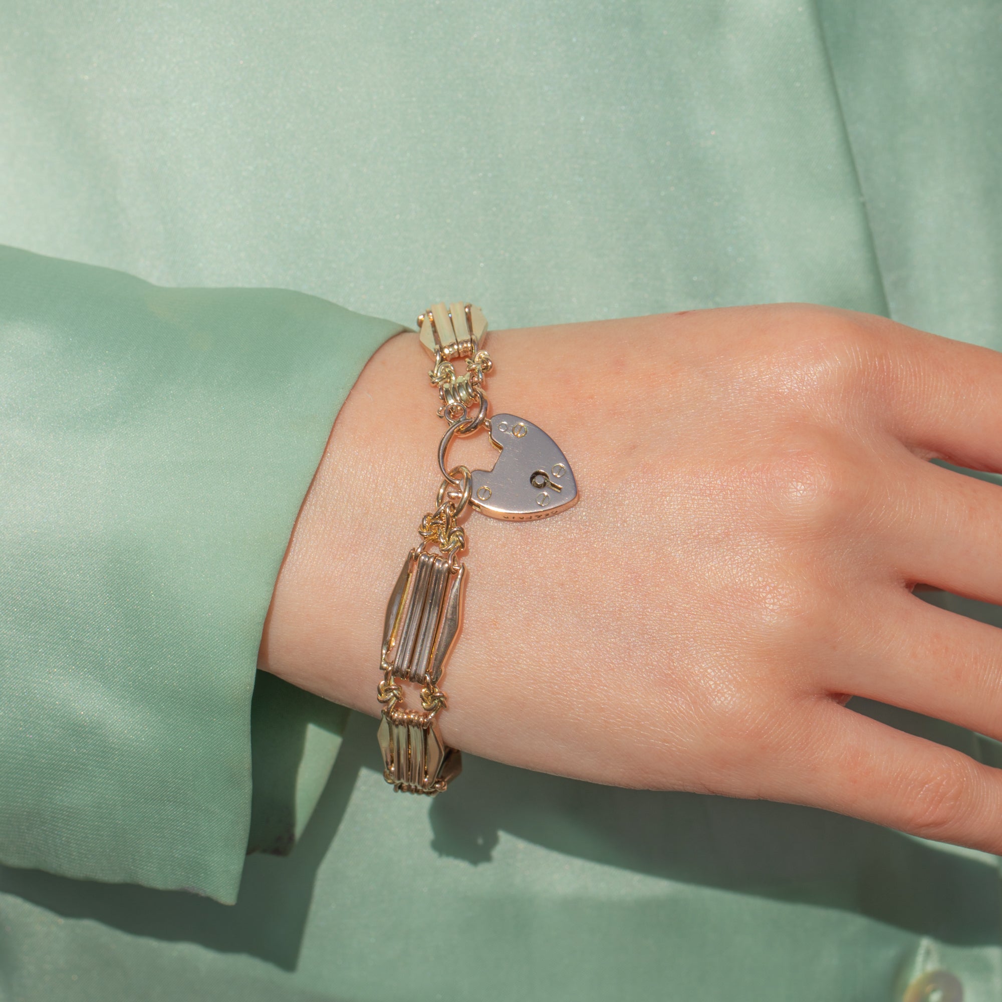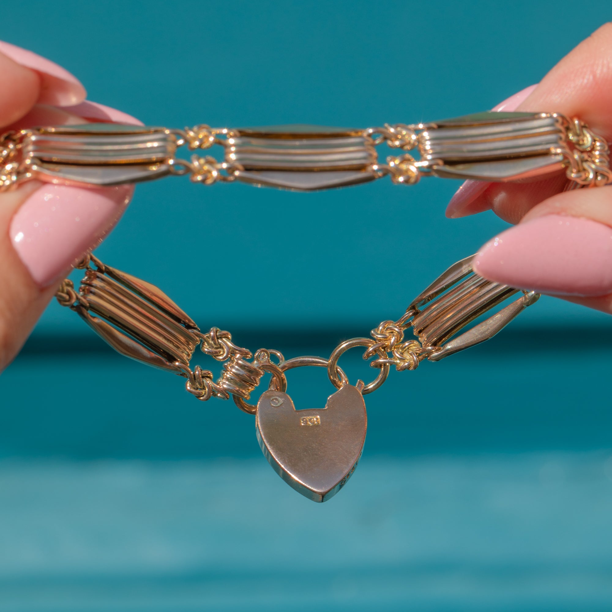 Antique 9ct Gold Fancy Gate Bracelet with Heart Padlock