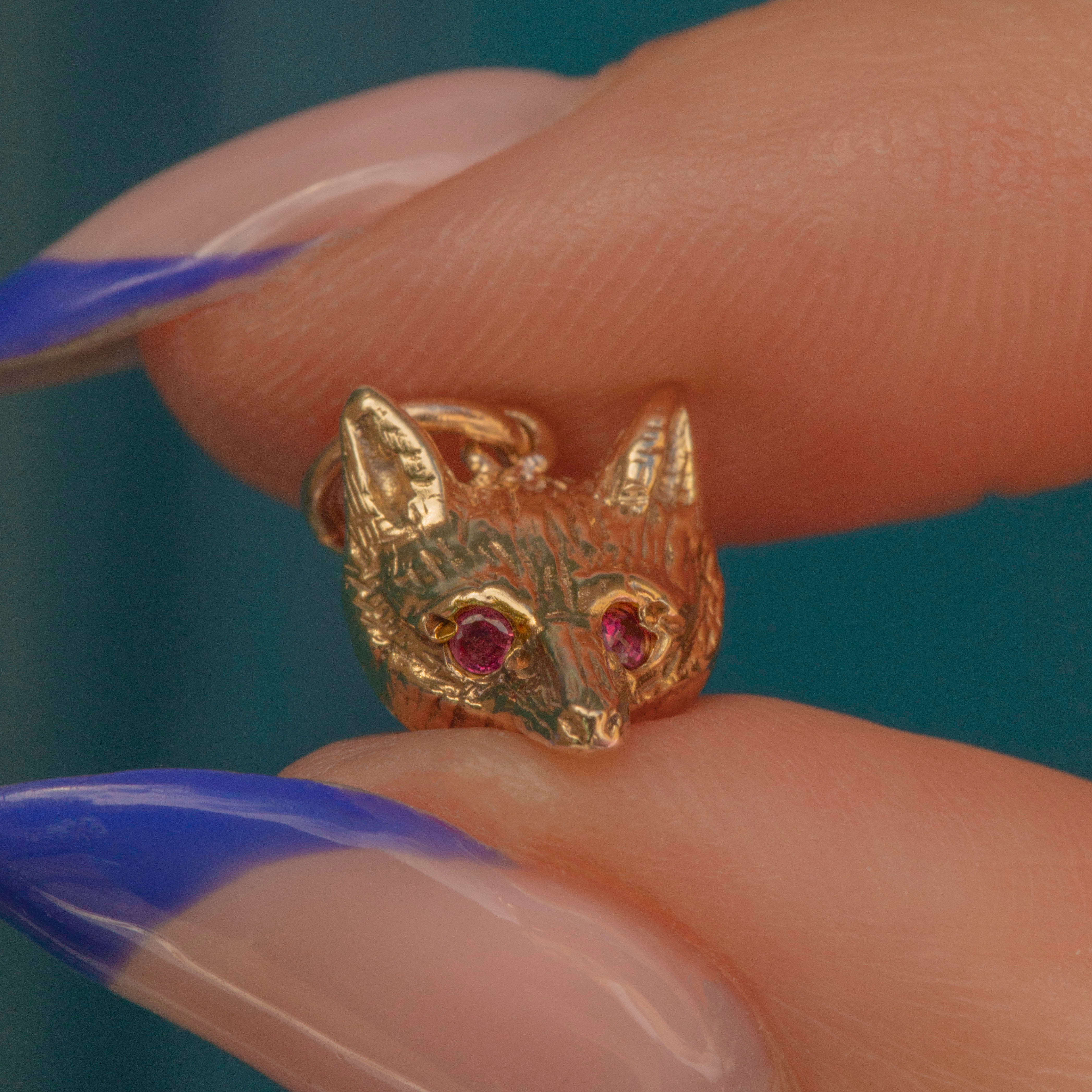 EXCELLENT. This antique 9ct Gold fox charm is in incredible condition! A truly unique piece, you certainly won't find this pendant anywhere else. The Fox is perfectly rendered and the Ruby eyes are chip-free and secure, so you can wear this lovely pendant with plenty of confidence throughout your day!