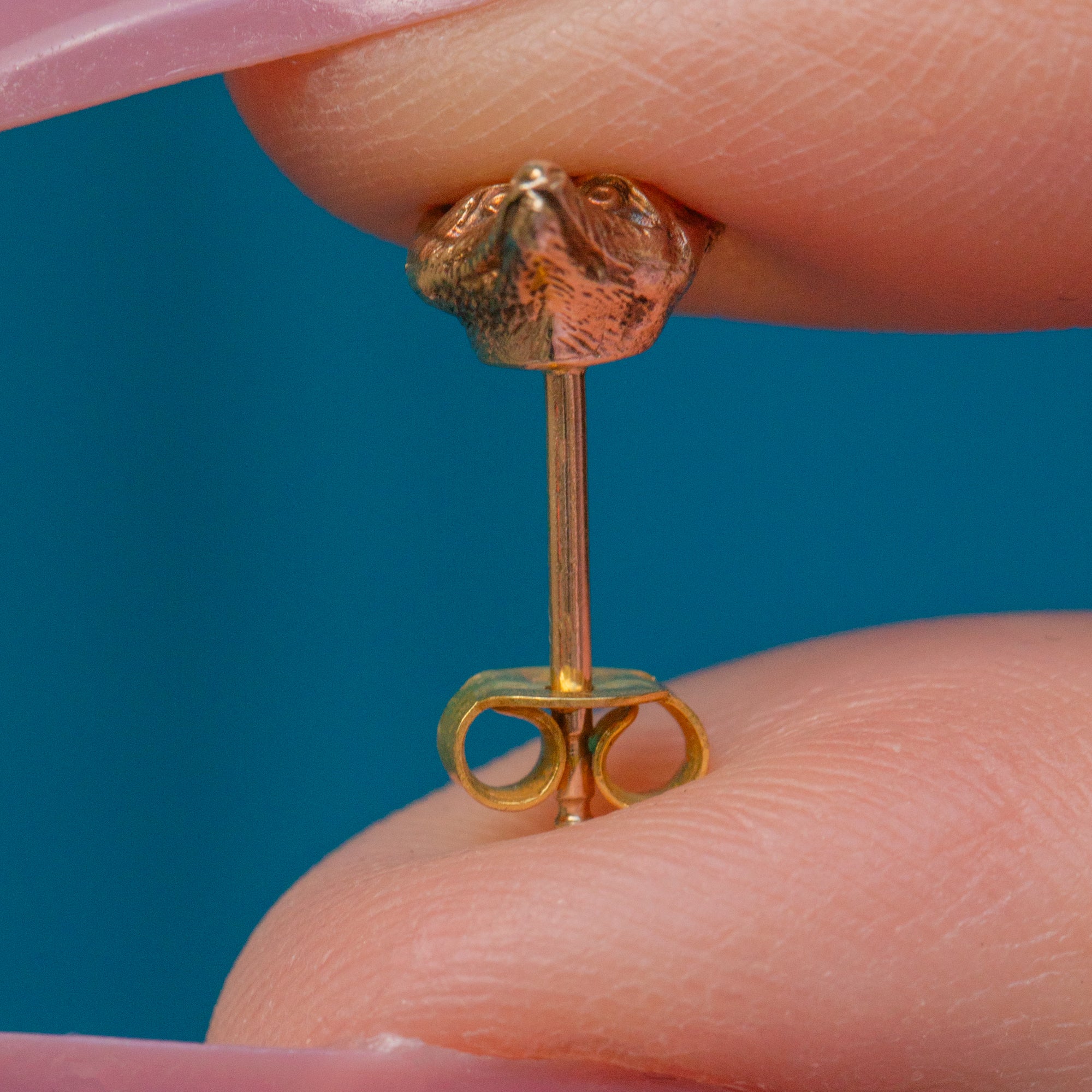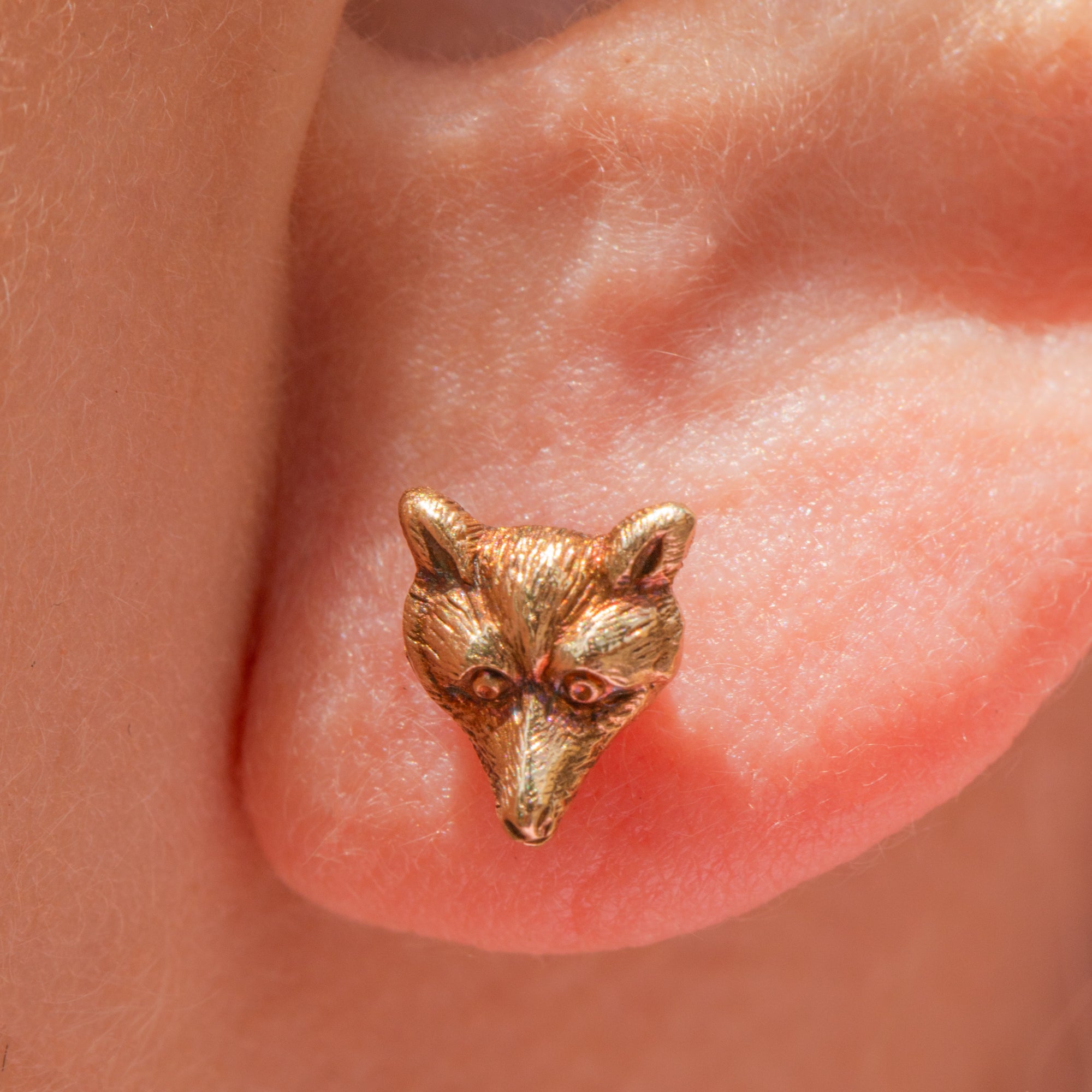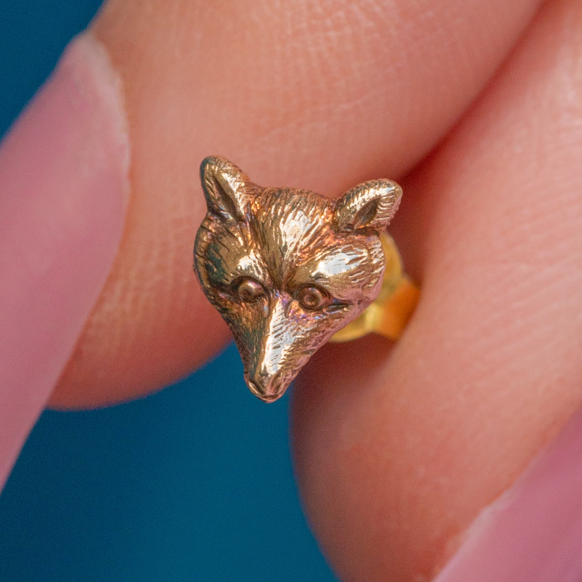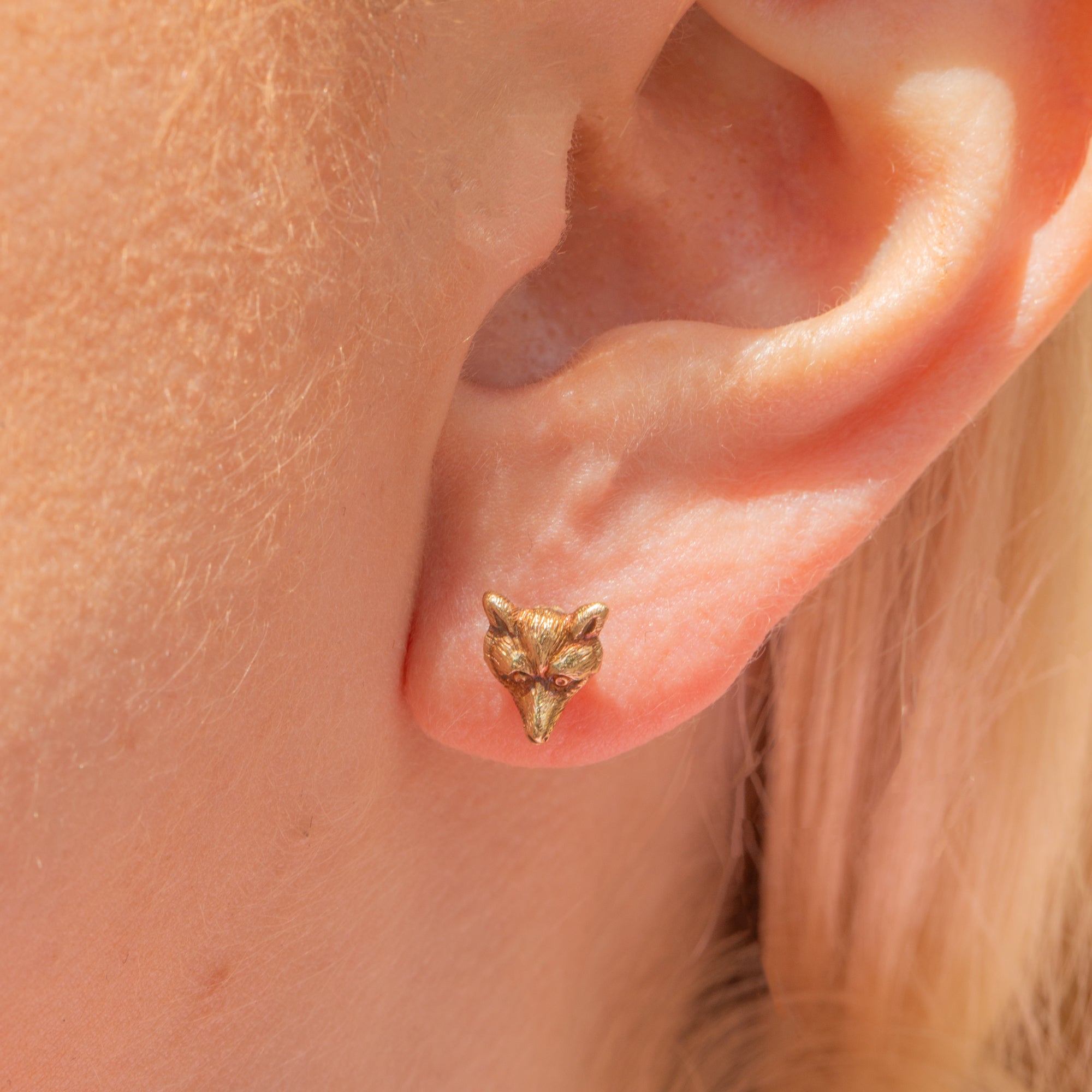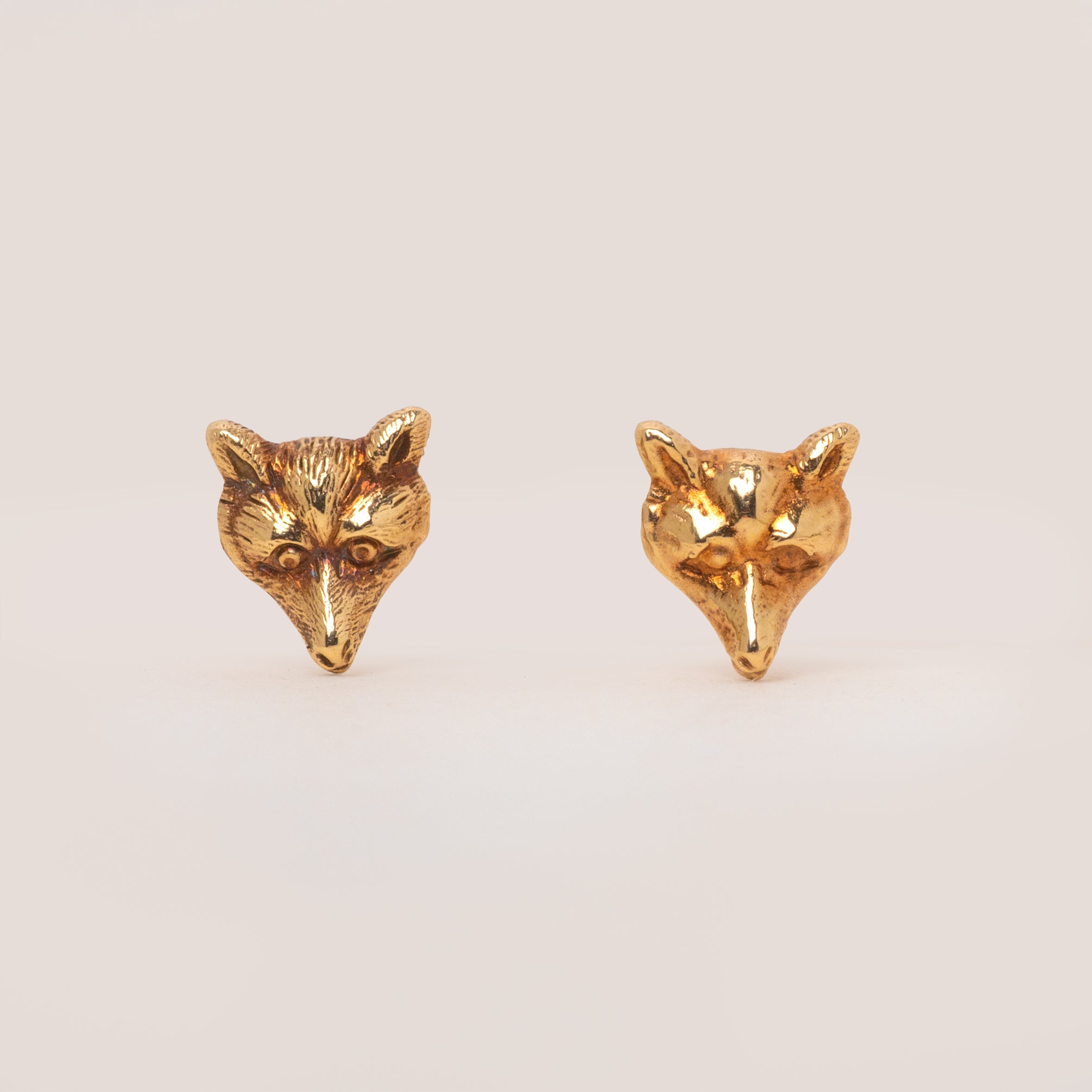 Nestle these antique 9ct Gold fox stud earrings into your lobes and enjoy their splendour forever more! Their dainty fox faces are bursting with character, inlaid with soft, hair engravings from their pricked ears right down to the tip of their nose.