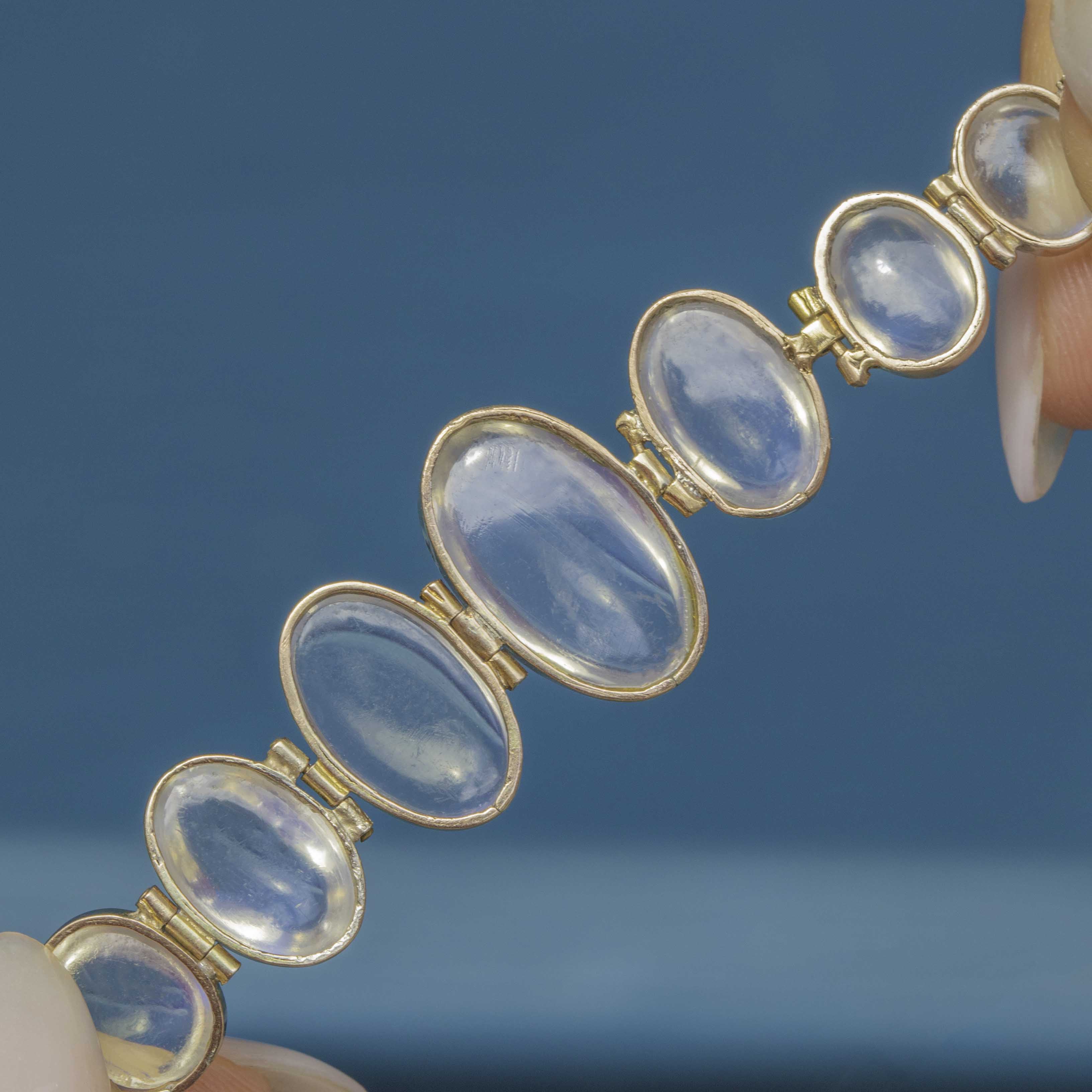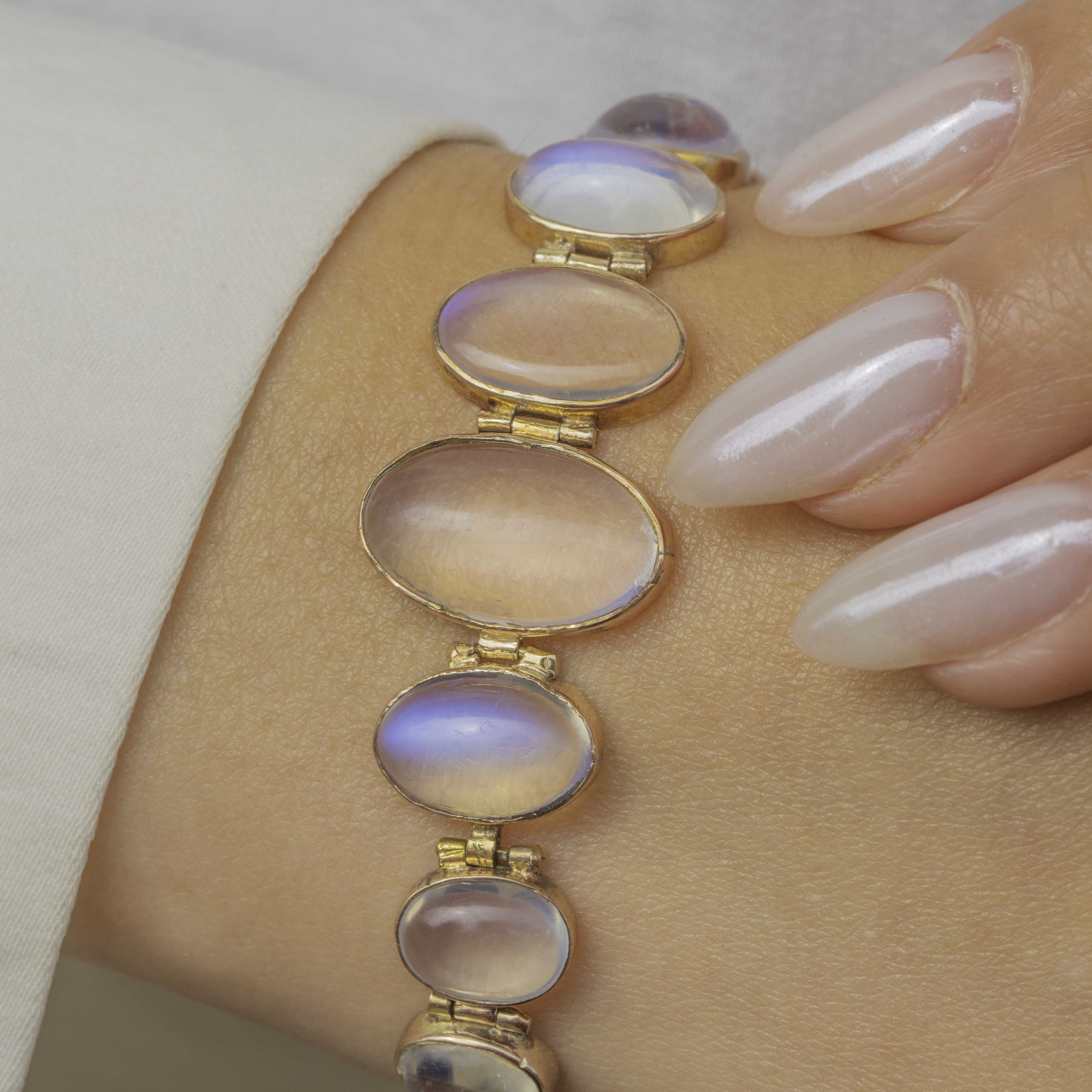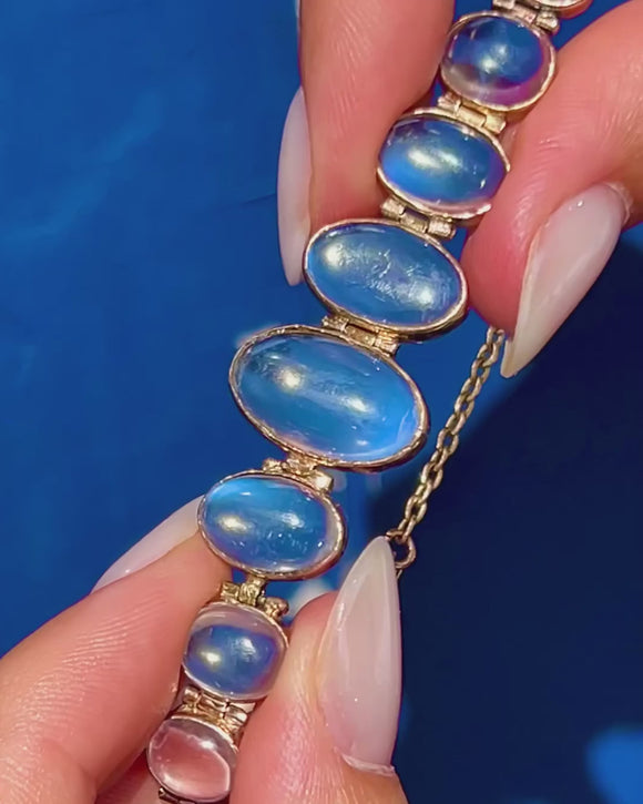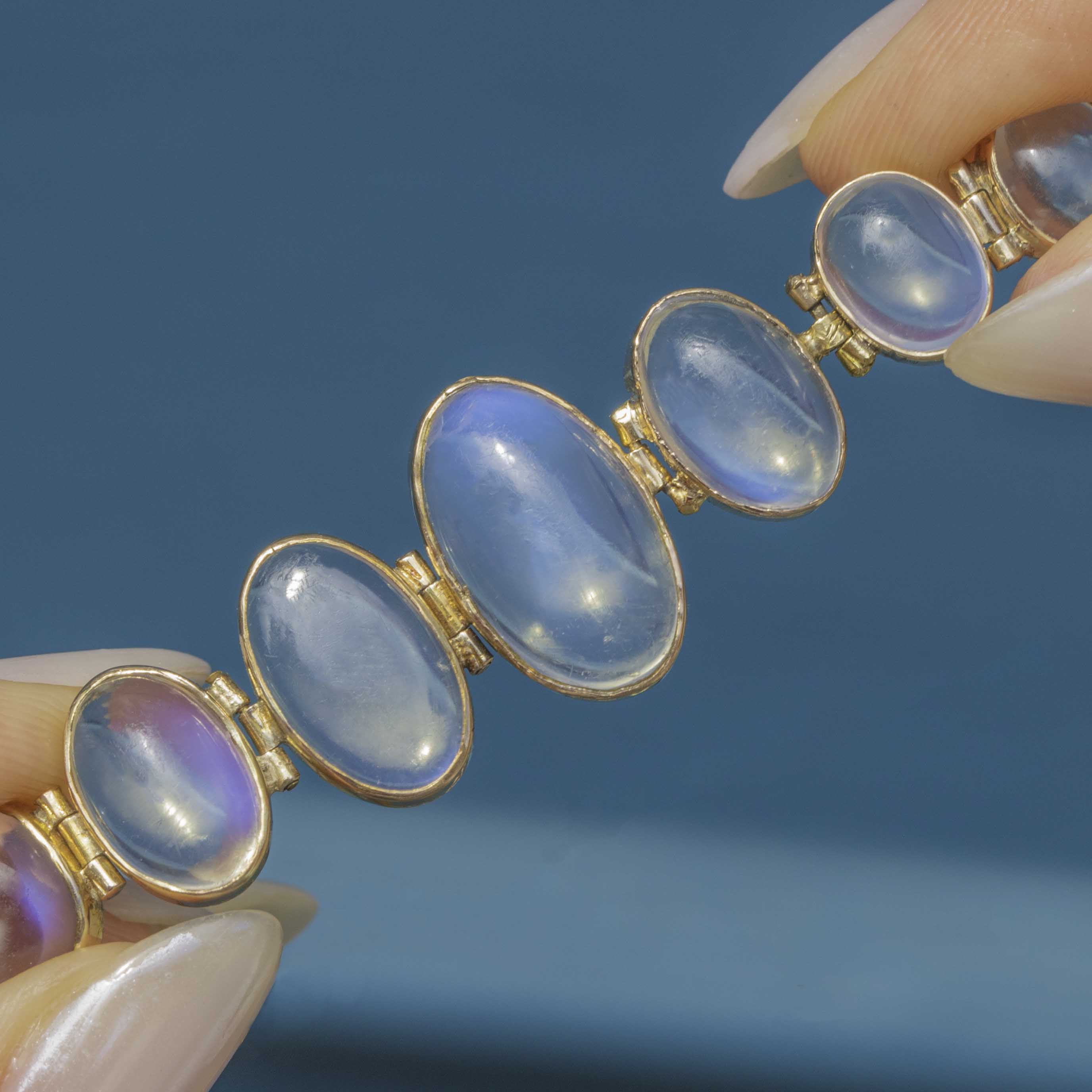 Antique 9ct Gold Graduating Ceylon Moonstone Bracelet 8.45ct