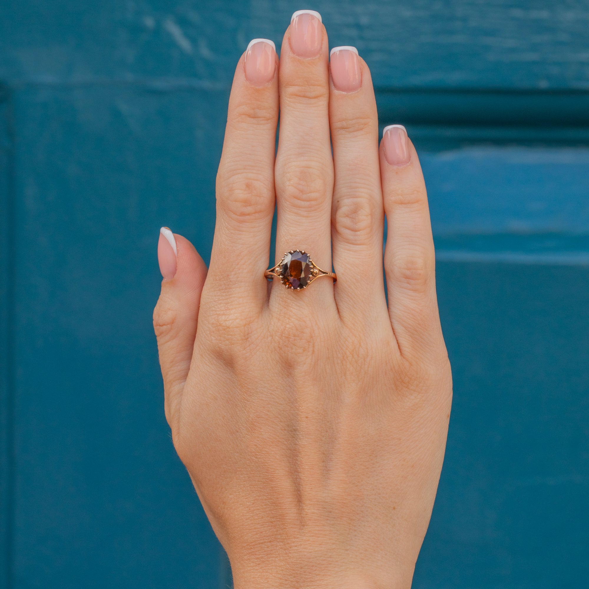 How divine is this antique 9ct Gold Madeira Citrine ring! Her soft rectangular Madeira Citrine is infused with rich toffee and mocha hues, embraced by delicate claw settings that sit crown like upon your hand.