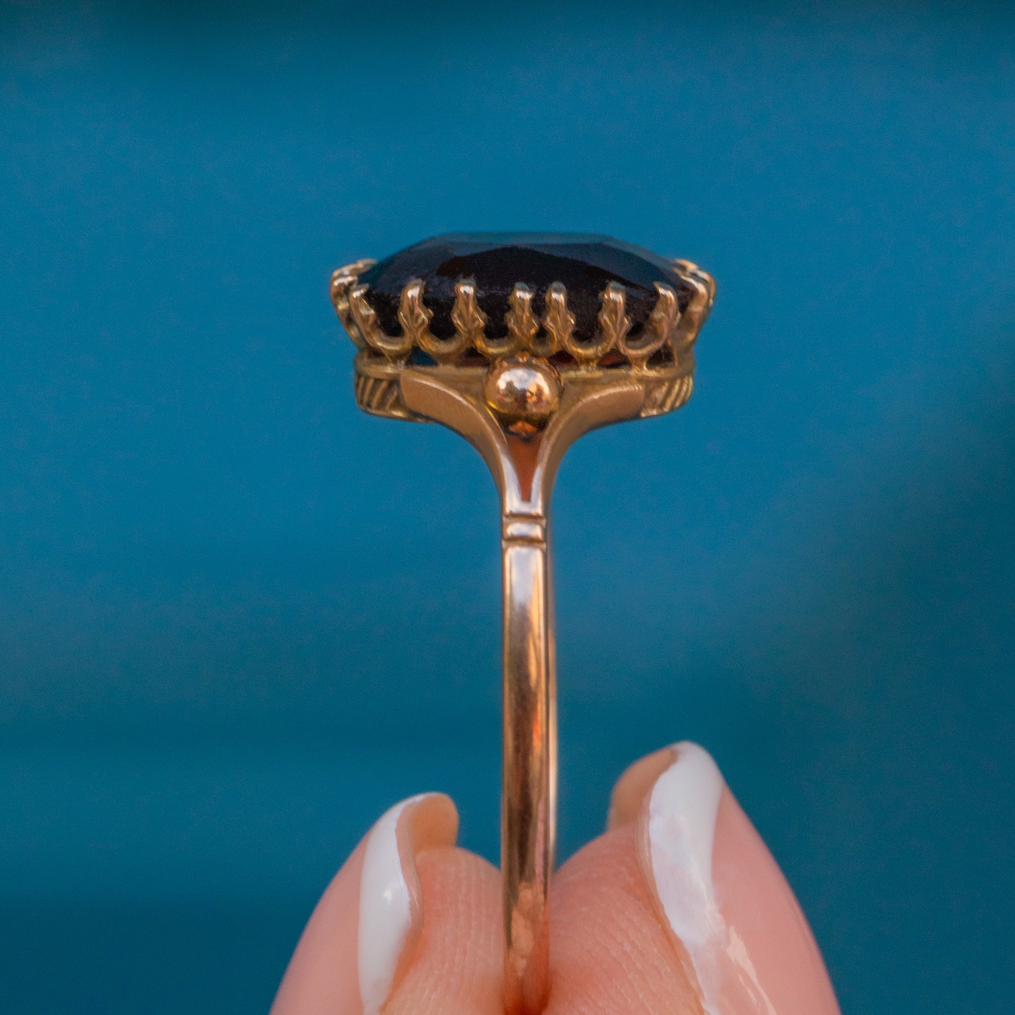 EXCELLENT. We are pleased to present this antique 9ct Gold Madeira Citrine ring in excellent condition. Her fabulously faceted form is undamaged and sits secure within the claws setting. The Gold has a rich saturation with the details crisp. With a well shaped ring band, you can wear this Victorian Gold ring in the utmost comfort!