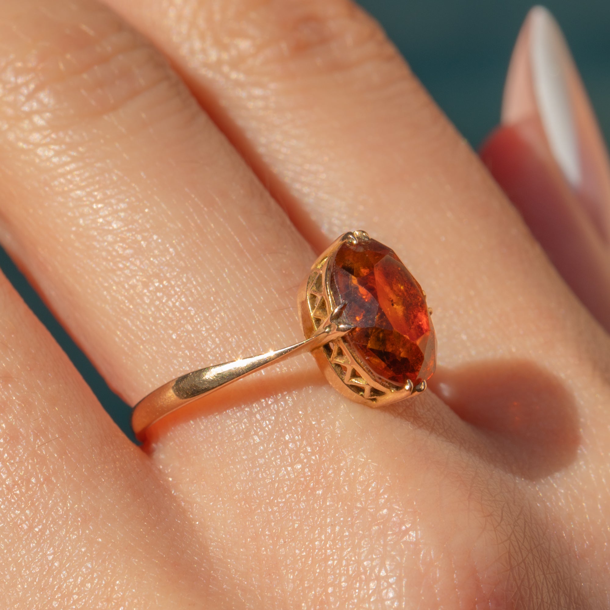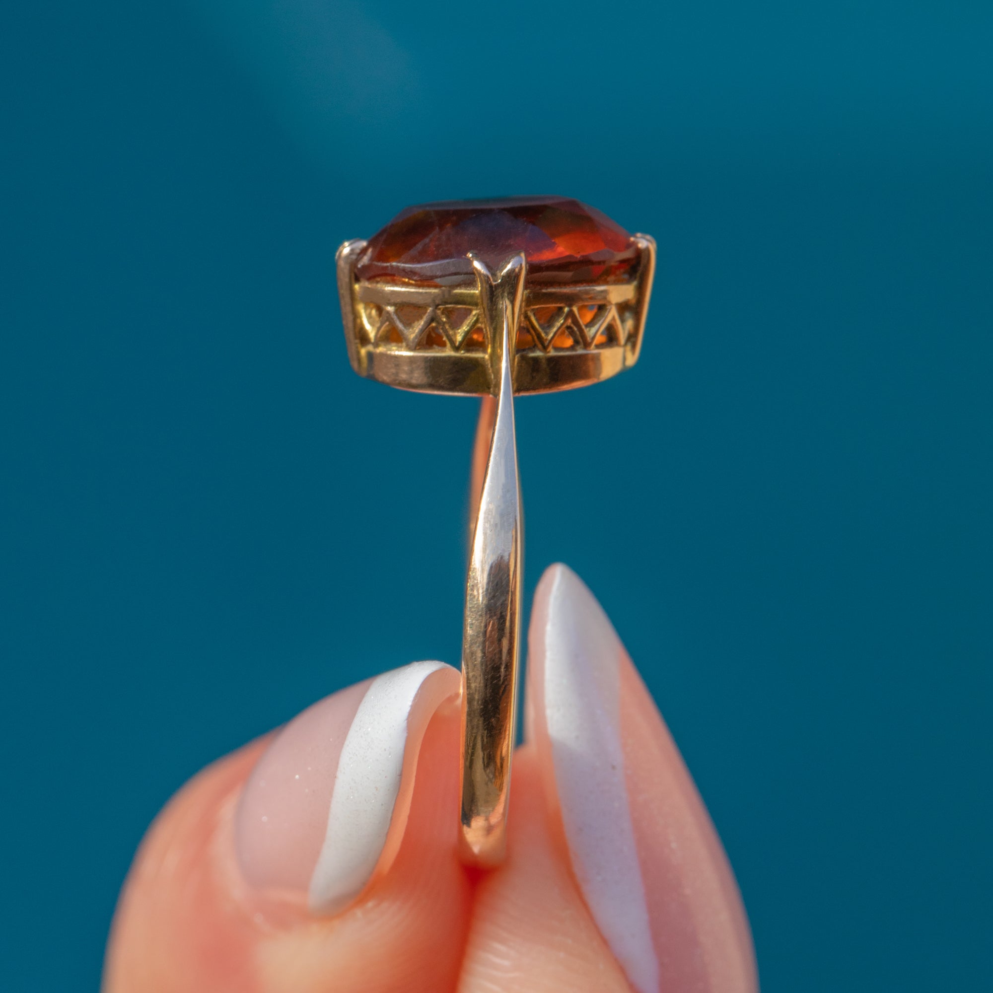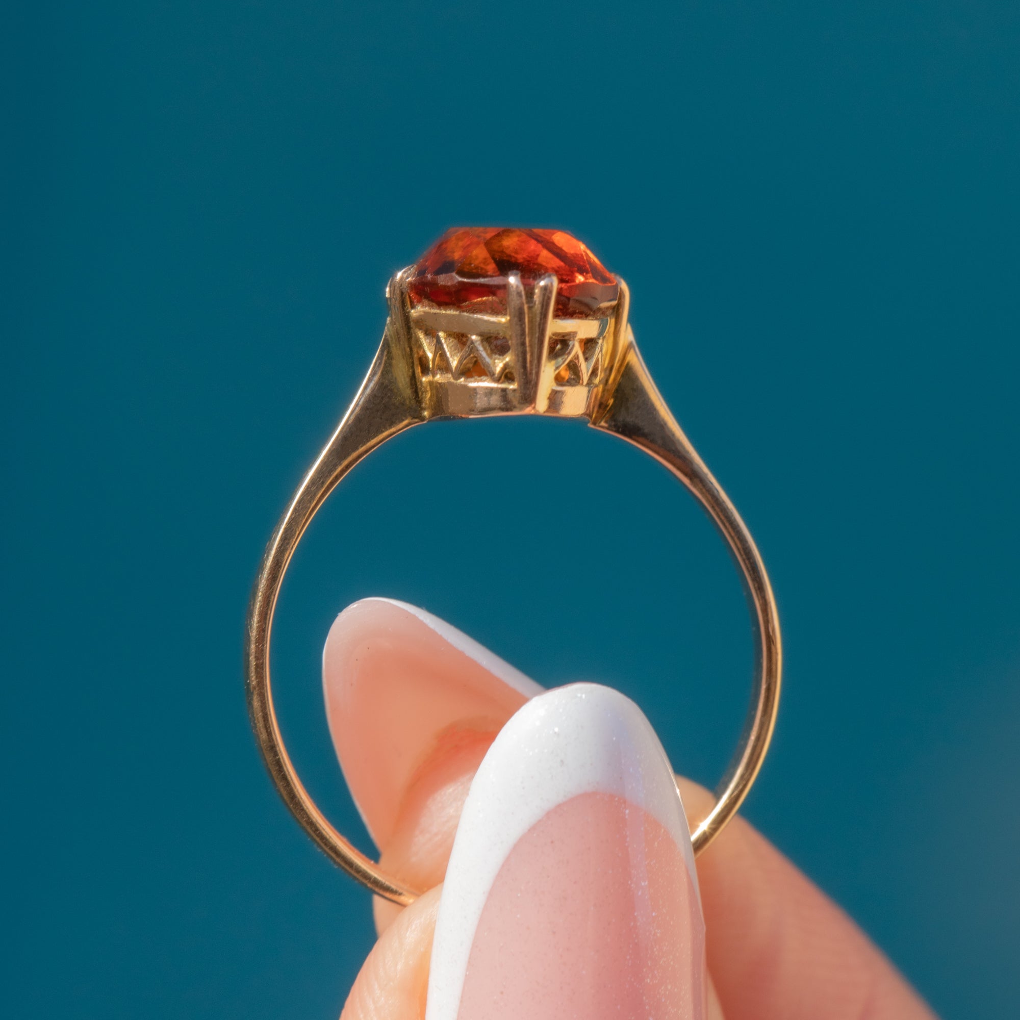 This heavenly antique 9ct Gold Madeira Citrine solitaire ring will make a fine addition to your jewellery collection! Her 3.10ct Citrine possesses tangy marmalade hues twinkling between her hand-cut facets, providing a pop of colour to your ring stack.