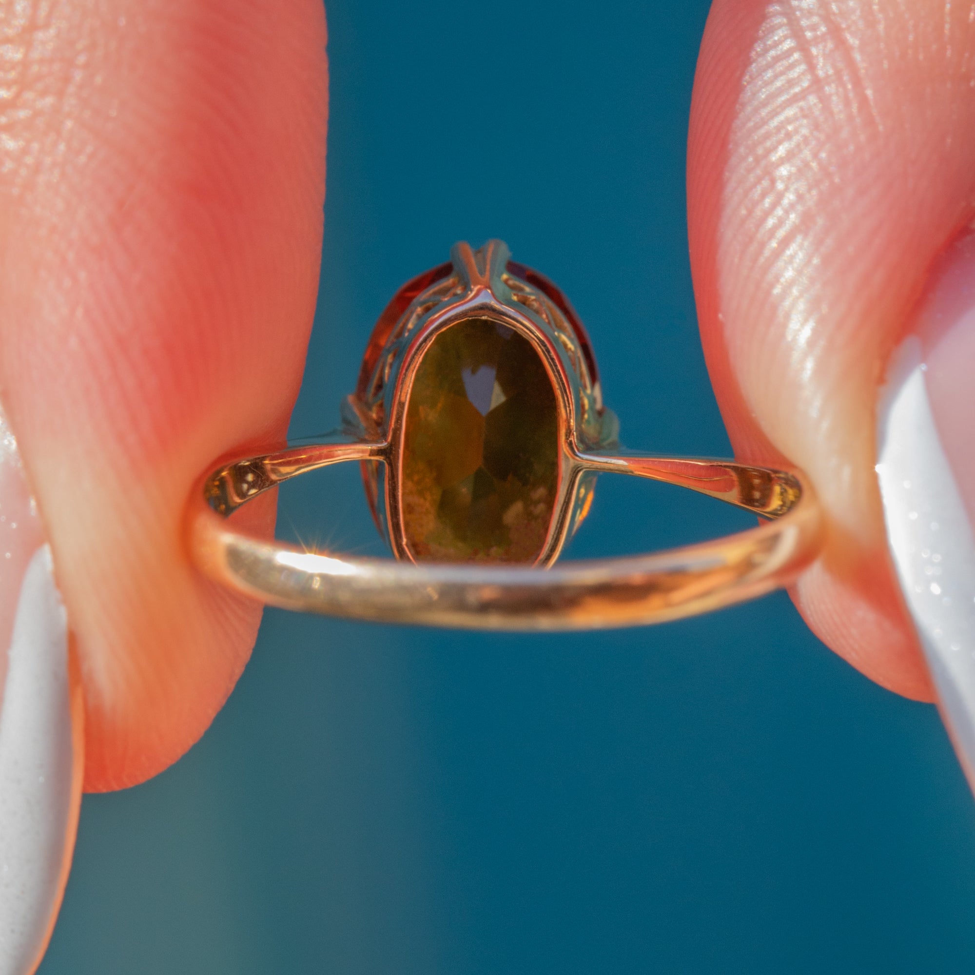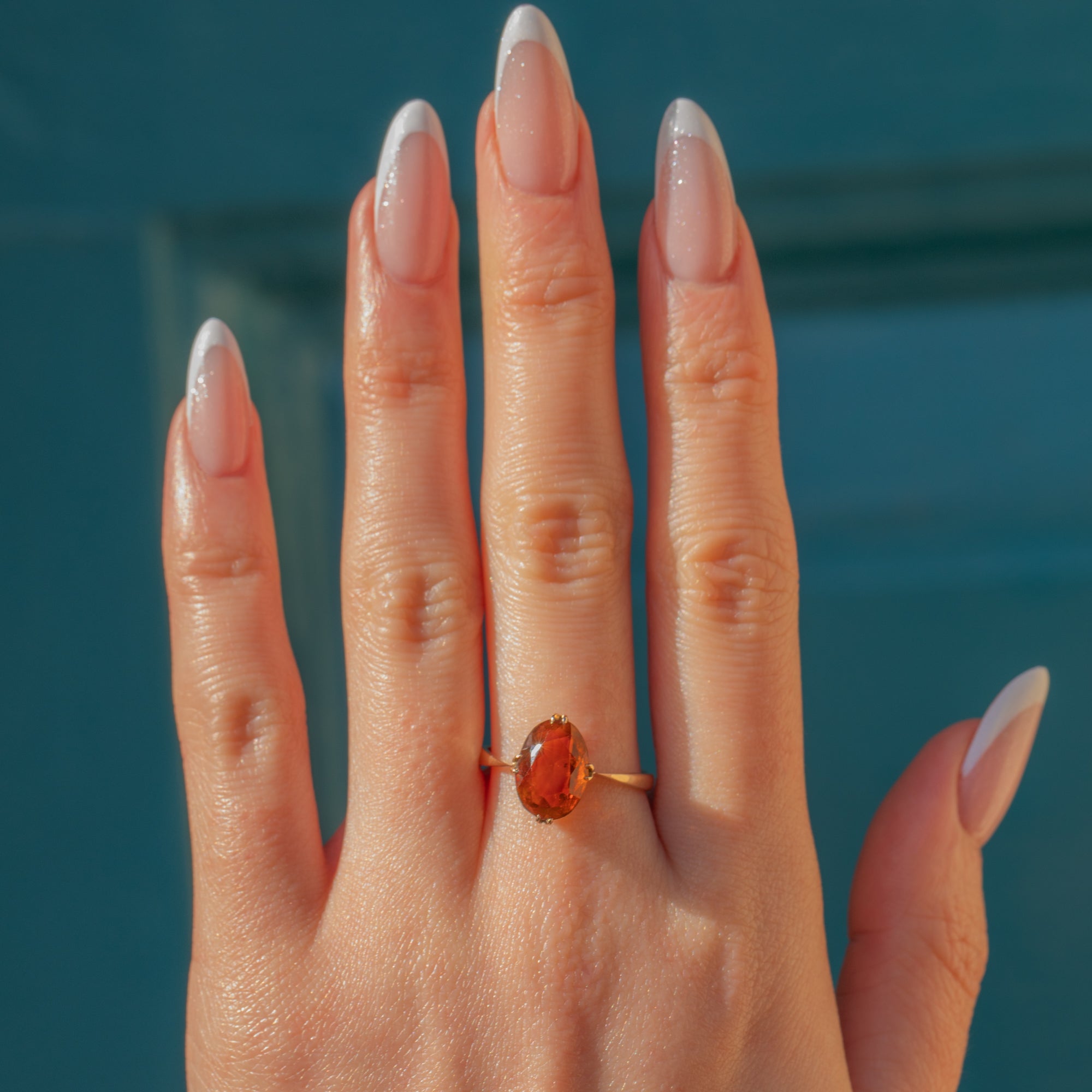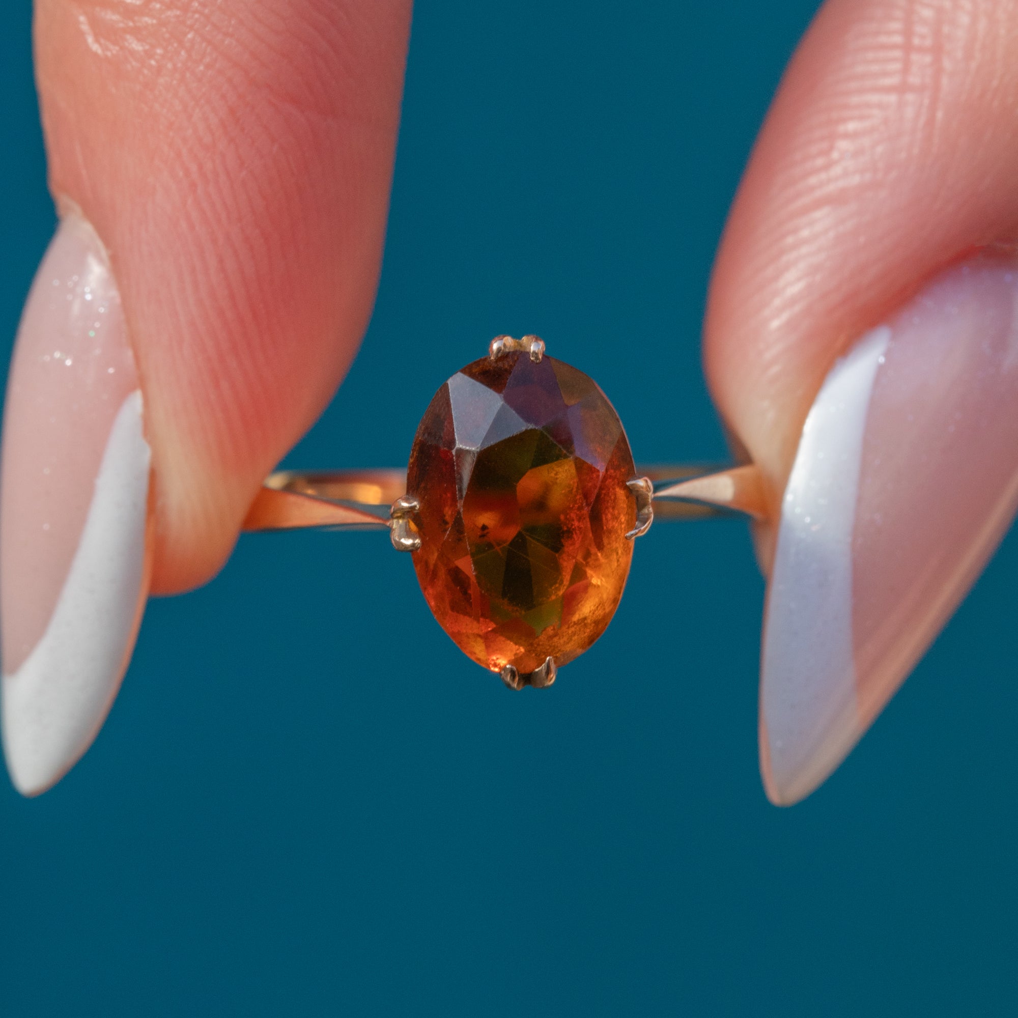 This heavenly antique 9ct Gold Madeira Citrine solitaire ring will make a fine addition to your jewellery collection! Her 3.10ct Citrine possesses tangy marmalade hues twinkling between her hand-cut facets, providing a pop of colour to your ring stack.