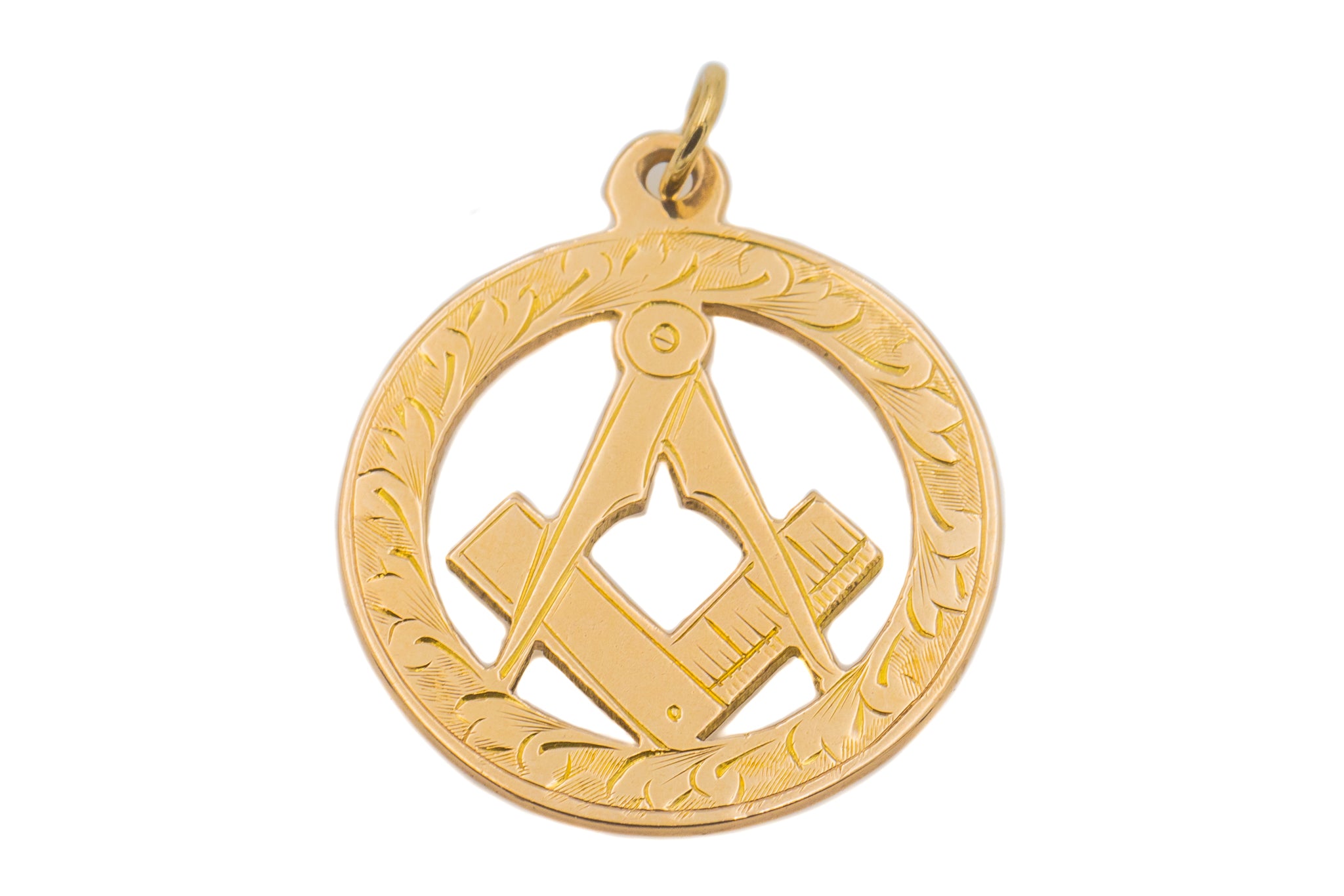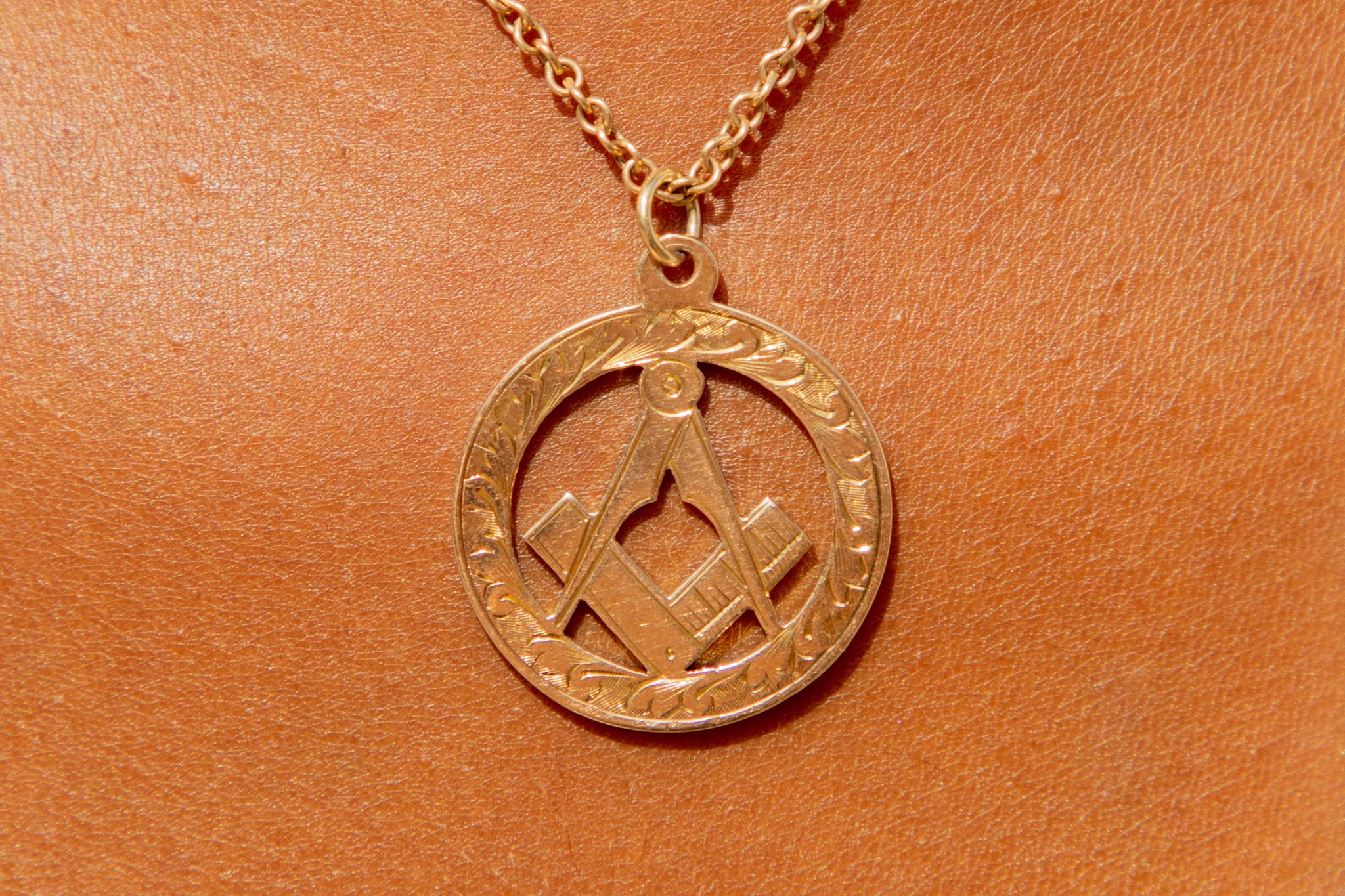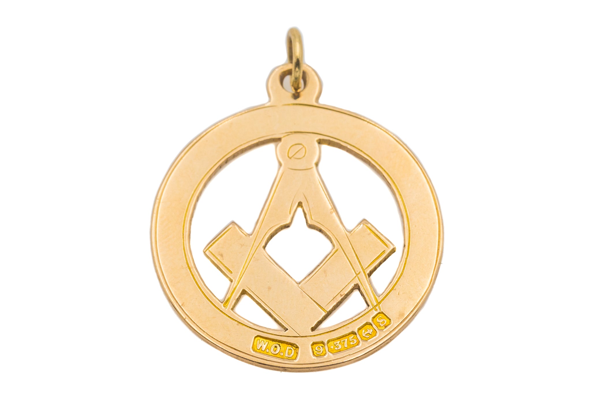 VERY GOOD. This antique 9ct Gold masonic compass pendant is in very good condition. The hallmarks are crisp and the front of the piece has been beautifully engraved. There is very minimal wear to the piece overall, and she can be worn with a Gold chain with ease!