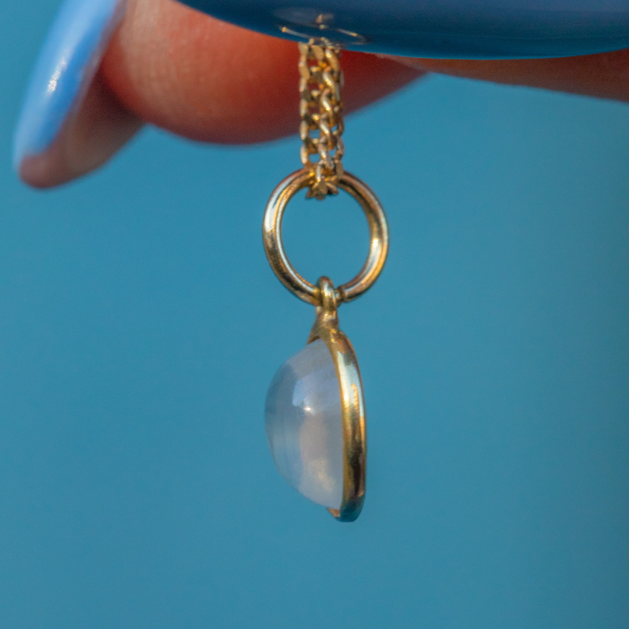 It can't be denied that the otherworldly allure of Moonstones is just irresistible, and with this Moonstone charm being encased in glossy 9ct Gold, her splendour is unmatched. The soothing properties of Moonstone make her the perfect charm for daily wear, allowing you to feel the effects of her calming aura.