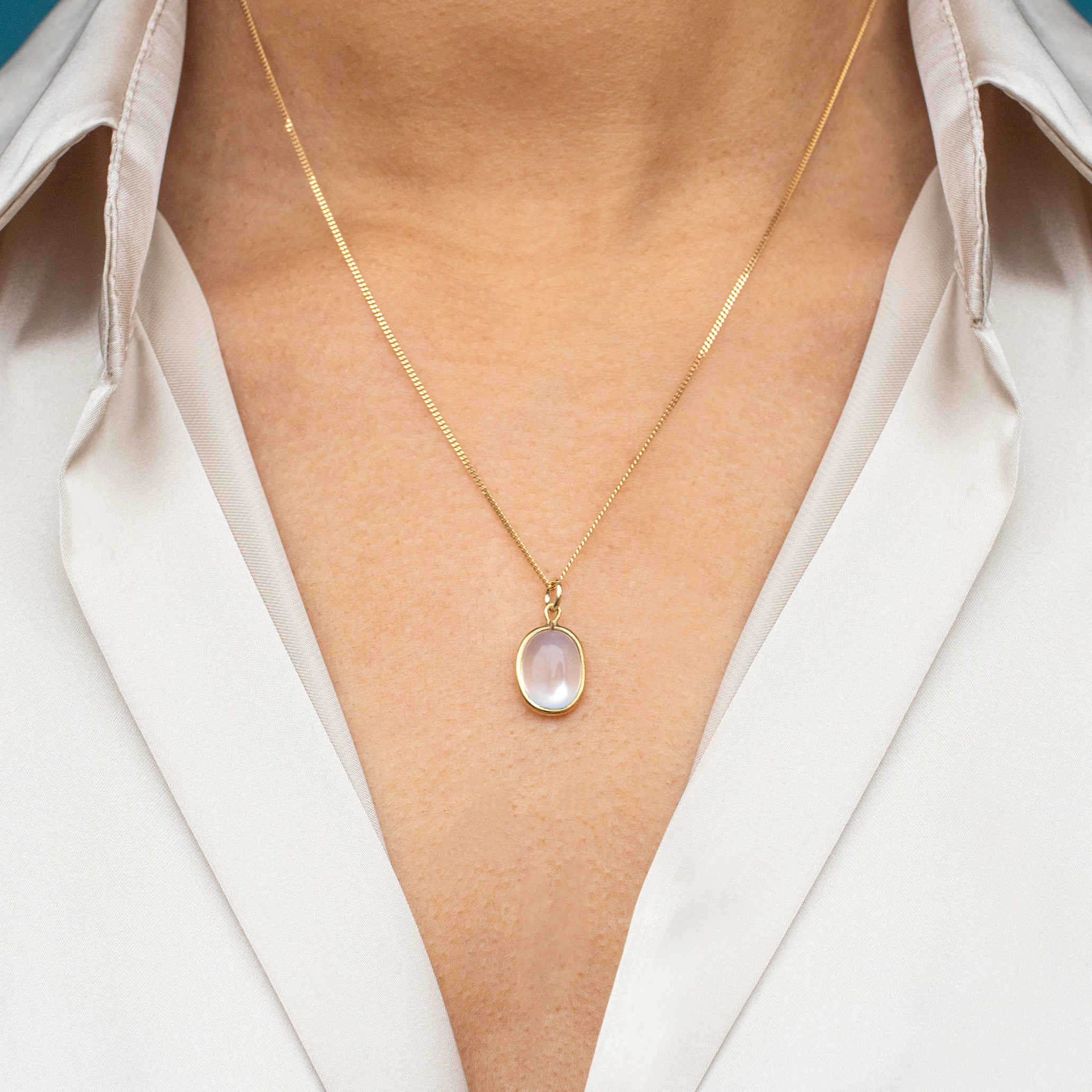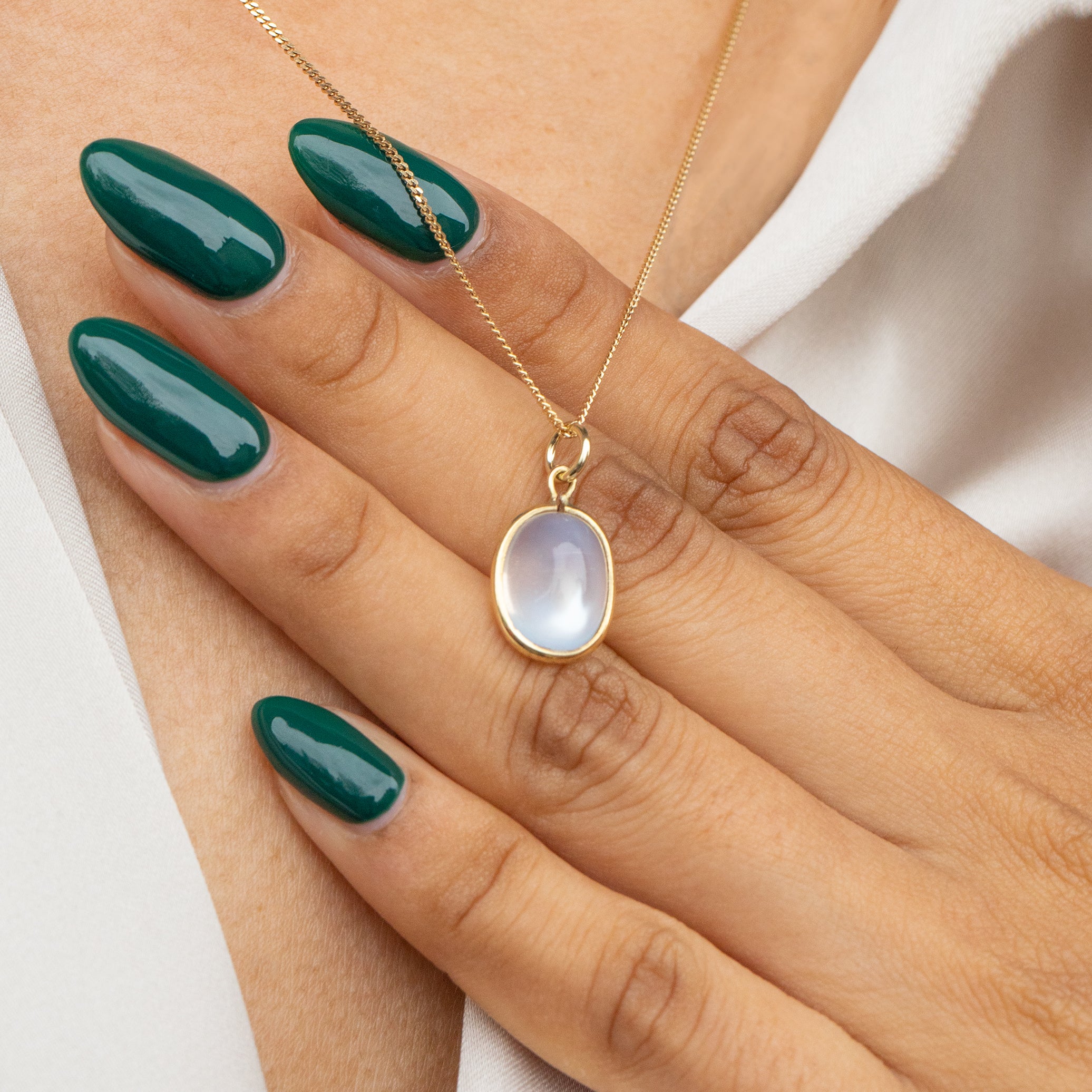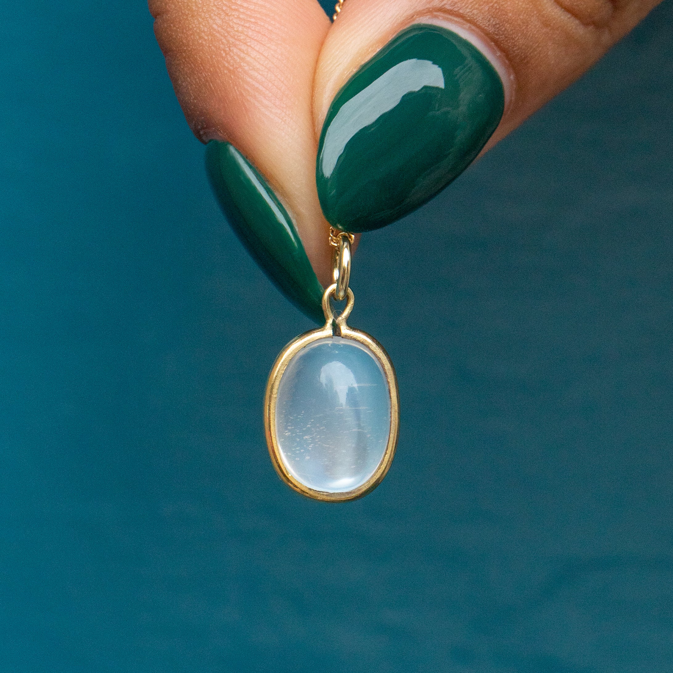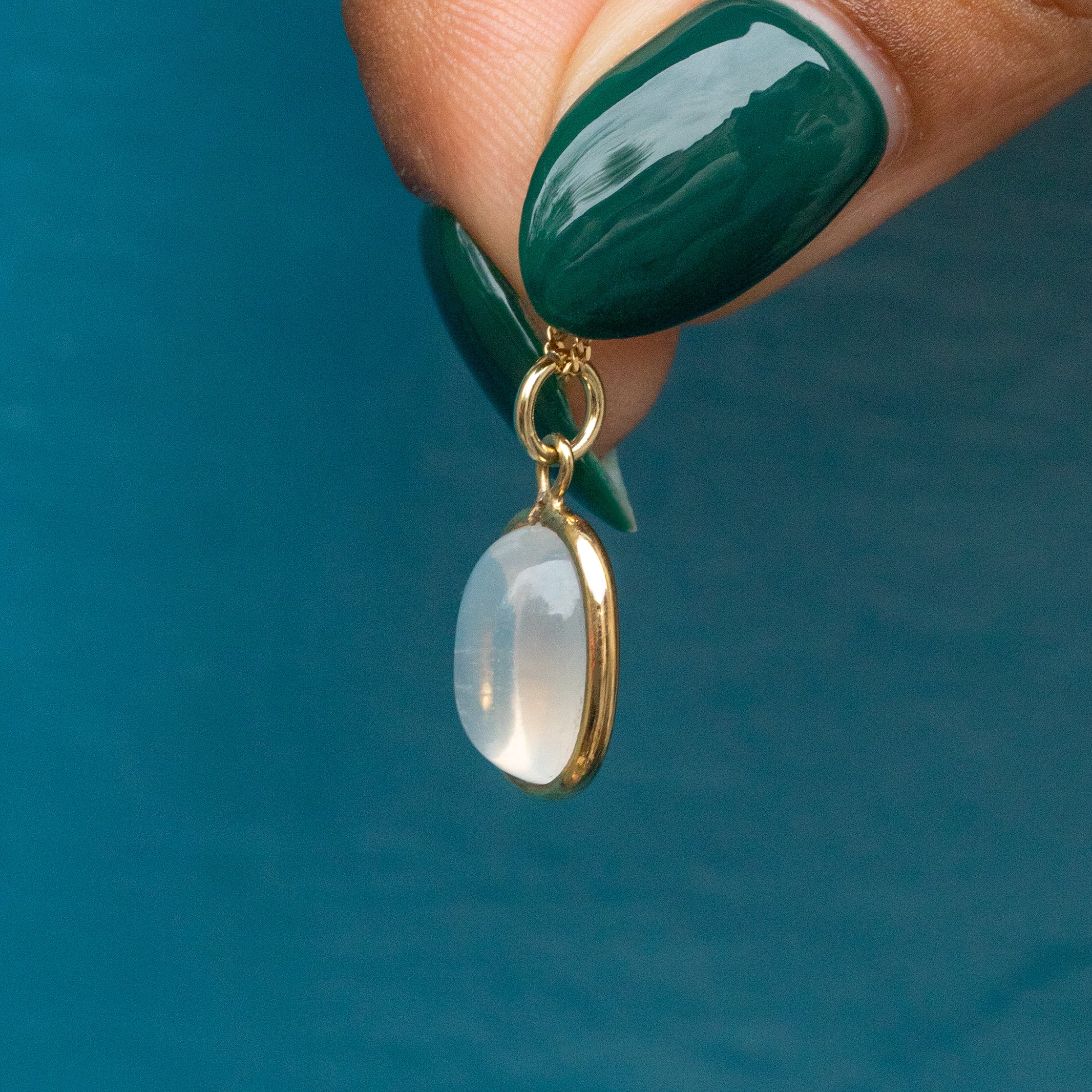 Her 4.00ct Moonstone is encased in a glossy 9ct Gold bezel setting, with a tapered hasp to match! If you are looking for something dainty but with immense splendour, look no further than this Gold Moonstone charm; she will not disappoint!
