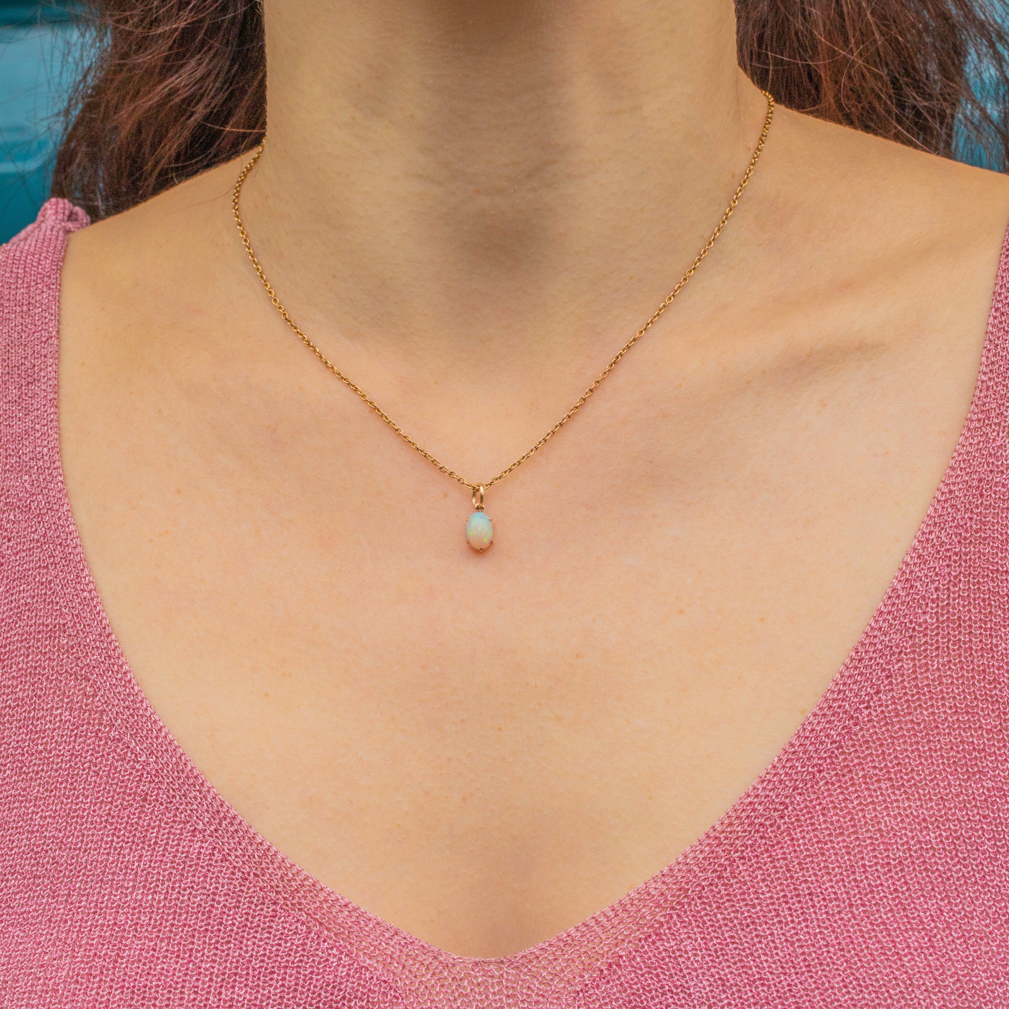 Antique 9ct Gold Opal Blue Oval Cabochon Charm, 0.70ct