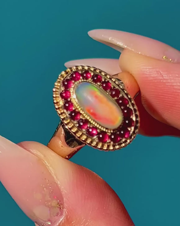 Antique 9ct Gold Opal & Pink Paste Oval Cluster Ring