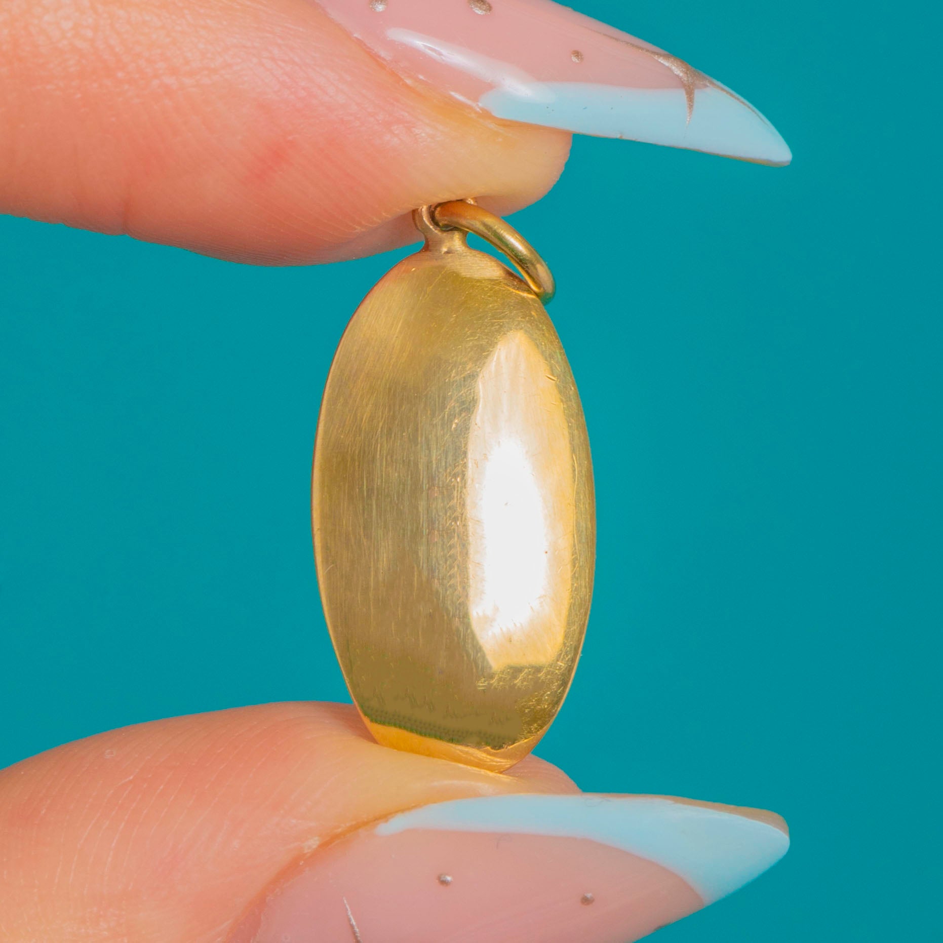 Understated Victorian elegance in warm 9ct Gold, this petite elongated oval pendant is softly domed with a smooth, high-polish finish and rounded edges. Unadorned and refined, its integrated hasp and round jump ring create a seamless, minimalist silhouette that lets the Gold’s glow take centre stage.
