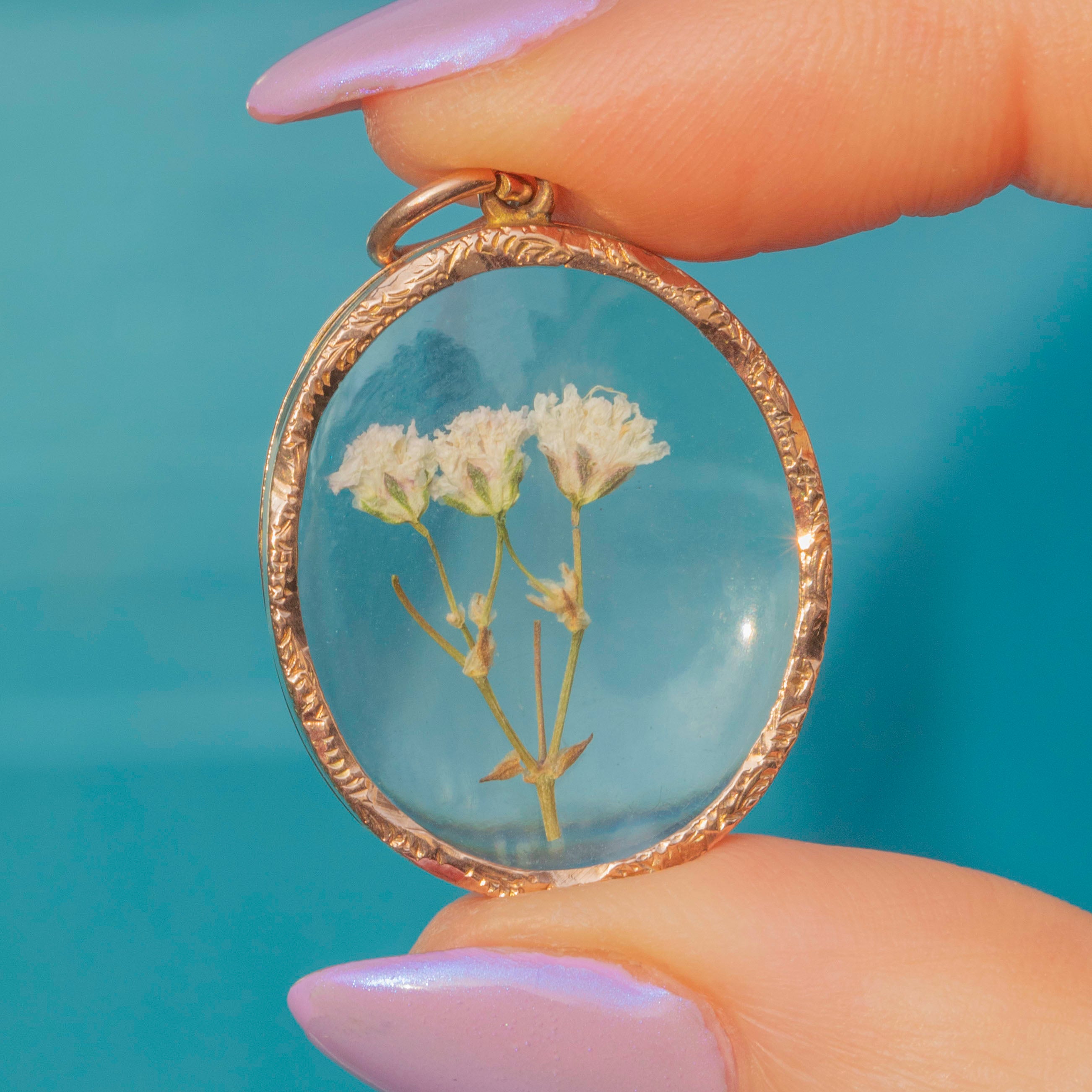 A small sprig of white blooms are encased within the glass panels adding a feminine finishing touch. The contents can easily be added to or replaced, providing you with endless styling possibilities and making this Edwardian locket a wonderful sentimental gift choice!