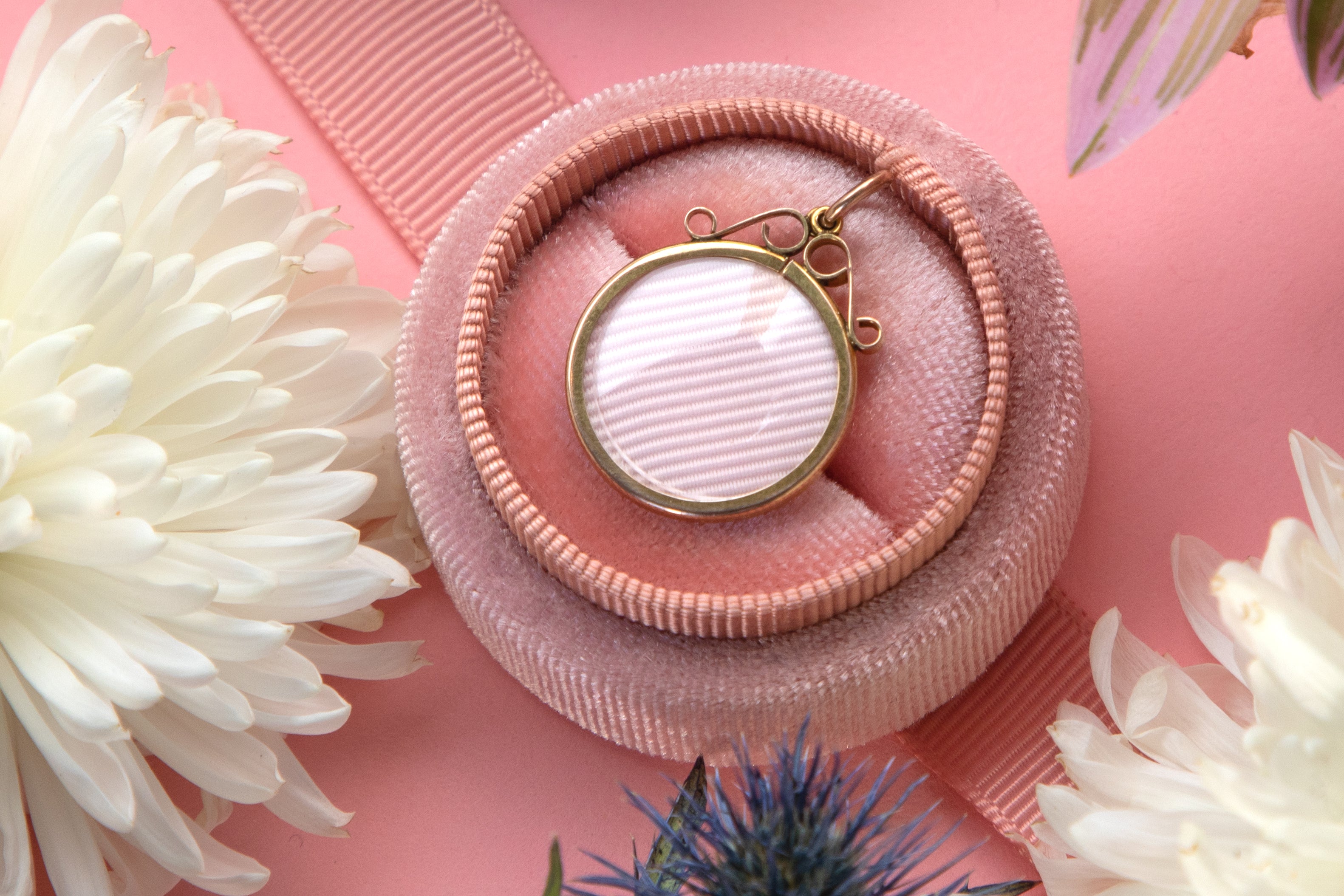 A super sweet antique 9ct Gold picture locket for your collection! Classically Edwardian, this 9ct Gold round locket boasts a charming scrolled bale.