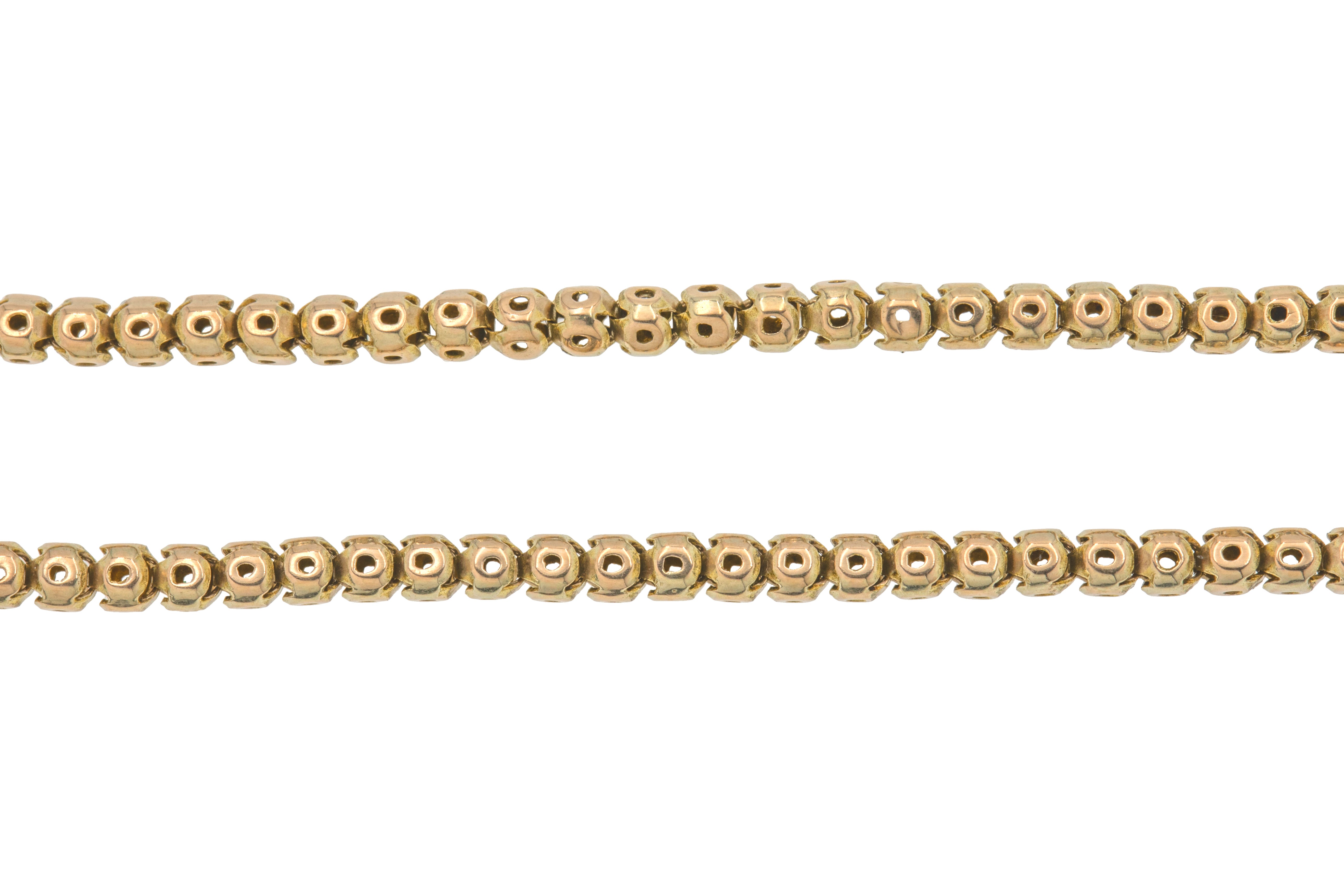 This antique 9ct Gold pierced chain, complete with charming ball and fetter details, is one you don't want to miss! Composed of honey-hued 9ct Gold, each rounded box link is pierced to perfection.