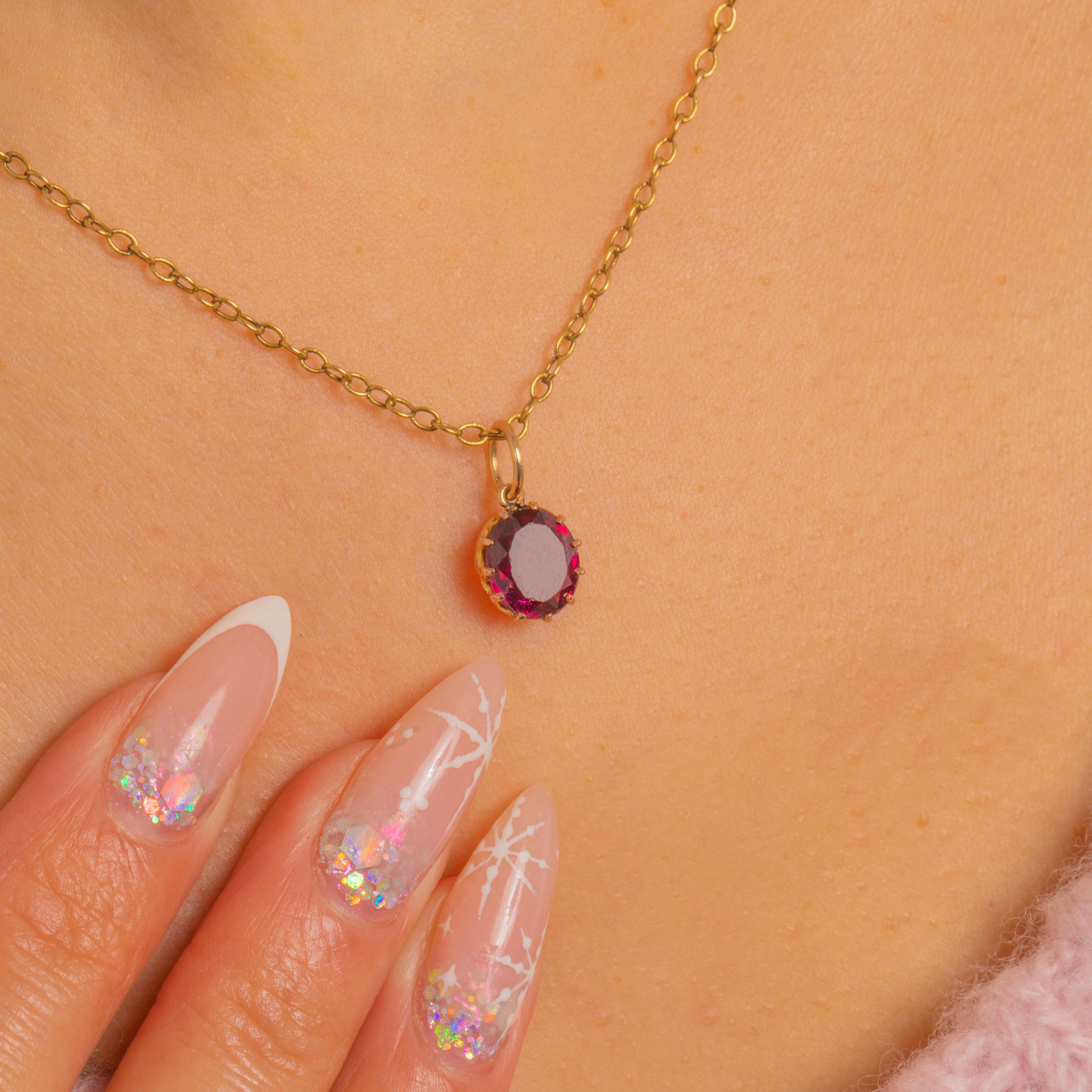 A dainty Victorian treasure, this petite charm showcases an oval faceted Rhodolite Garnet glowing with rich raspberry-pink to purple tones. The gemstone’s lively colour is beautifully complemented by warm 9ct Gold, with a neat, refined claw setting and a simple jump ring for effortless styling.